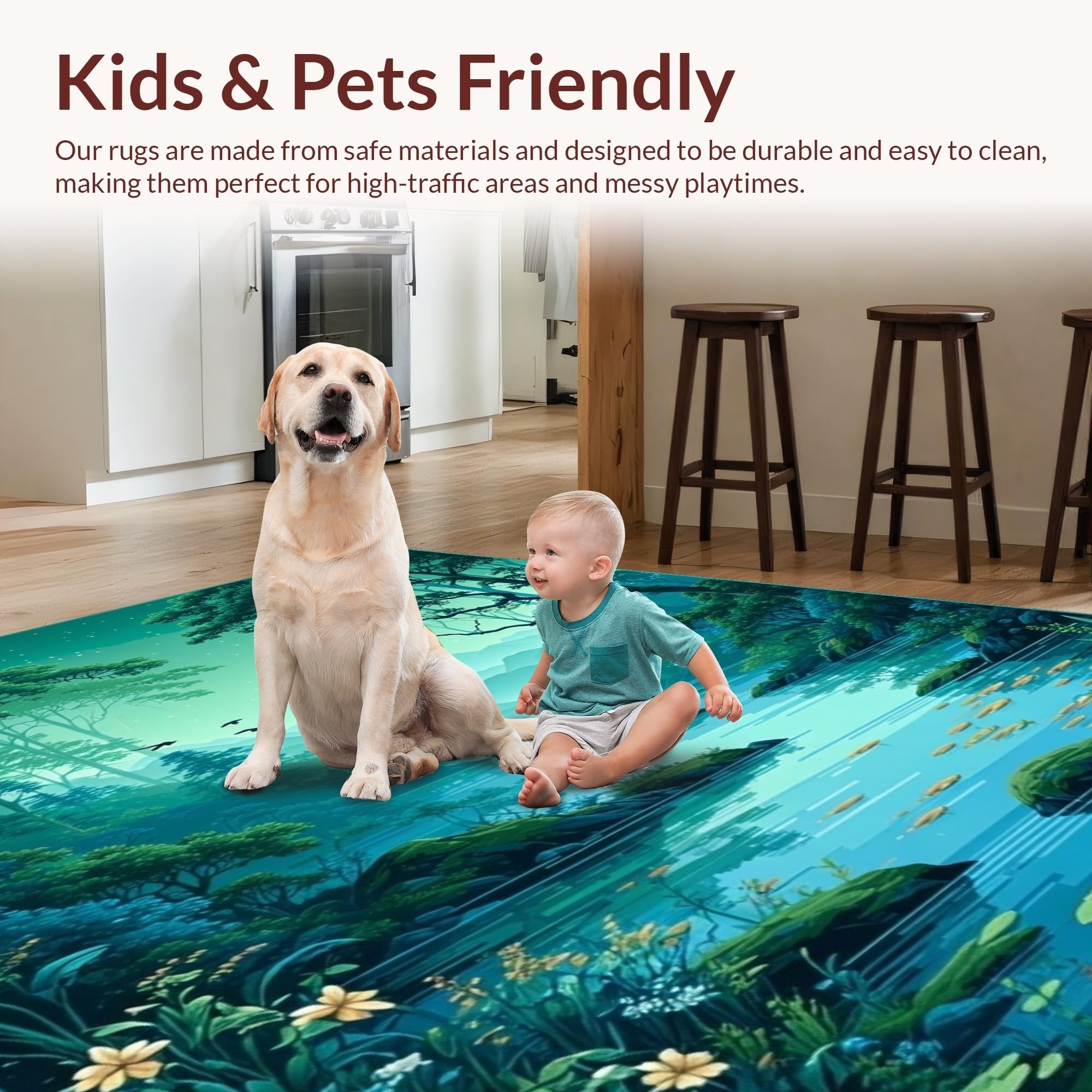 - Kid & Pet Friendly: Ideal for high-traffic indoor areas, this flooring is designed to withstand life's unpredictable messes caused by children or pets.