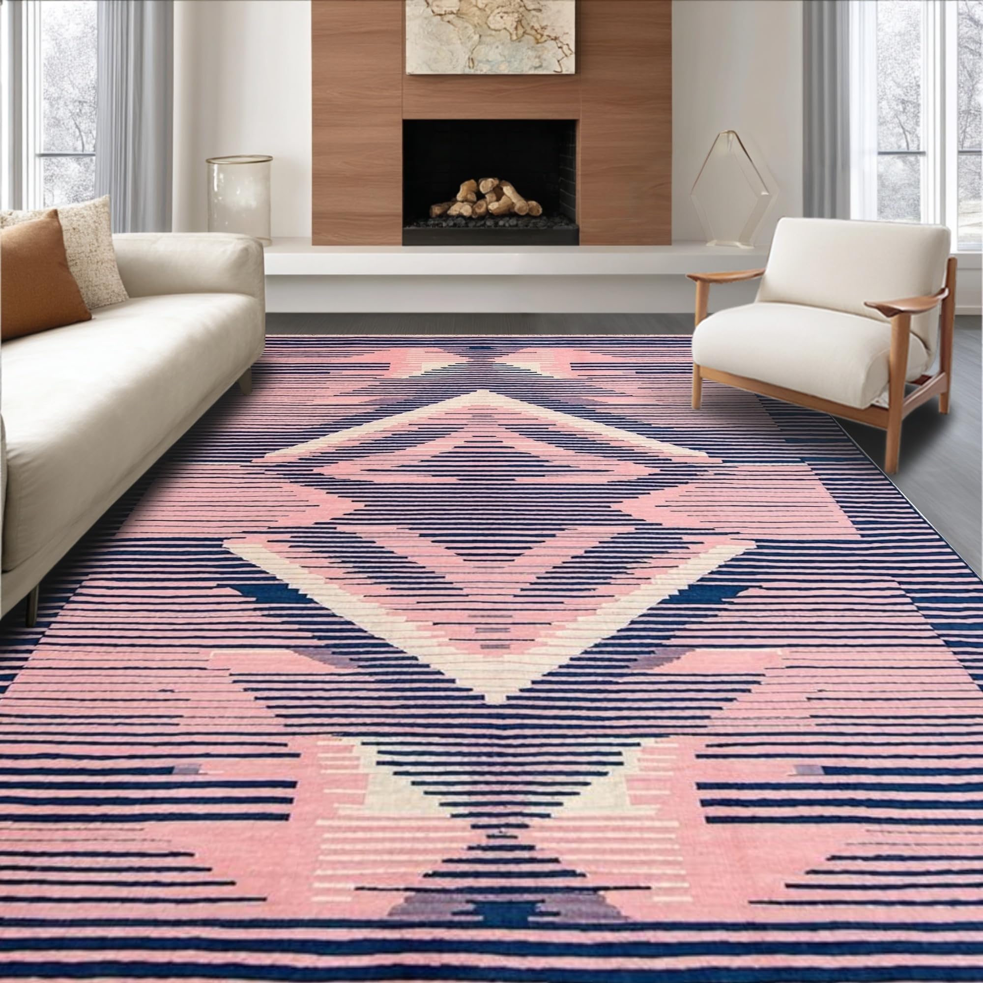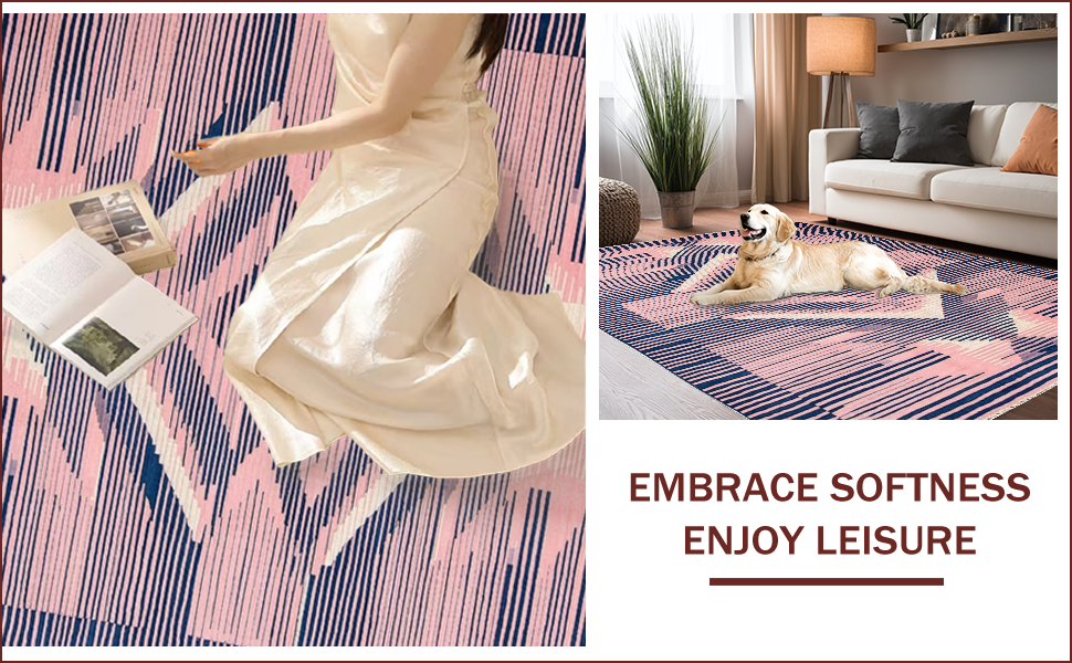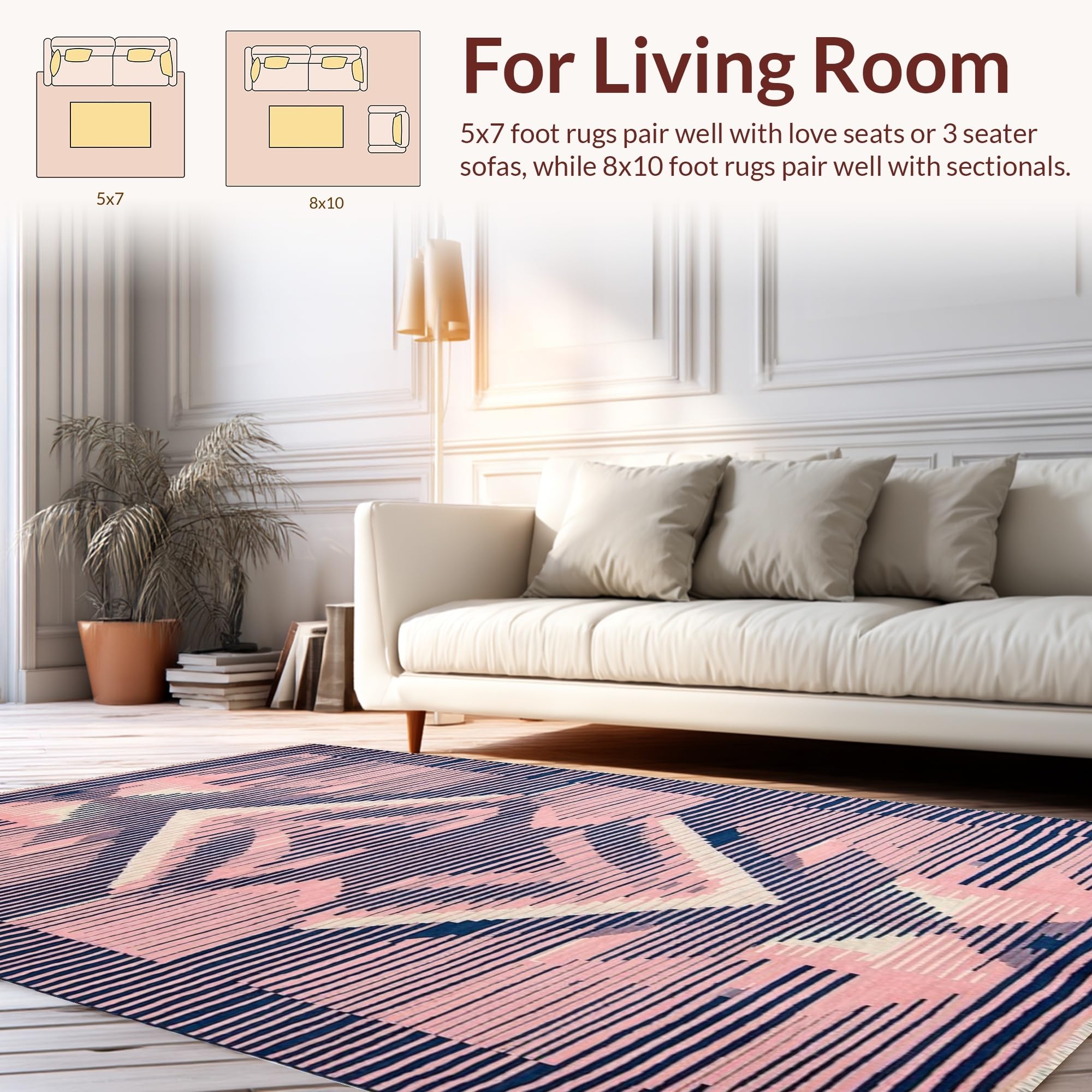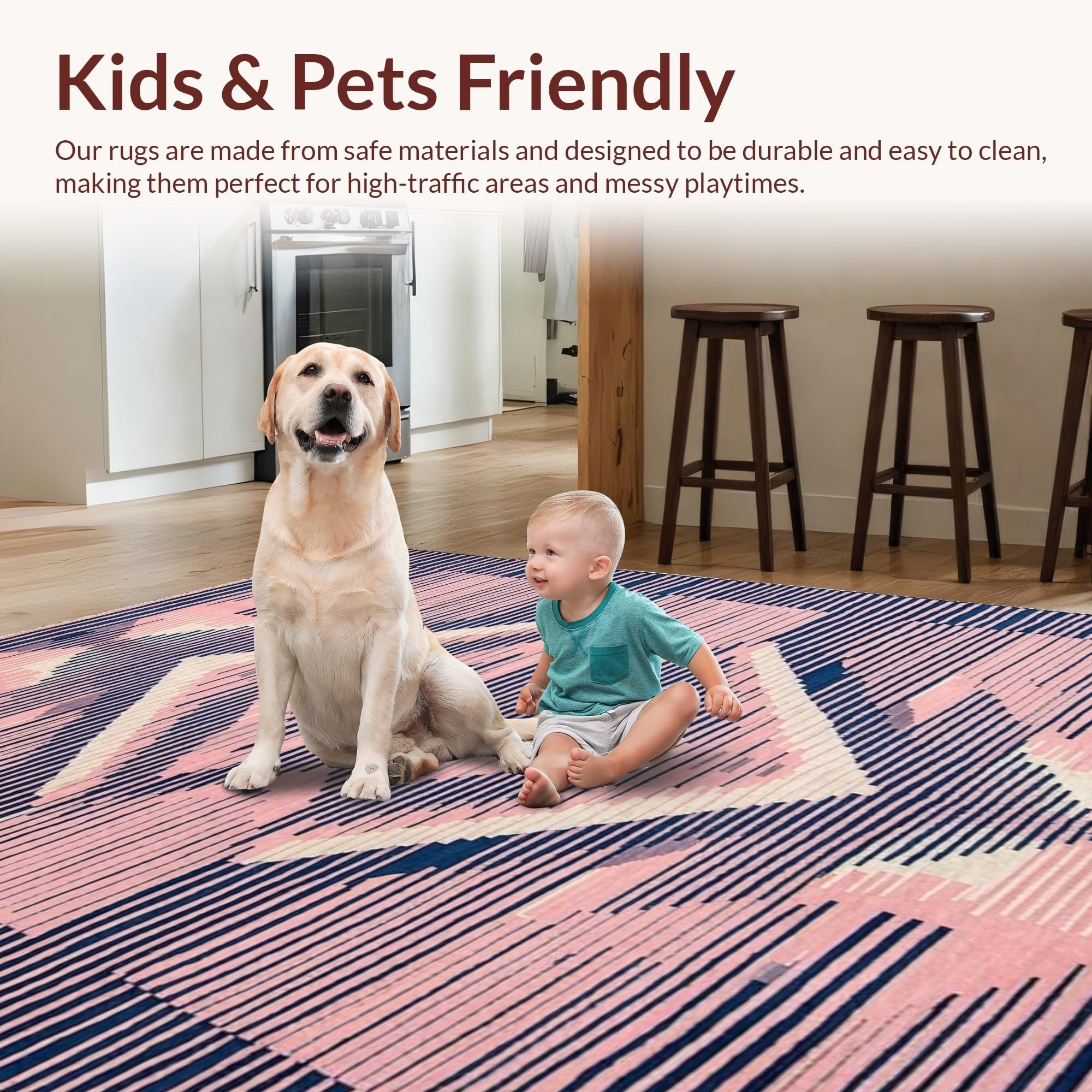 Ultra Soft Area Rug, Non Slip, Stain Resistant, Washable Area Rugs for Living Room, Bedroom, Contemporary Pastel Patterned Delight(Pink) Overview: