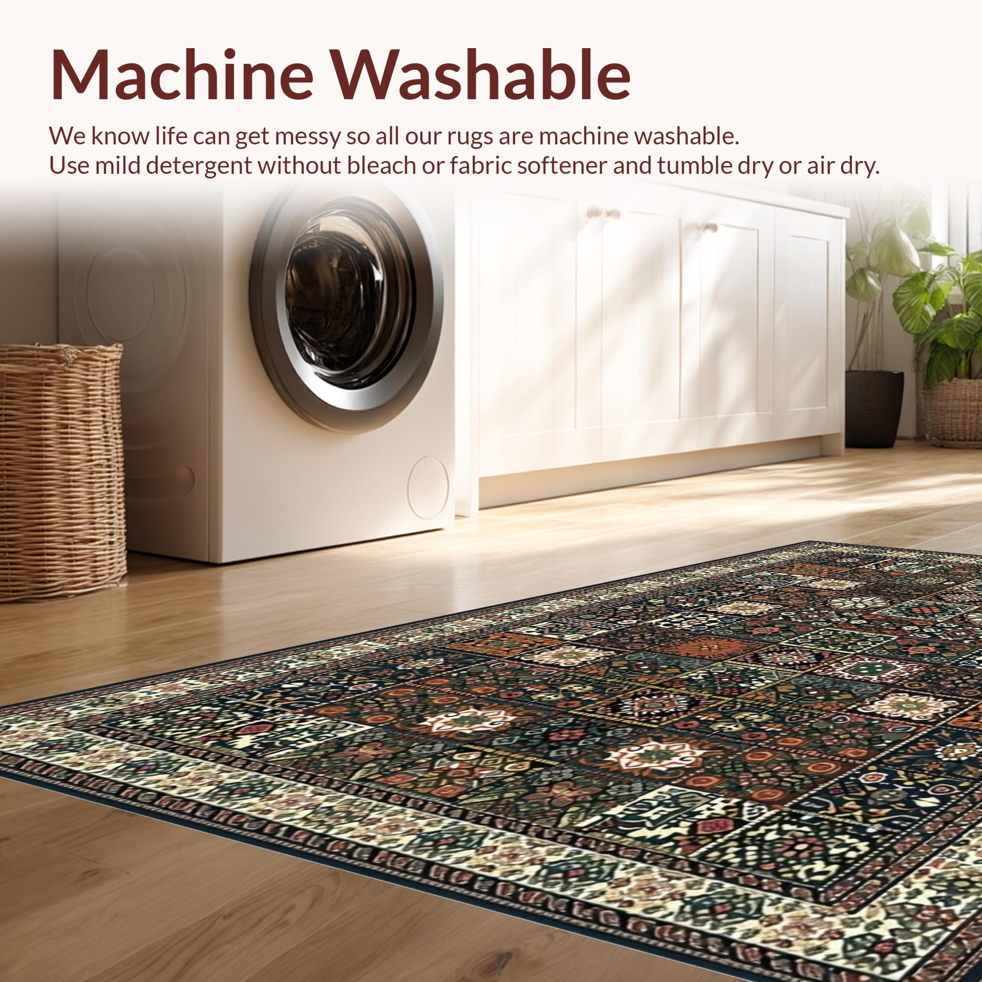 - Machine Washable: Our rugs can be easily thrown in the wash machine.