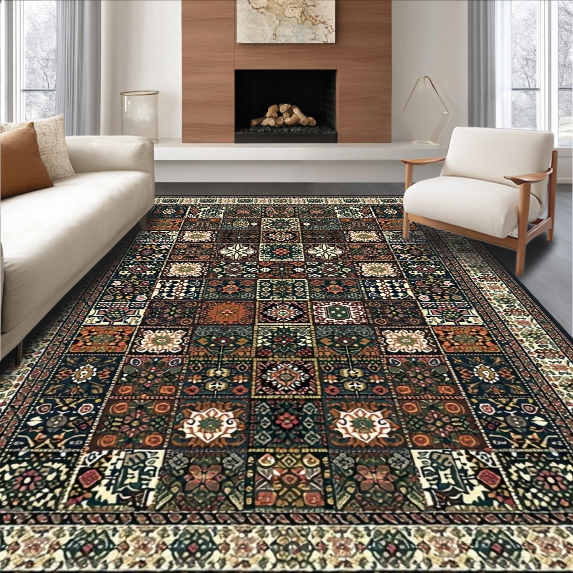 Ultra Soft Area Rug, Non Slip, Stain Resistant, Washable Area Rugs for Living Room, Bedroom, Contemporary Patchwork Color Splash(Black) Overview:
