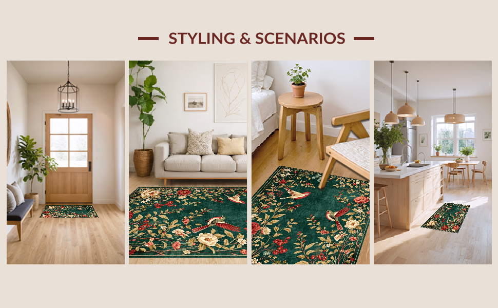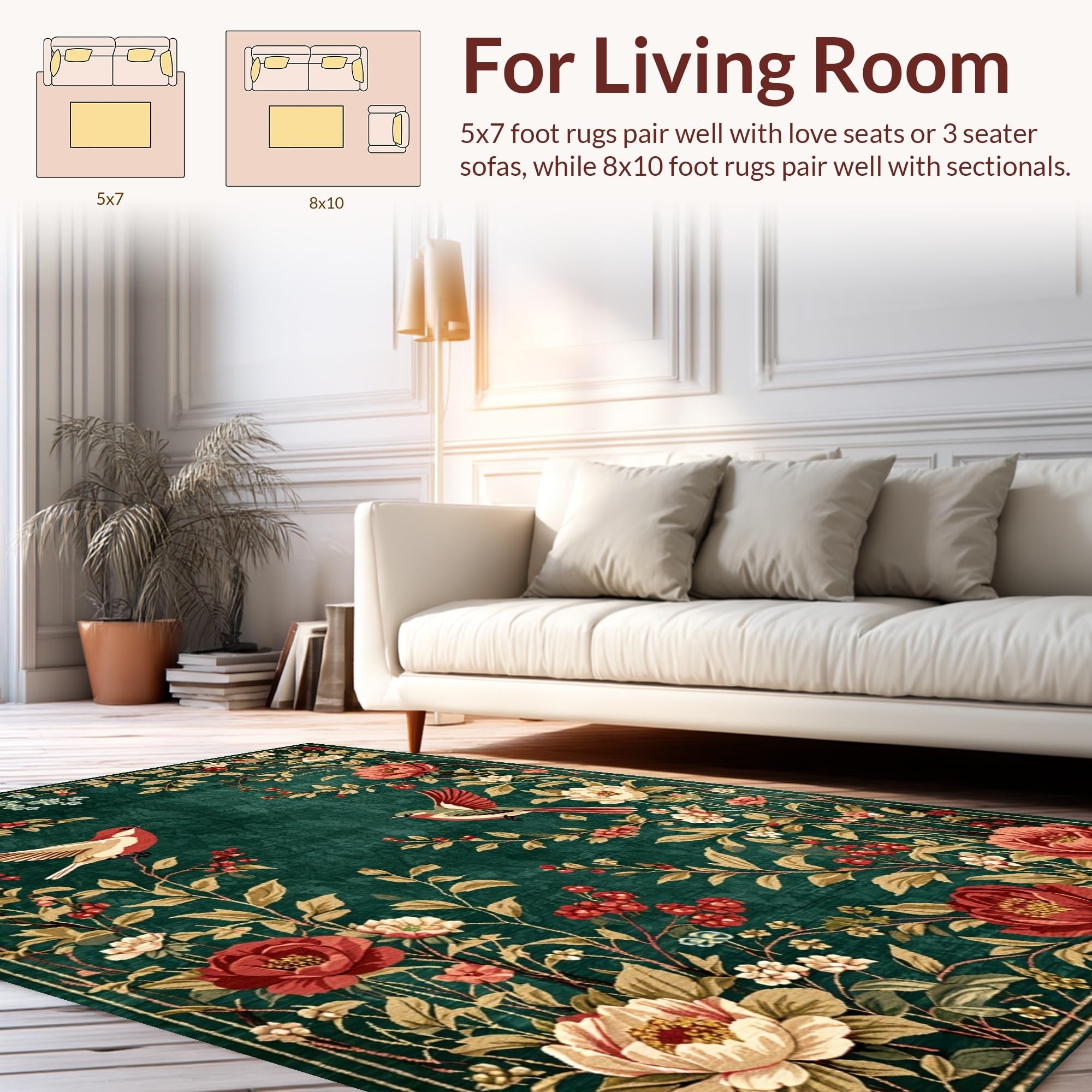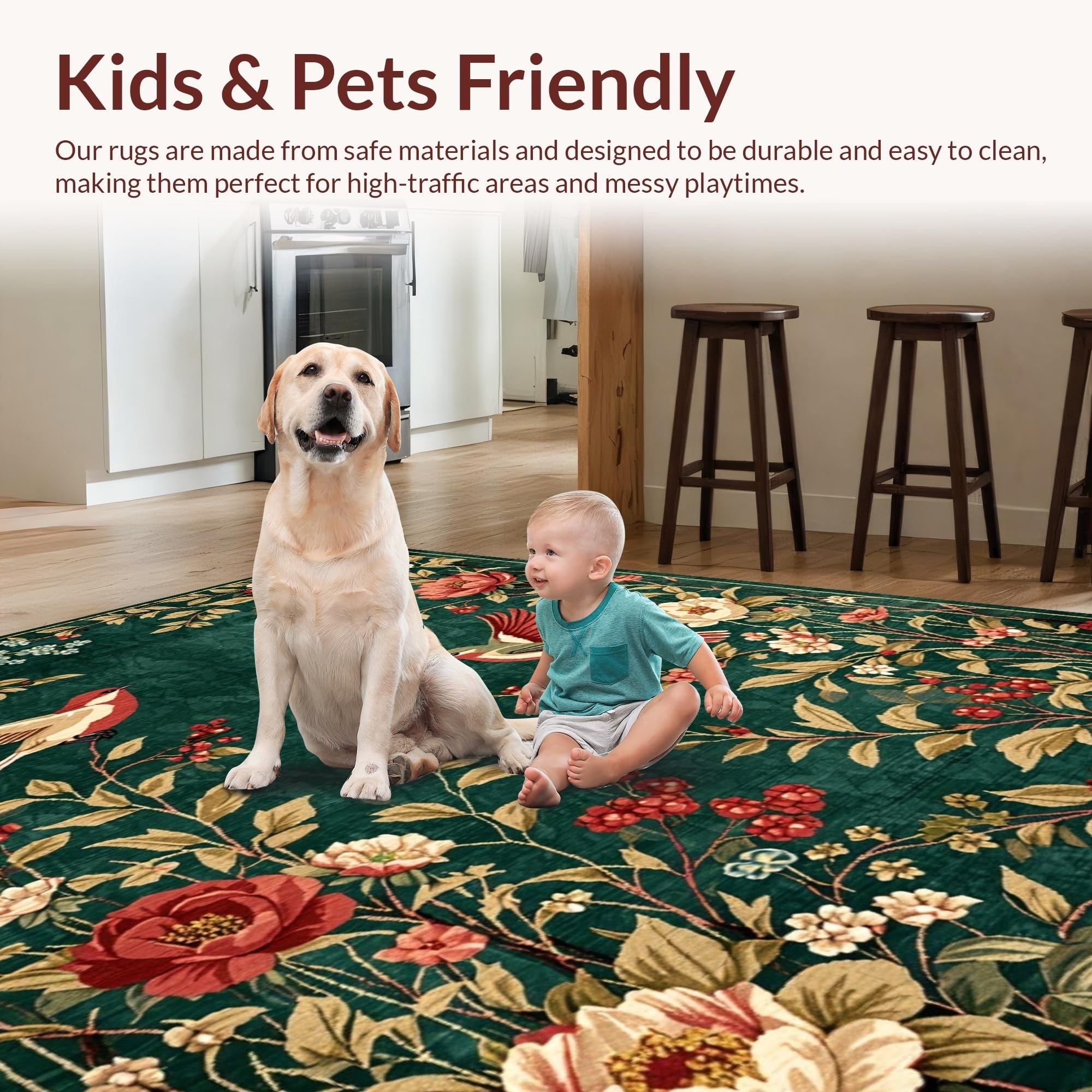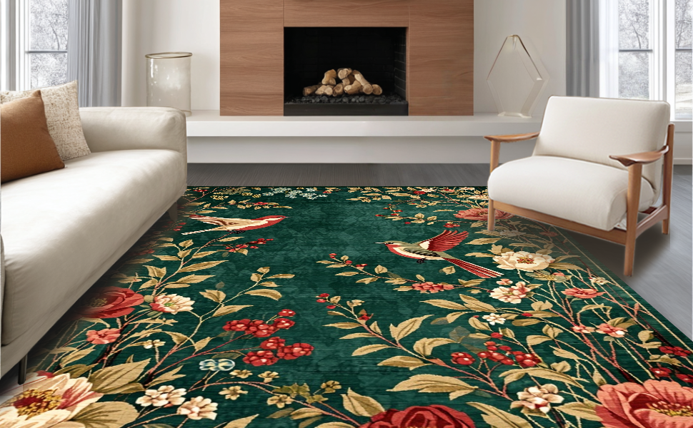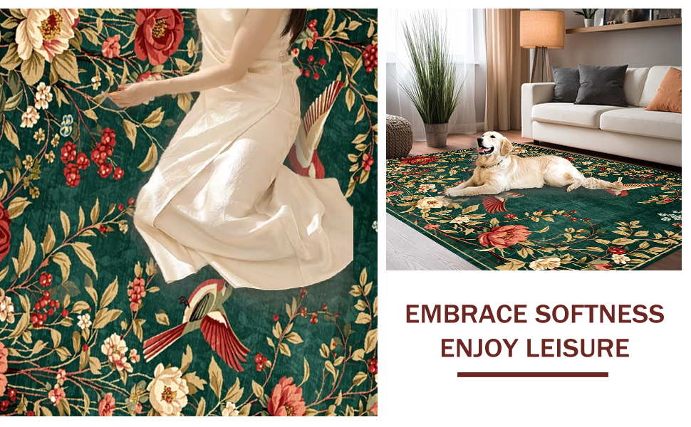 Ultra Soft Area Rug, Non Slip, Stain Resistant, Washable Area Rugs for Living Room, Bedroom, Contemporary Radiant Leaf Patterns(Green) Overview: