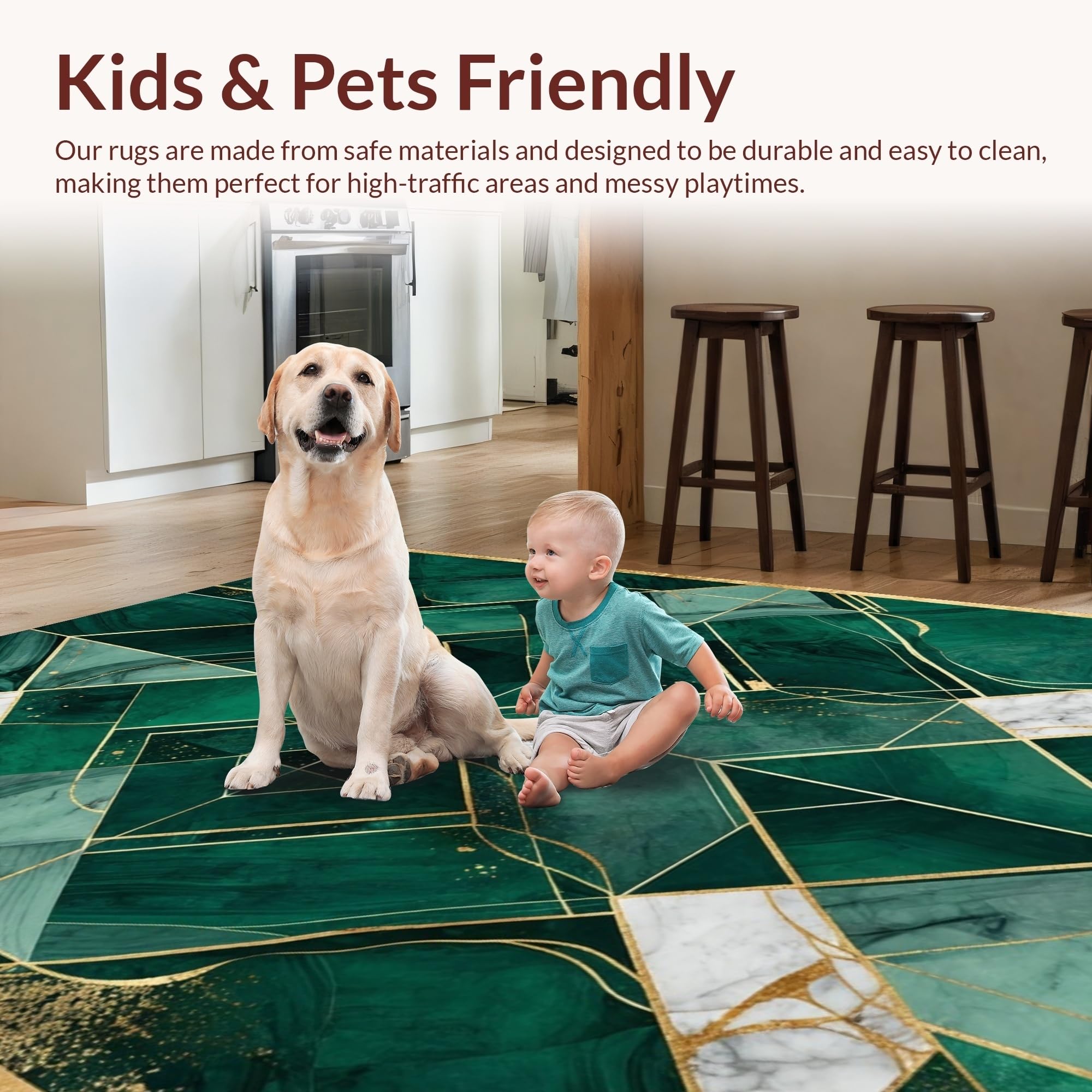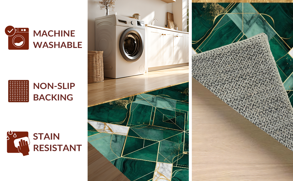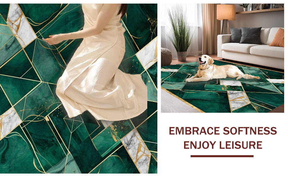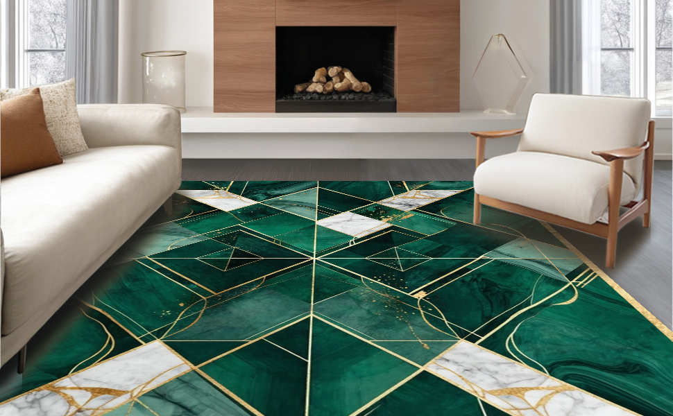 Ultra Soft Area Rug, Non Slip, Stain Resistant, Washable Area Rugs for Living Room, Bedroom, Contemporary Rich Color Mosaic(Green) Overview: