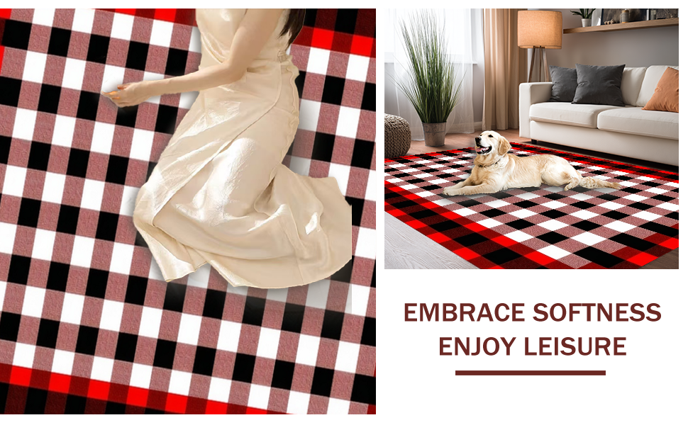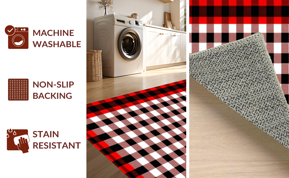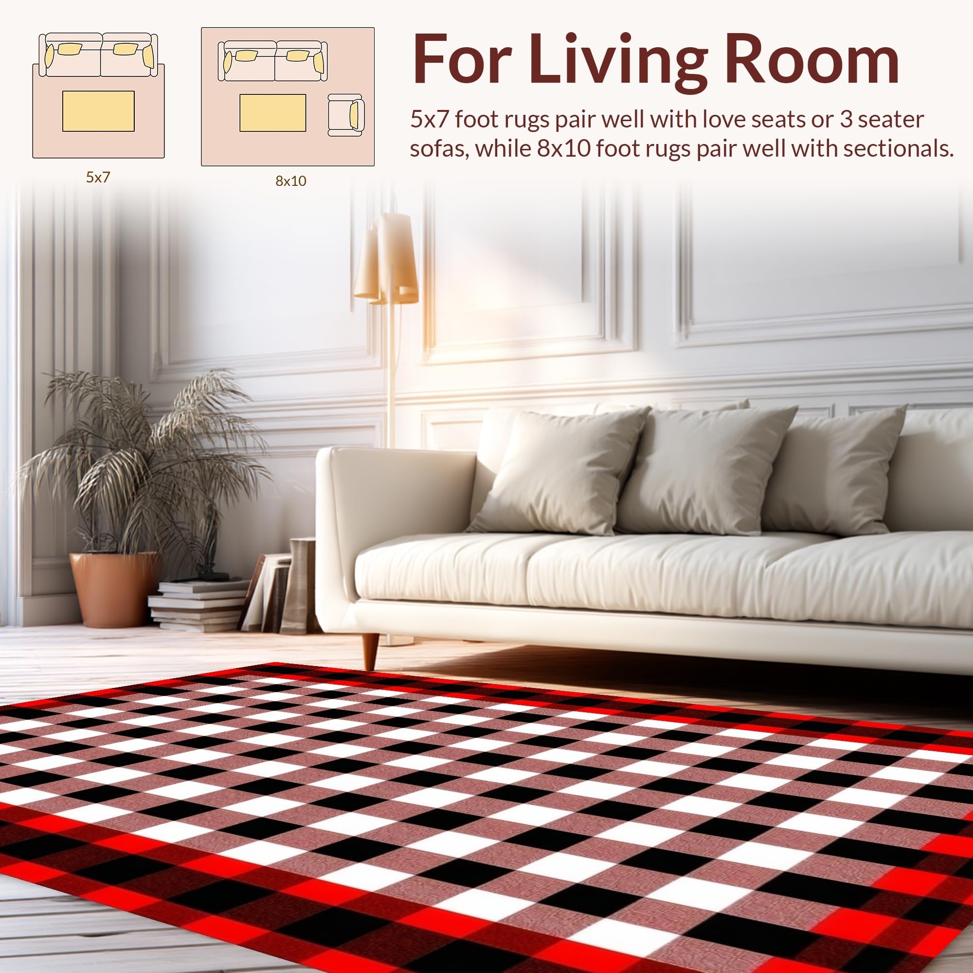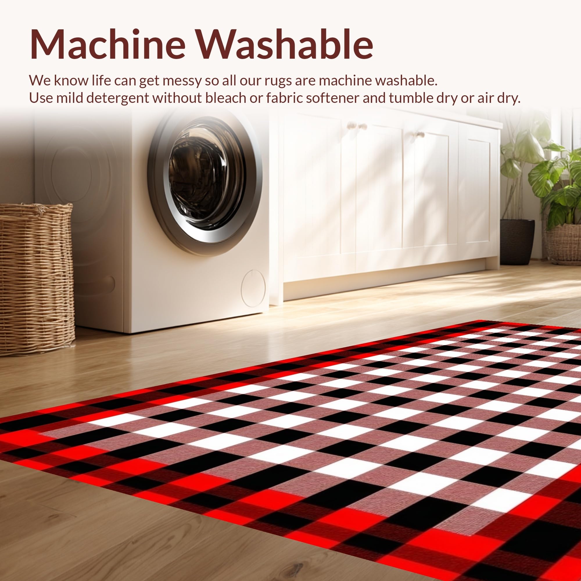 Ultra Soft Area Rug, Non Slip, Stain Resistant, Washable Area Rugs for Living Room, Bedroom, Contemporary Rustic Seasonal Checkered Look(Black) Overview:
