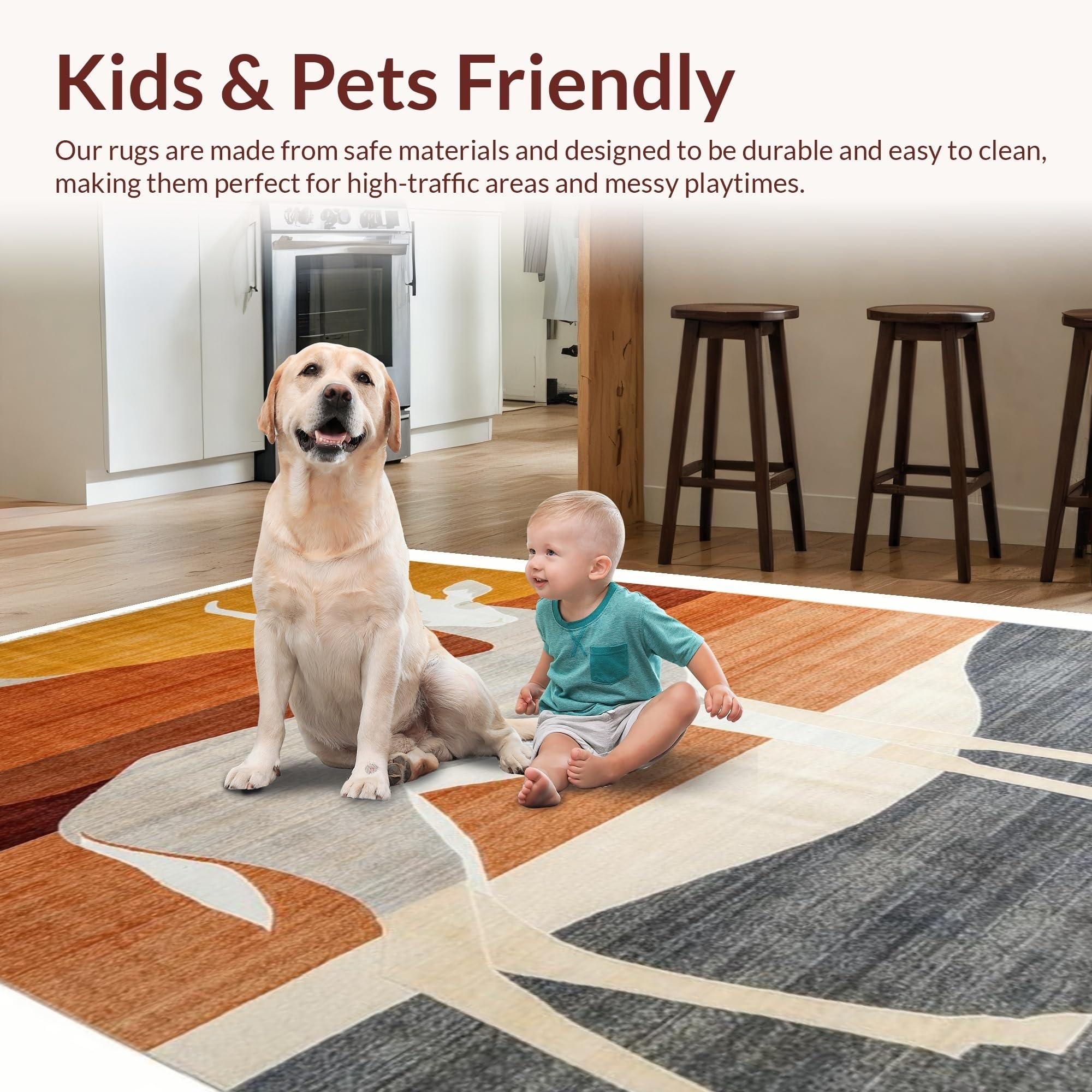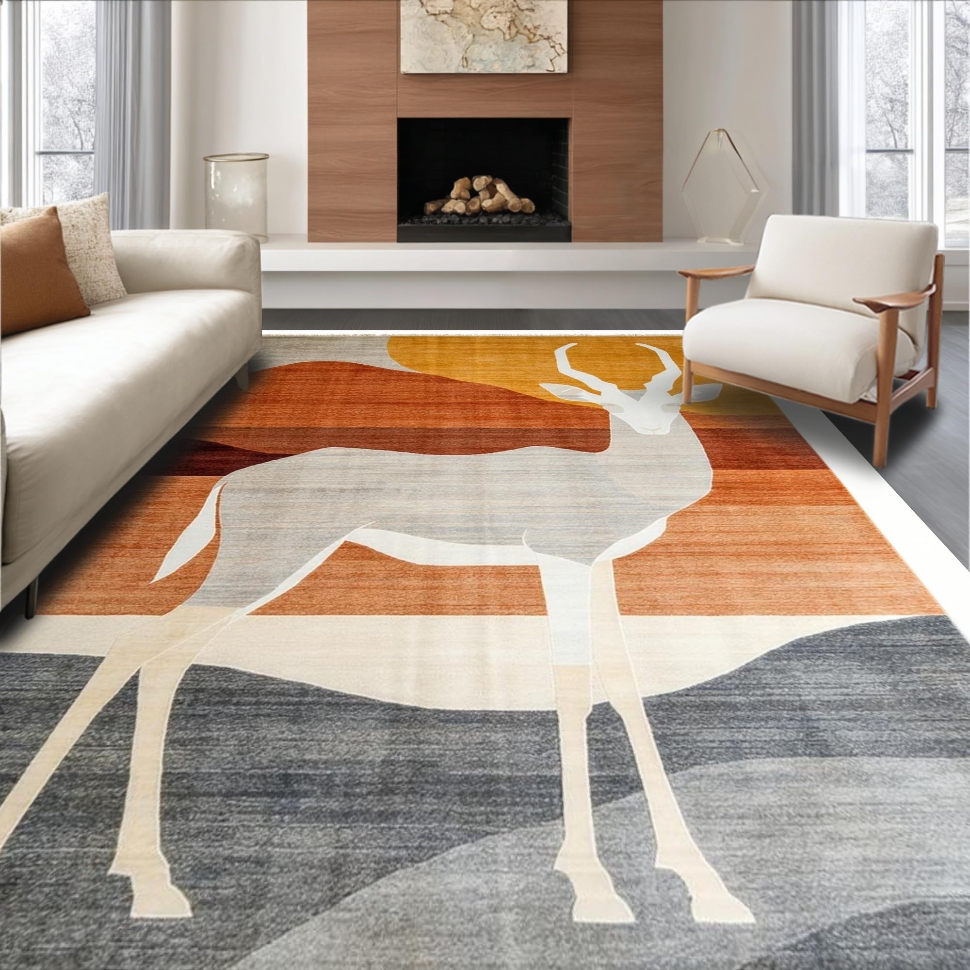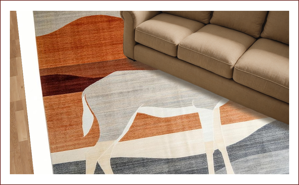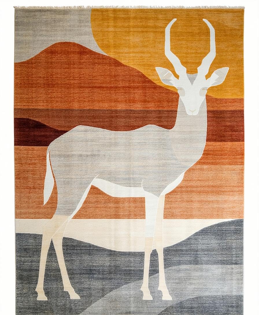 Ultra Soft Area Rug, Non Slip, Stain Resistant, Washable Area Rugs for Living Room, Bedroom, Contemporary Safari Animal Motif(Beige) Overview: