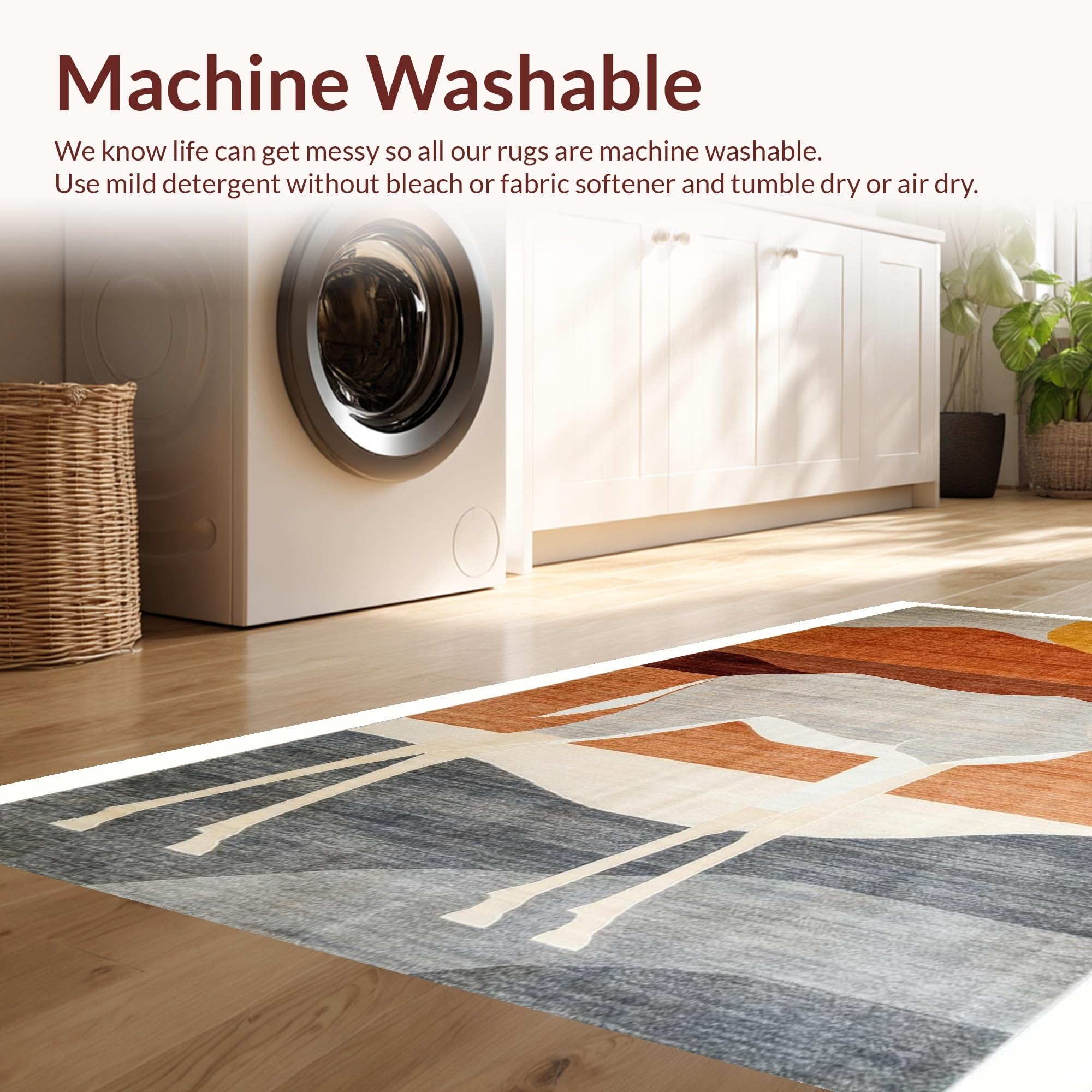 - Machine Washable: Our rugs can be easily thrown in the wash machine.
