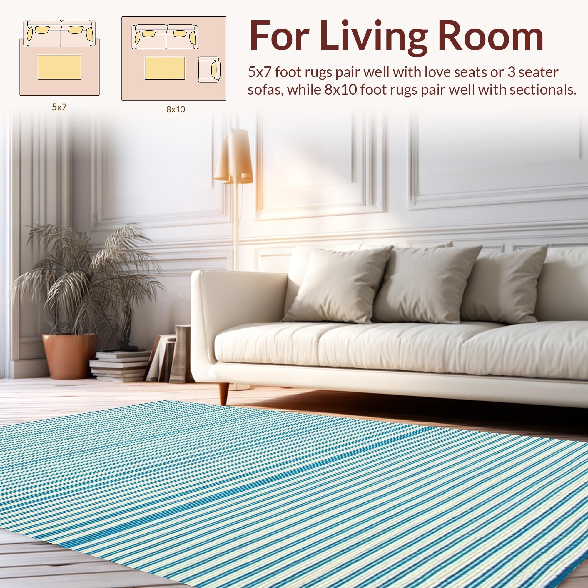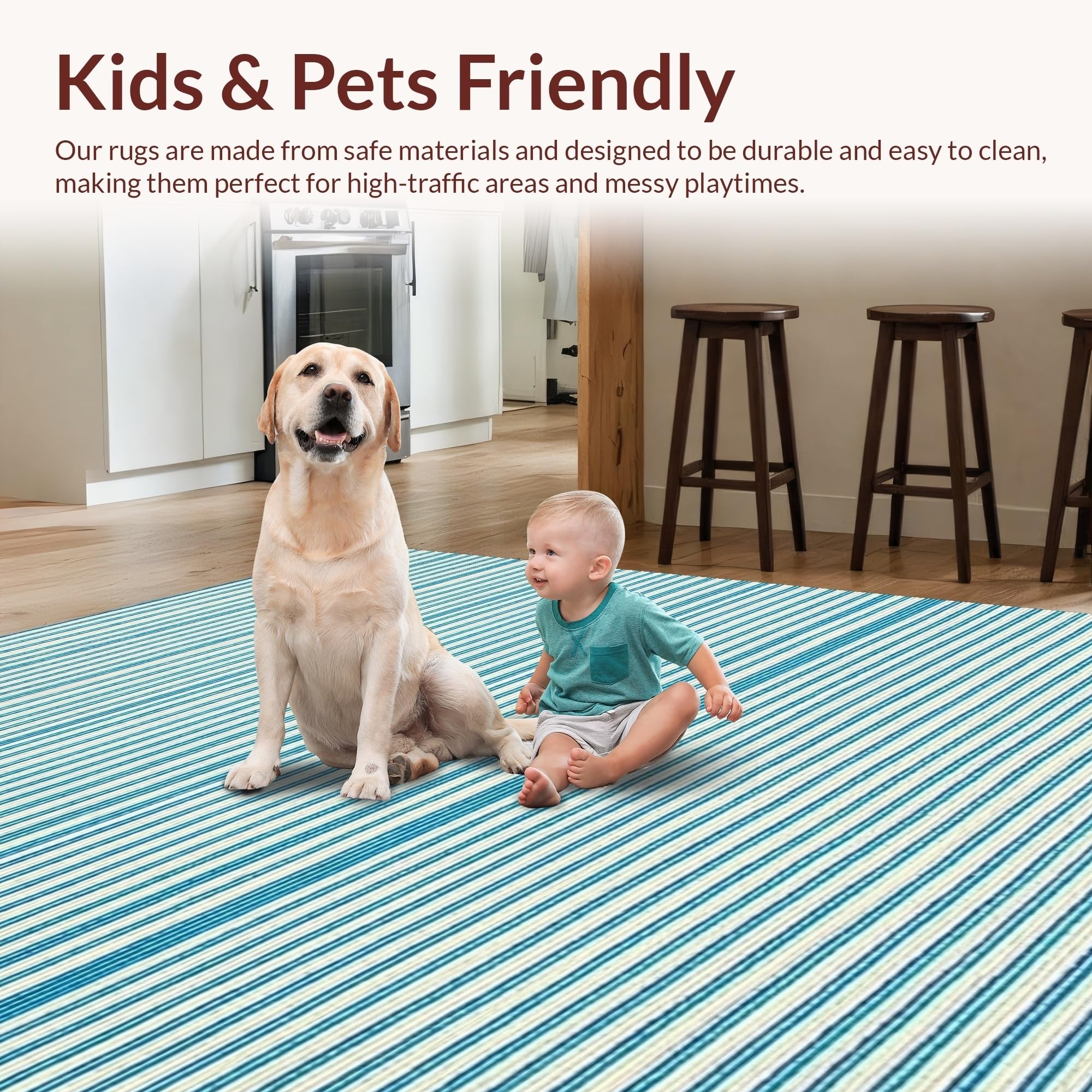 Ultra Soft Area Rug, Non Slip, Stain Resistant, Washable Area Rugs for Living Room, Bedroom, Contemporary Serene Stripe Play(White) Overview: