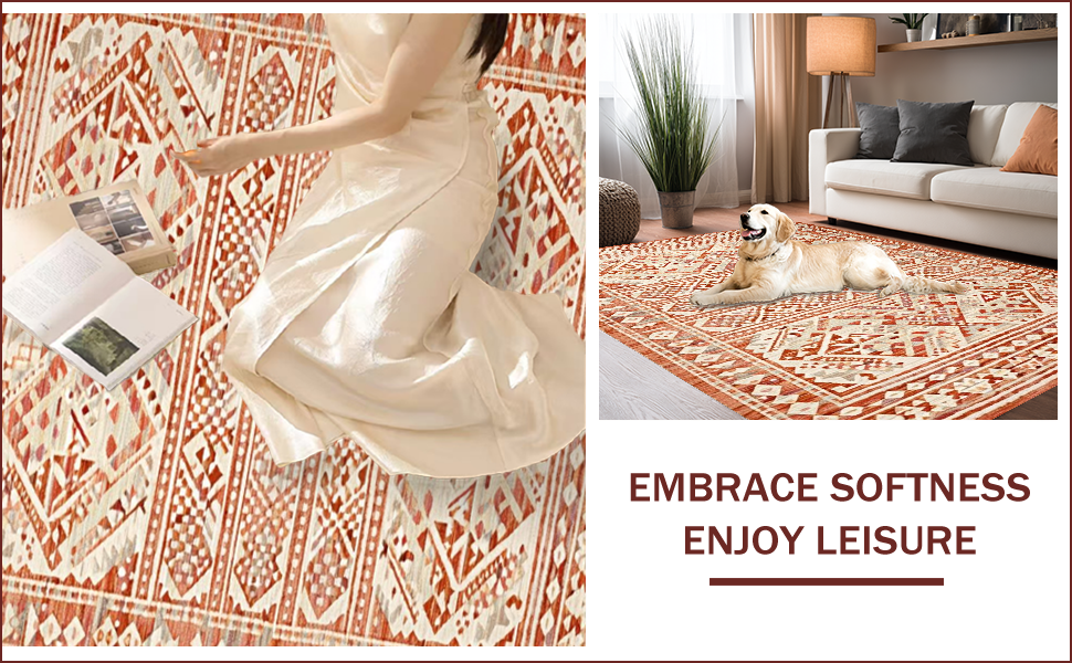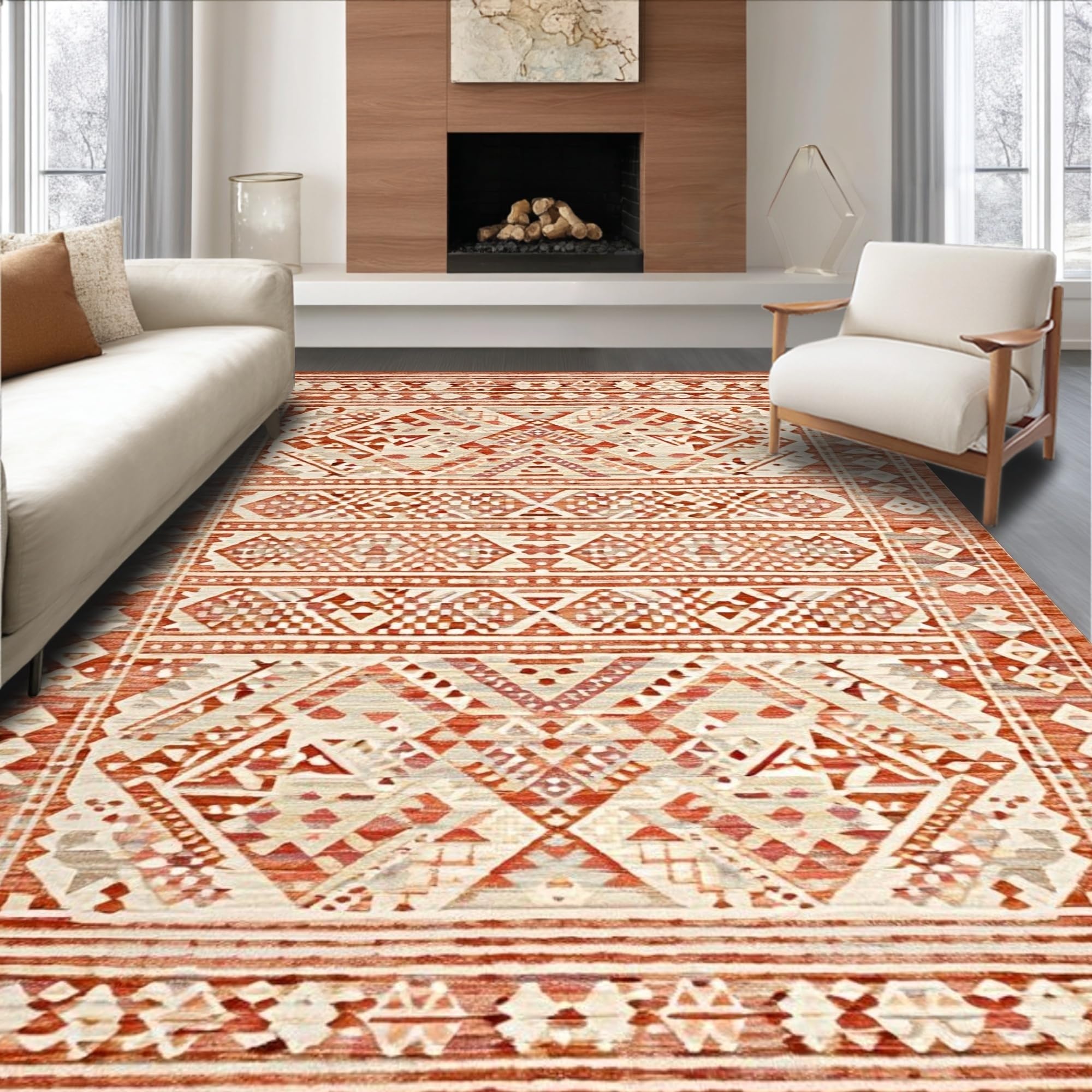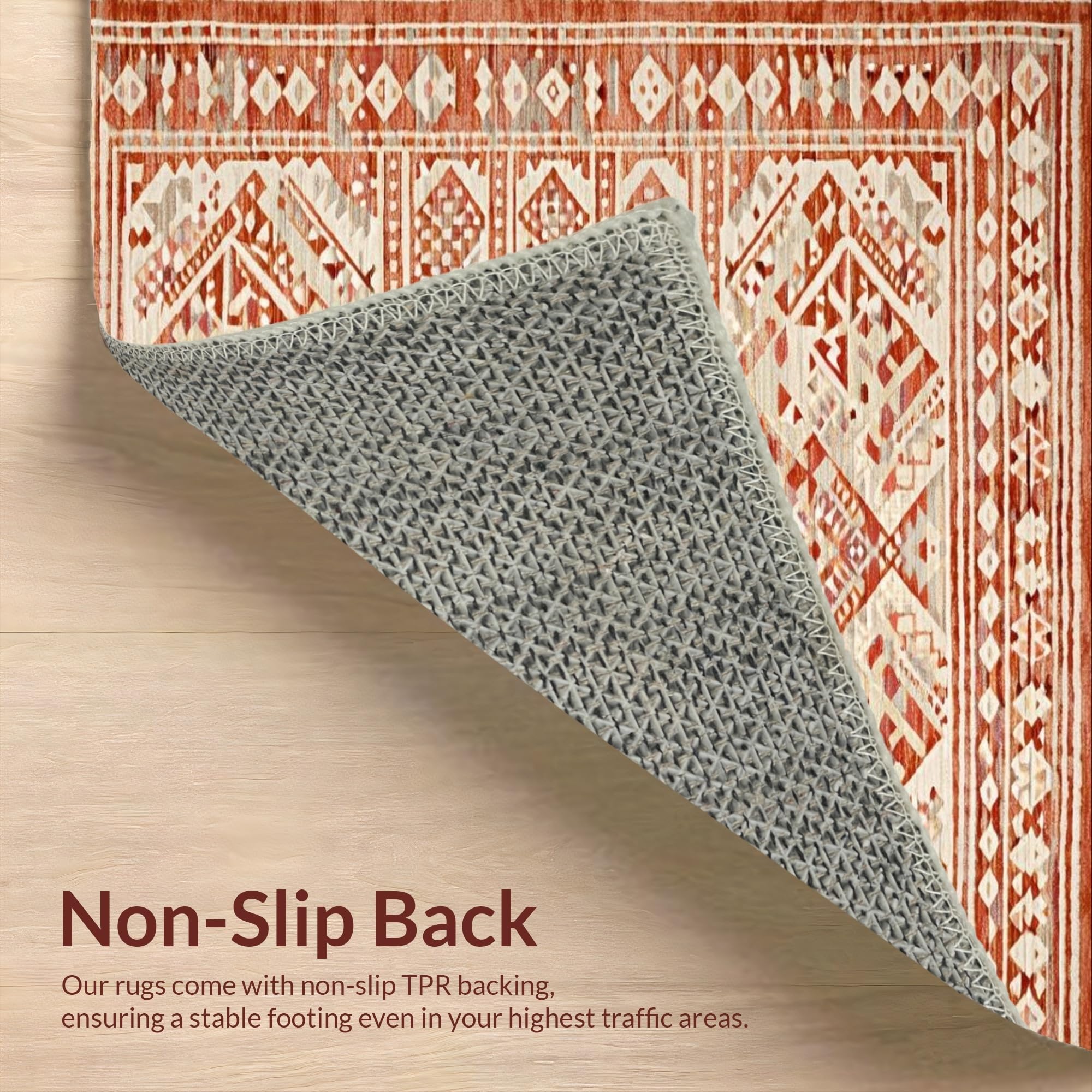 Ultra Soft Area Rug, Non Slip, Stain Resistant, Washable Area Rugs for Living Room, Bedroom, Contemporary Shaggy Geometric Motif(Red) Overview: