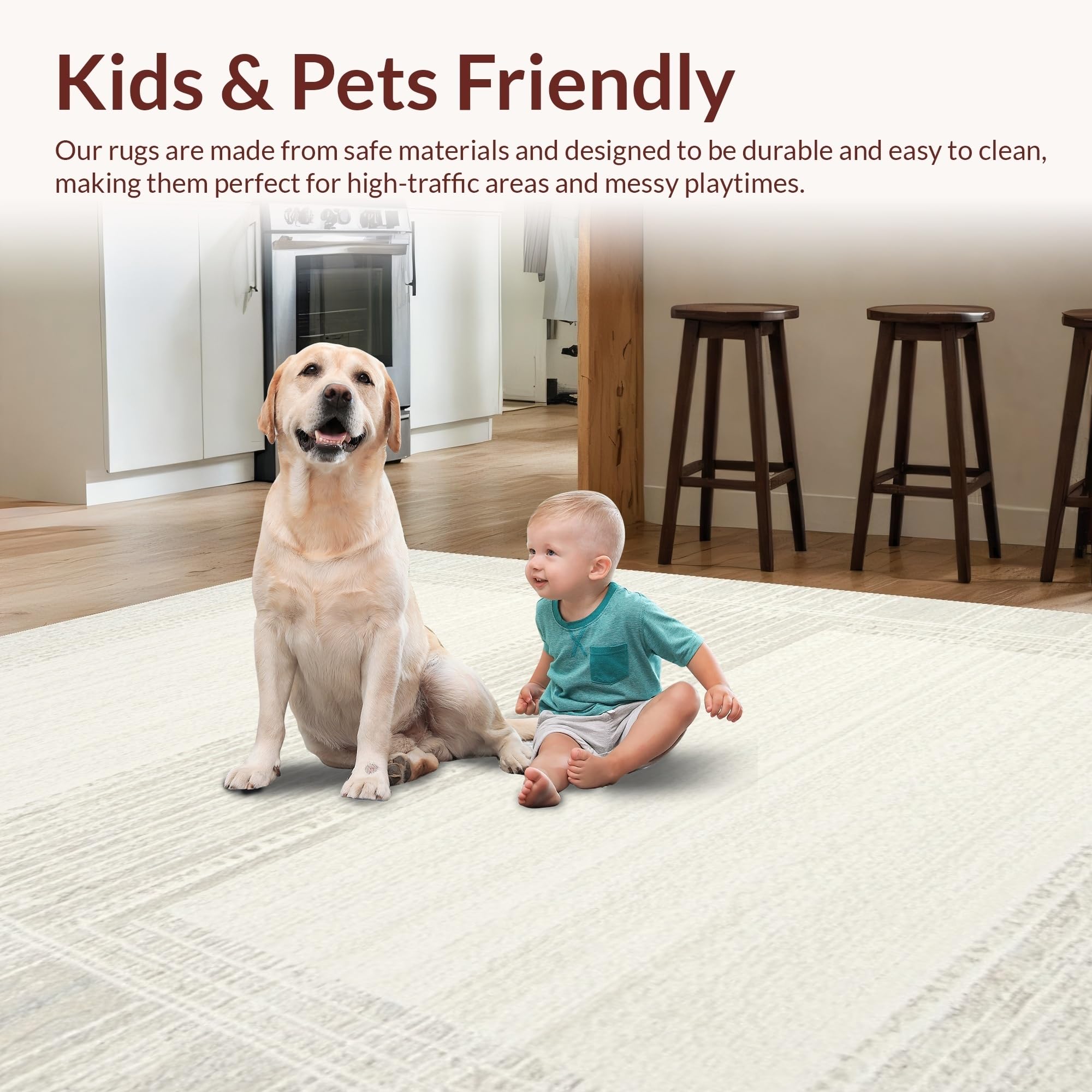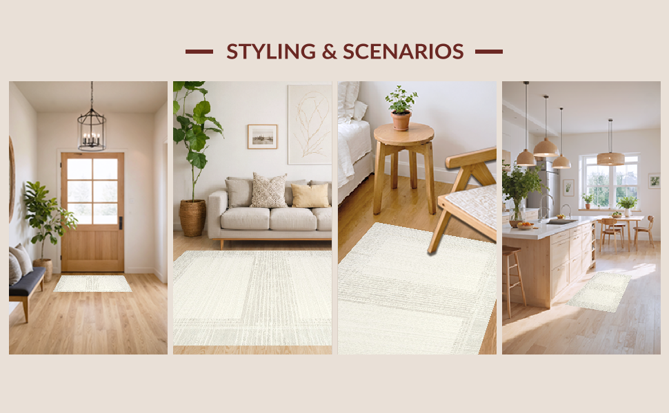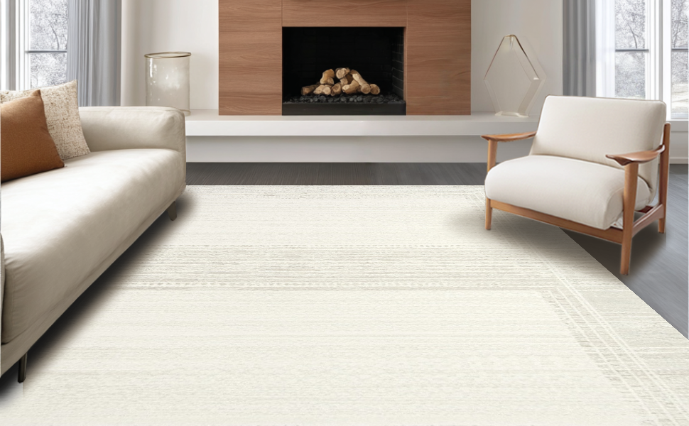 Ultra Soft Area Rug, Non Slip, Stain Resistant, Washable Area Rugs for Living Room, Bedroom, Contemporary Smooth Geometric Lines(Beige) Overview:
