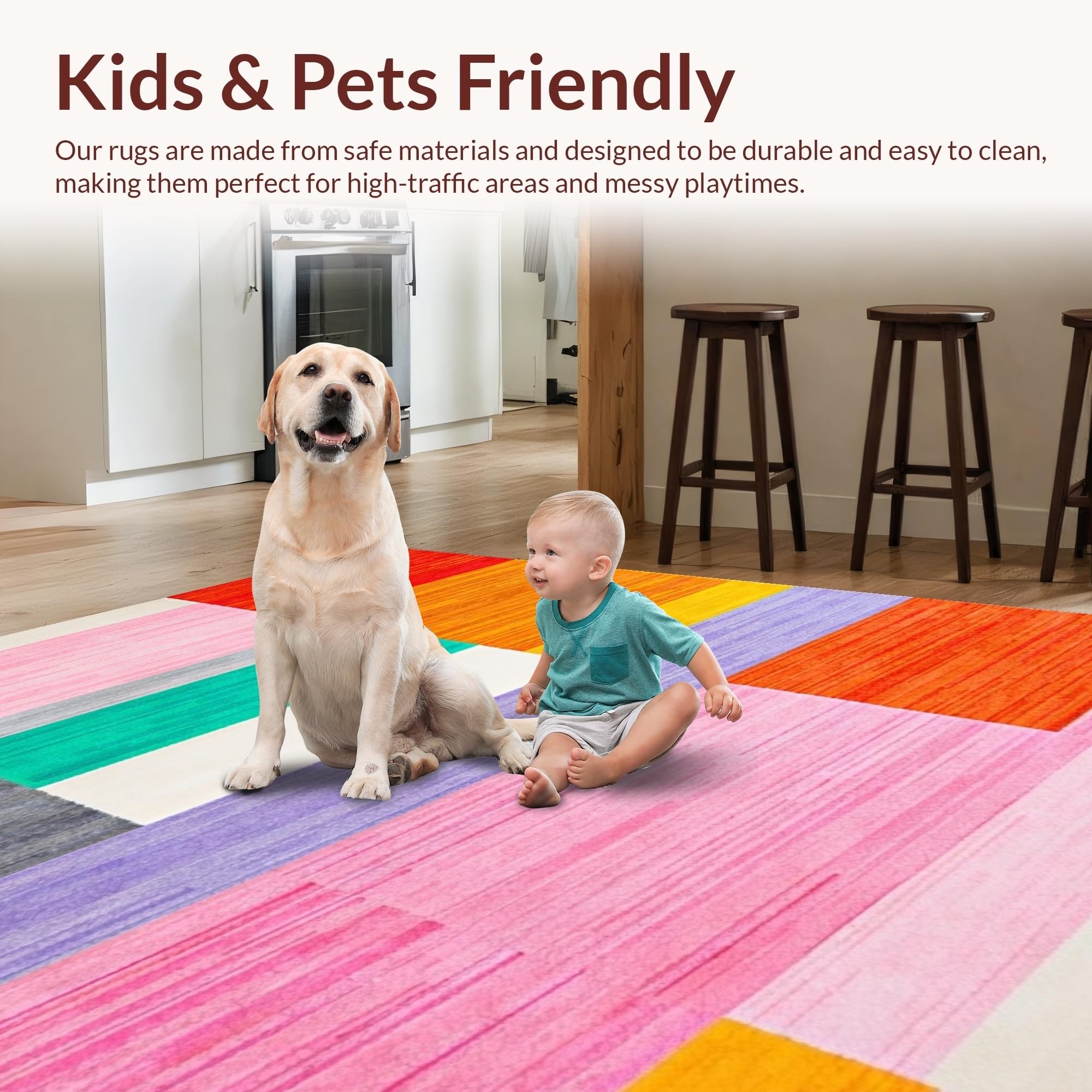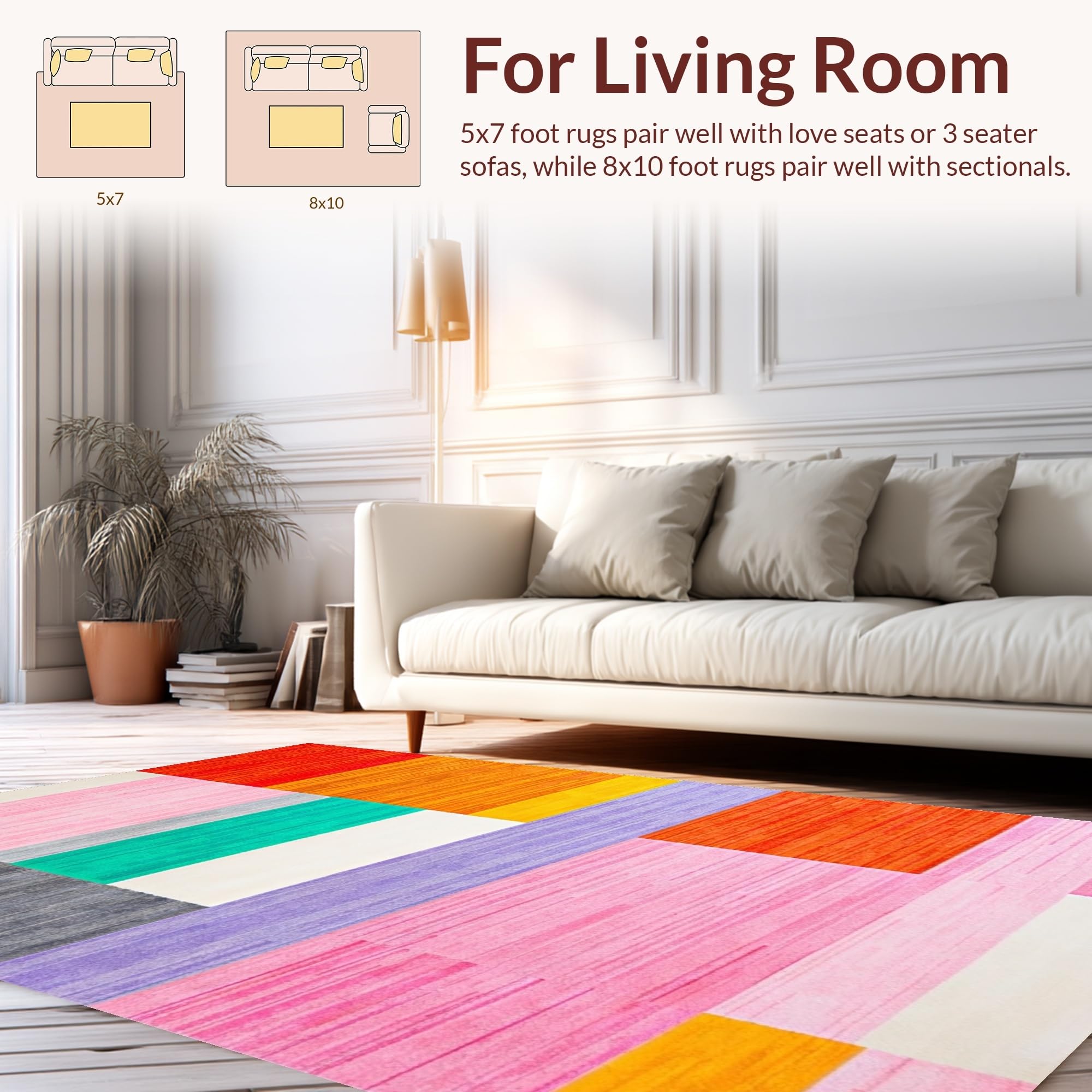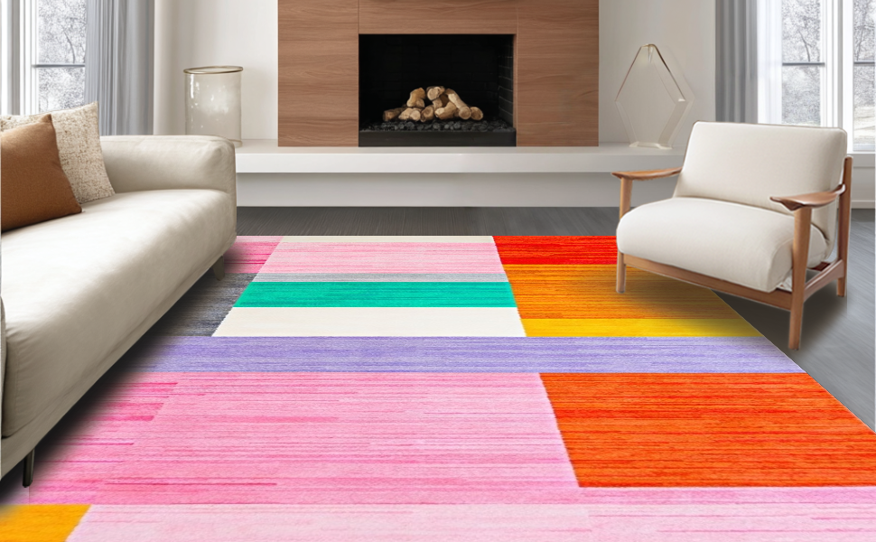 Ultra Soft Area Rug, Non Slip, Stain Resistant, Washable Area Rugs for Living Room, Bedroom, Contemporary Soft Abstract Patterns(Pink) Overview: