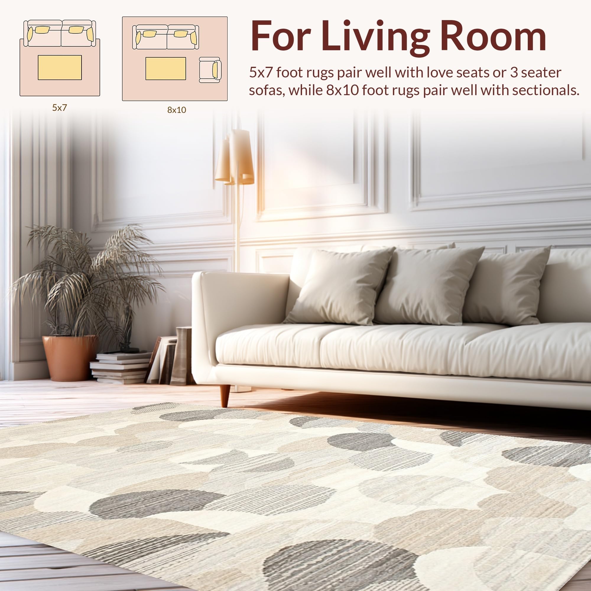 Ultra Soft Area Rug, Non Slip, Stain Resistant, Washable Area Rugs for Living Room, Bedroom, Contemporary Soft Beige Design(Beige) Overview: