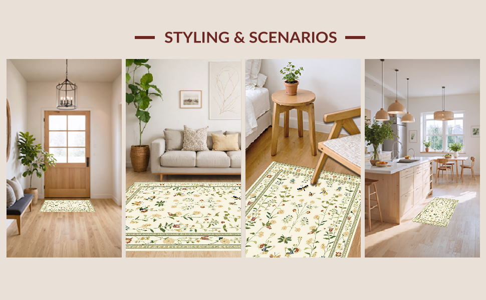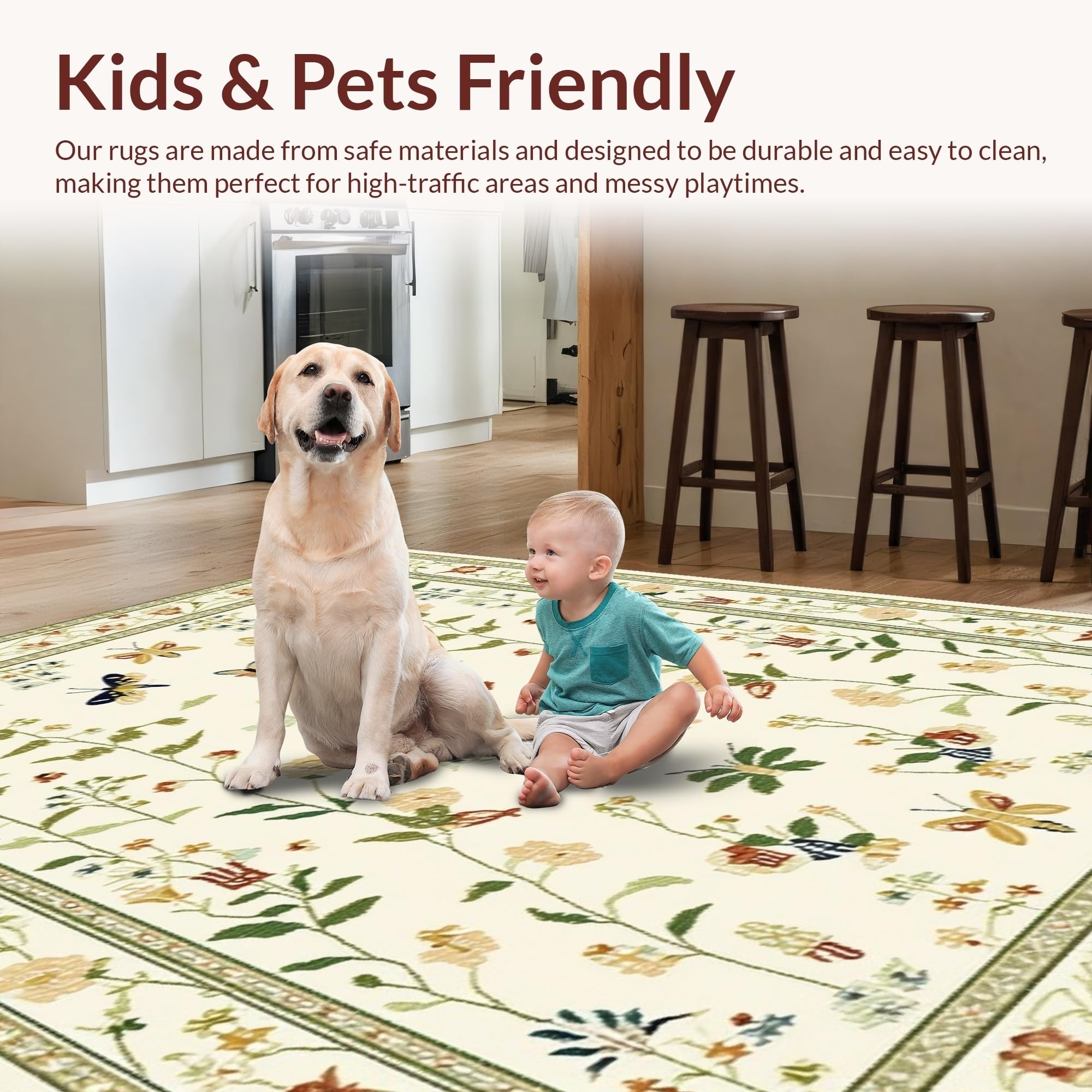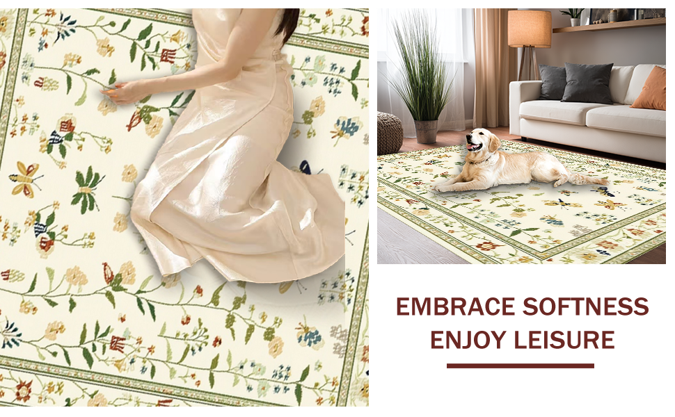 Ultra Soft Area Rug, Non Slip, Stain Resistant, Washable Area Rugs for Living Room, Bedroom, Contemporary Soft Beige Floral Design(Beige) Overview: