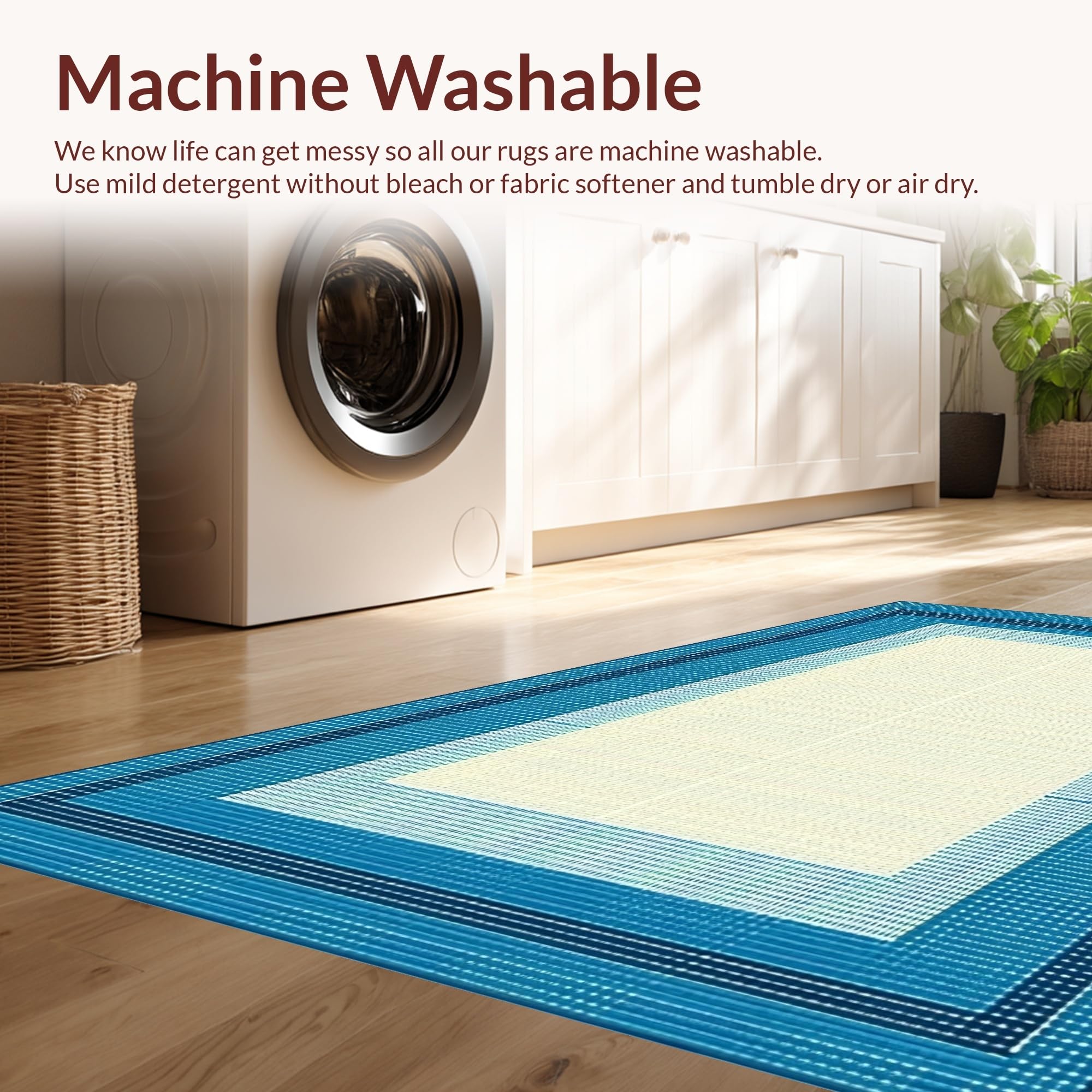 - Machine Washable: Our rugs can be easily thrown in the wash machine.