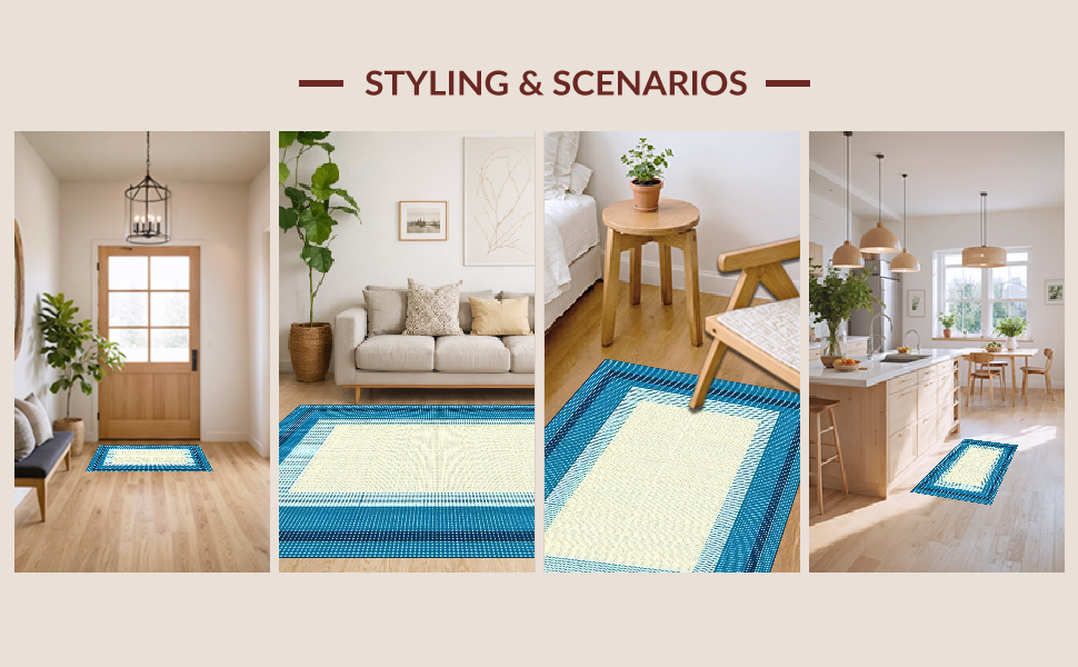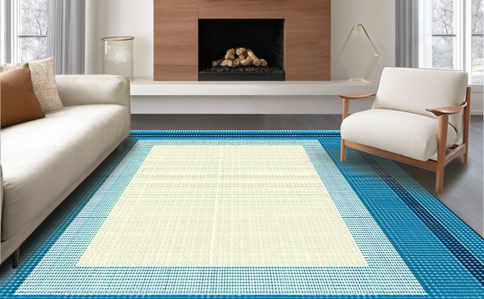 Ultra Soft Area Rug, Non Slip, Stain Resistant, Washable Area Rugs for Living Room, Bedroom, Contemporary Soft Blue Aesthetic(Beige) Overview:
