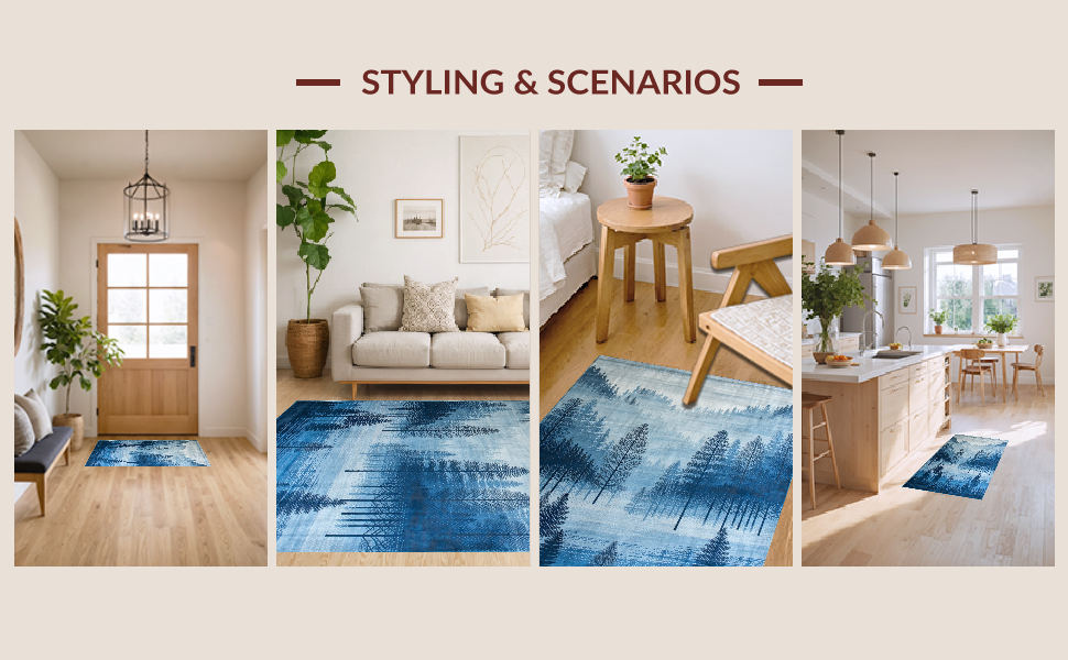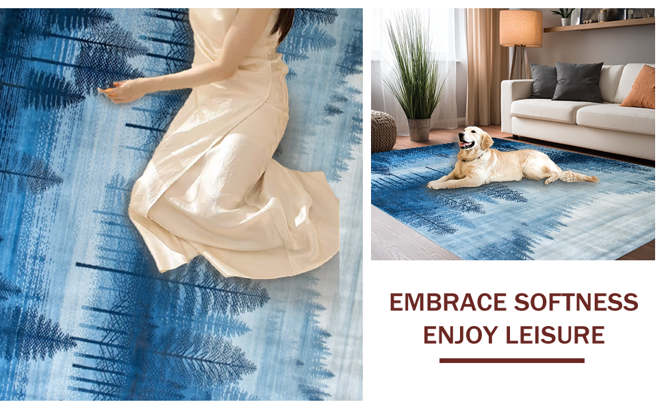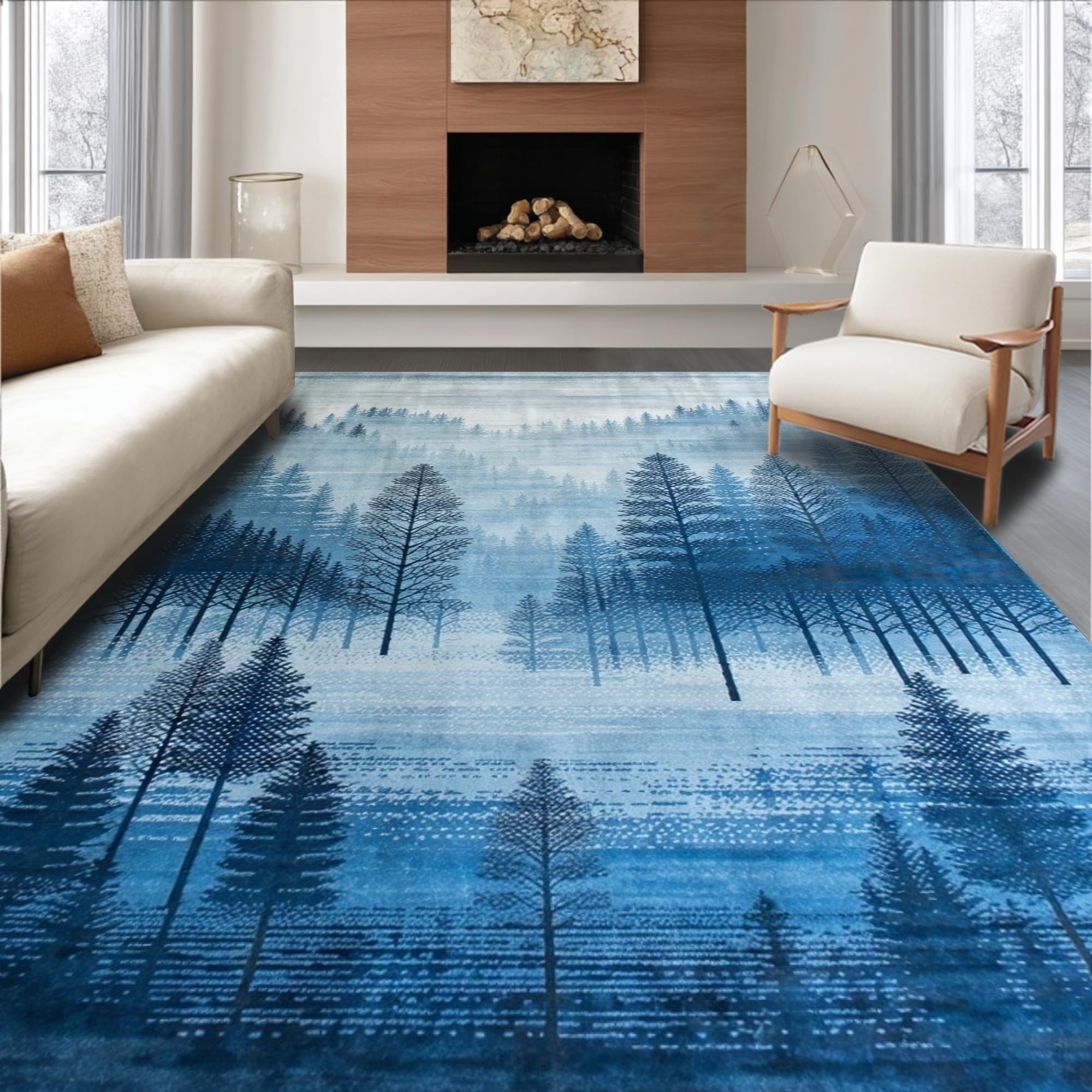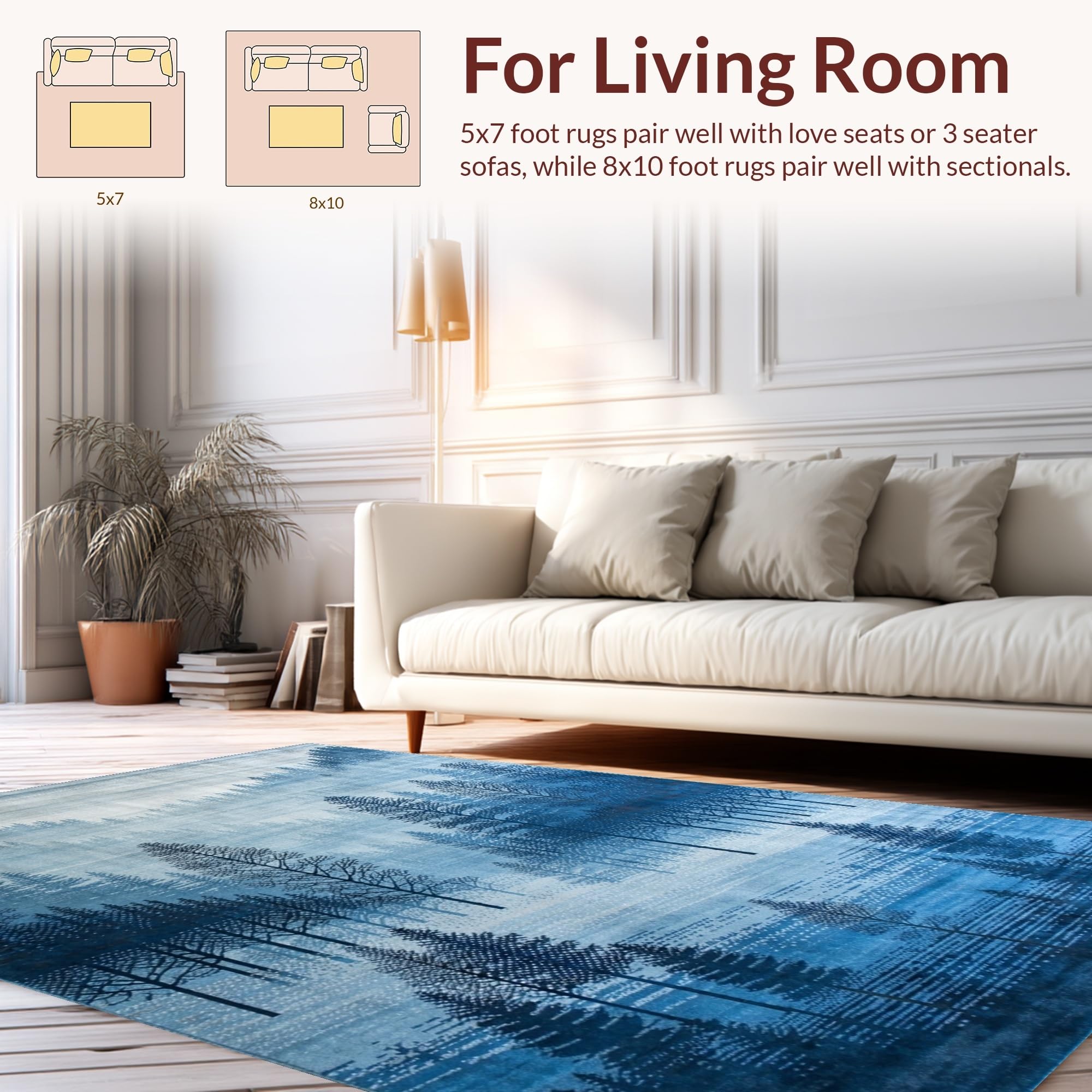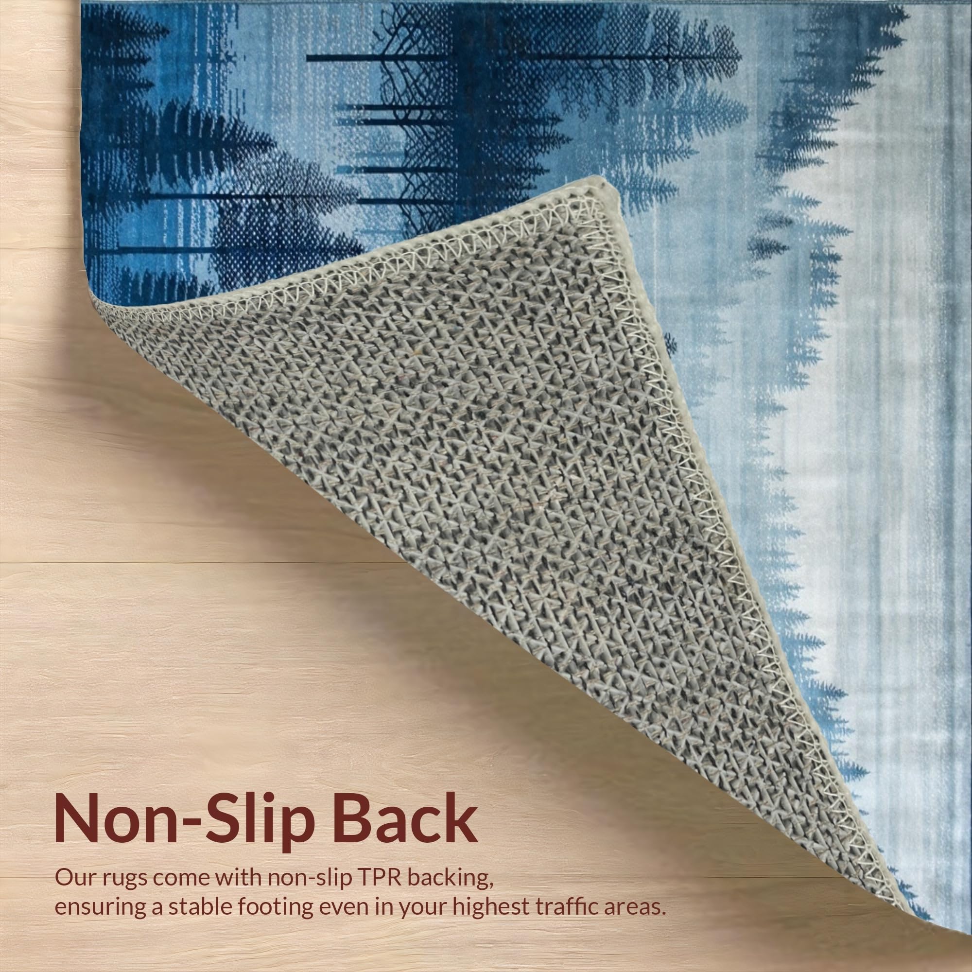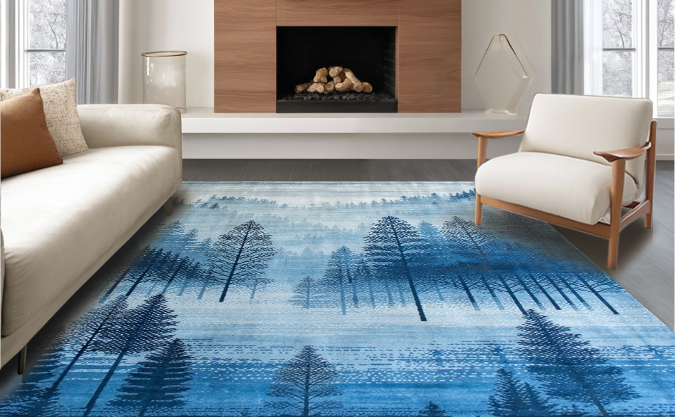 Ultra Soft Area Rug, Non Slip, Stain Resistant, Washable Area Rugs for Living Room, Bedroom, Contemporary Soft Blue Swirls(Blue) Overview: