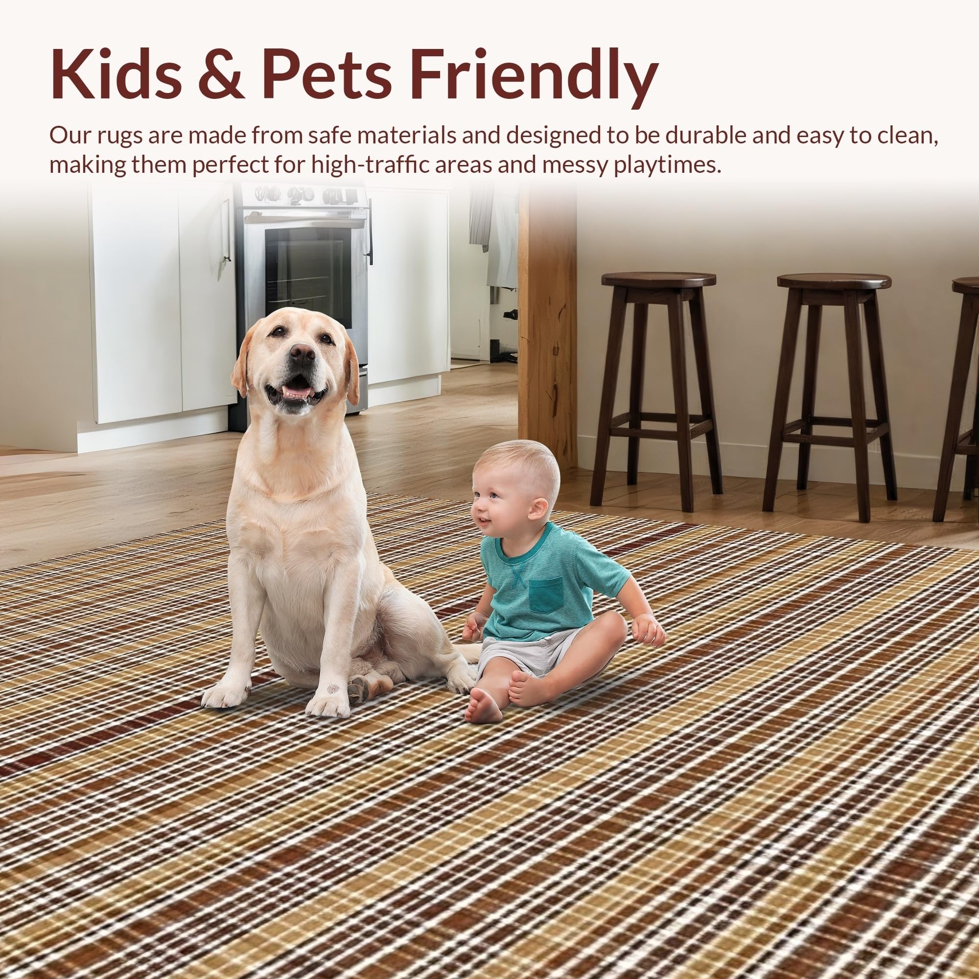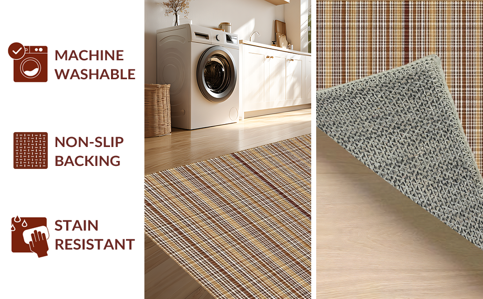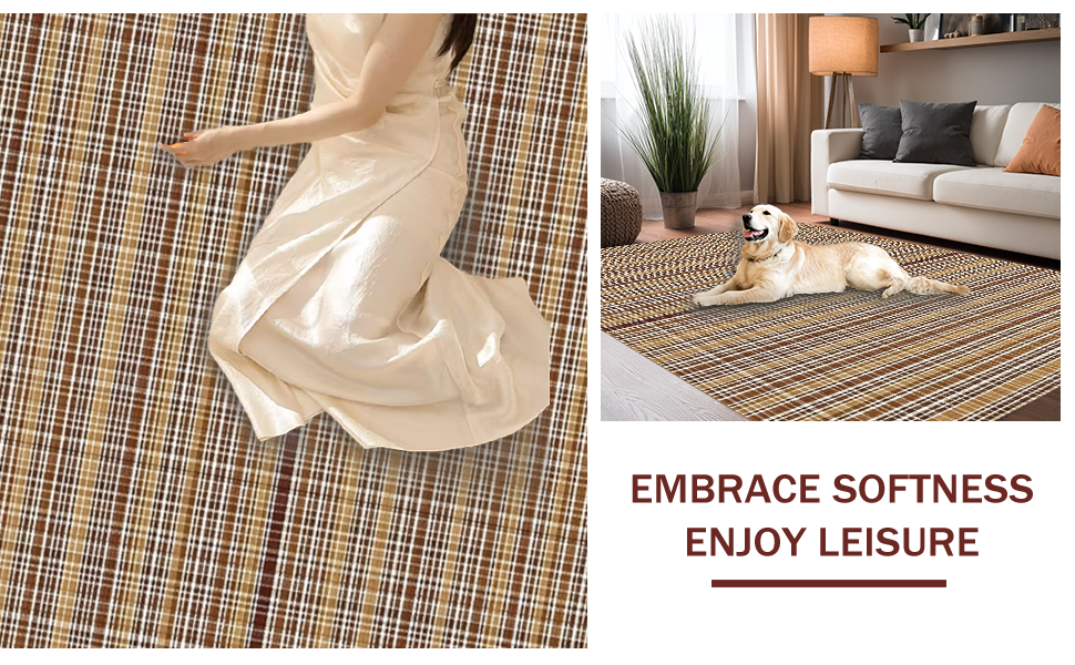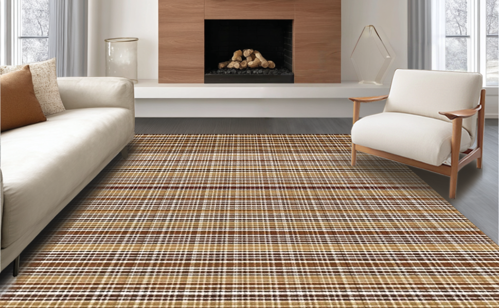 Ultra Soft Area Rug, Non Slip, Stain Resistant, Washable Area Rugs for Living Room, Bedroom, Contemporary Soft Checkered Aesthetic(Beige) Overview: