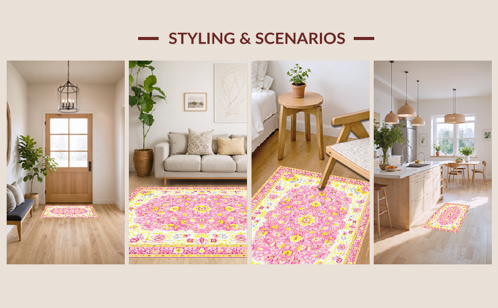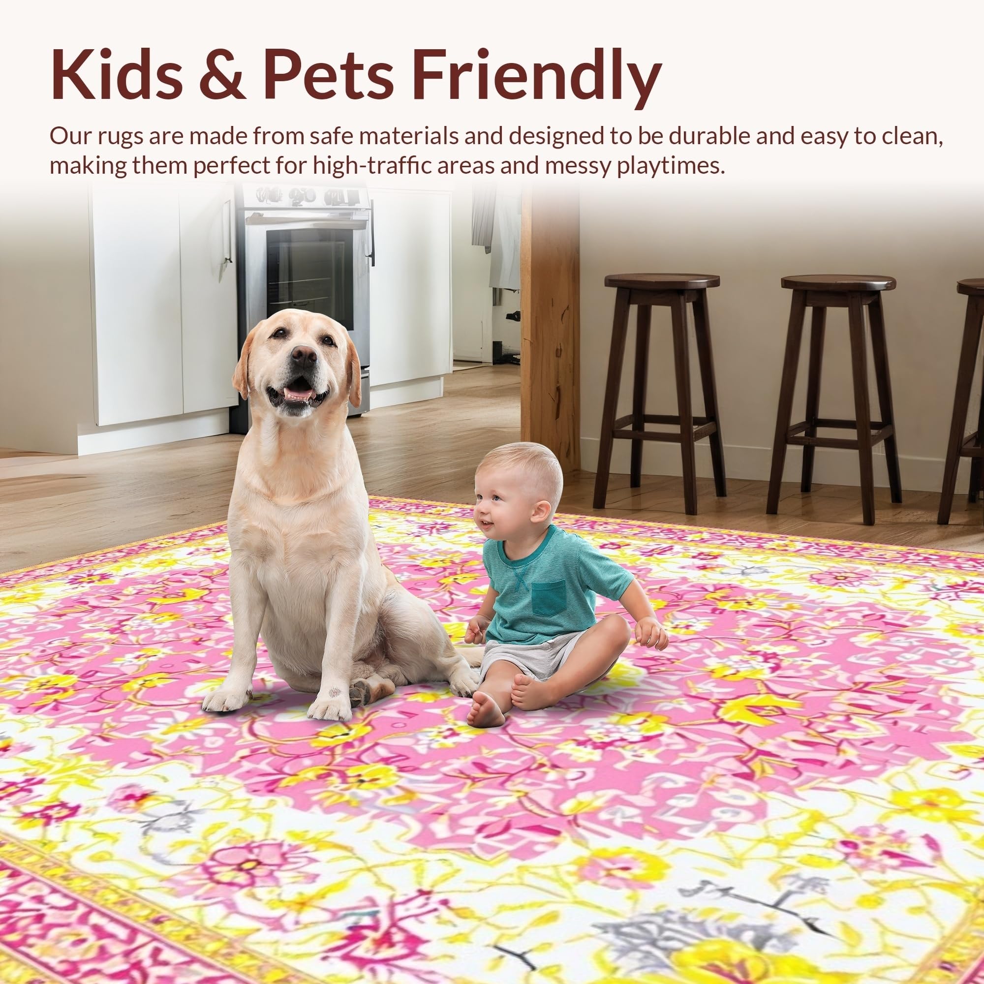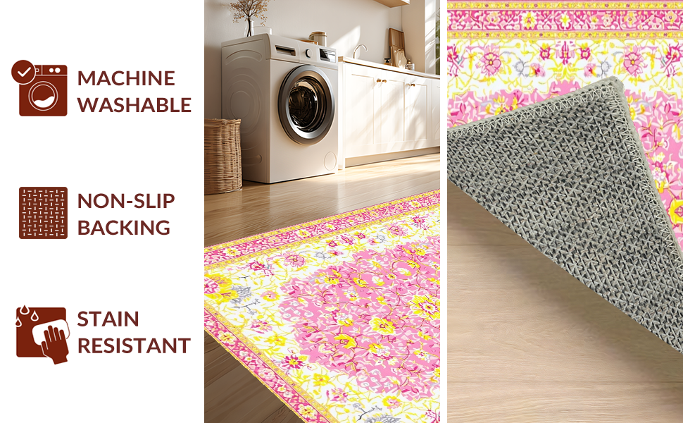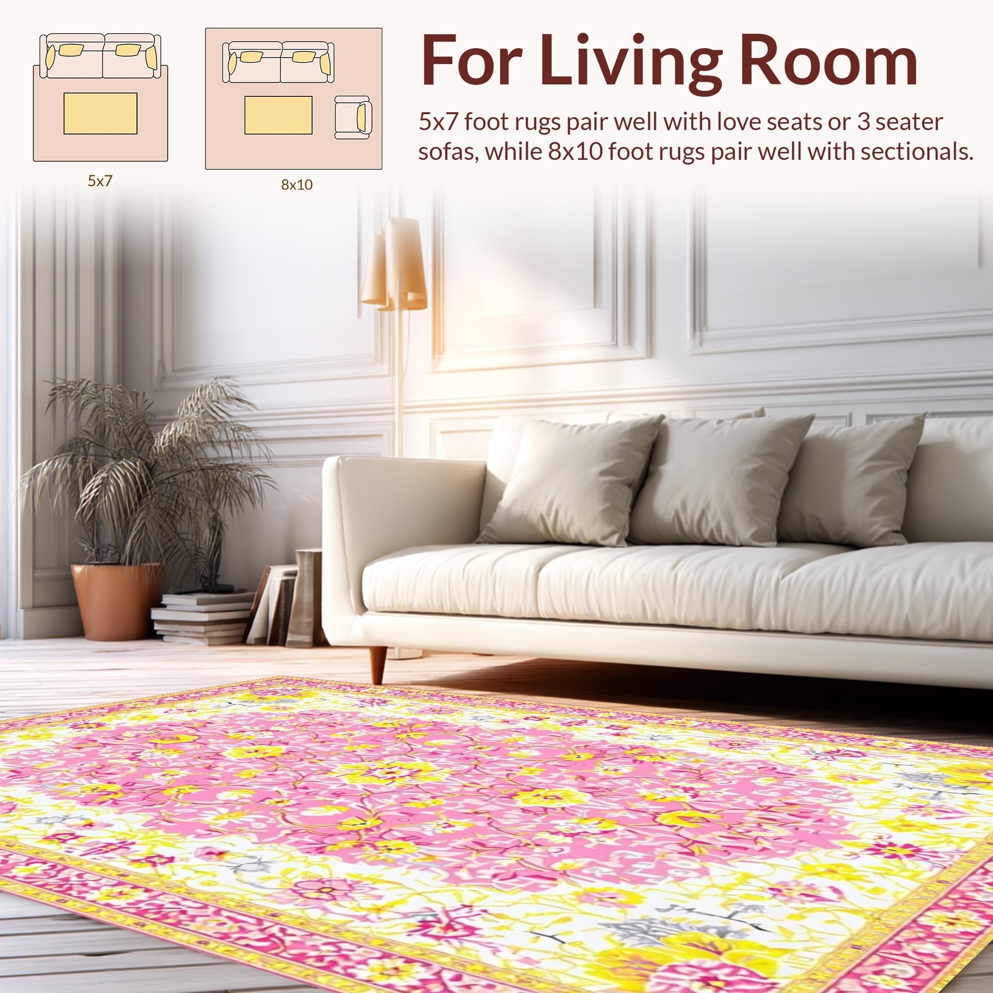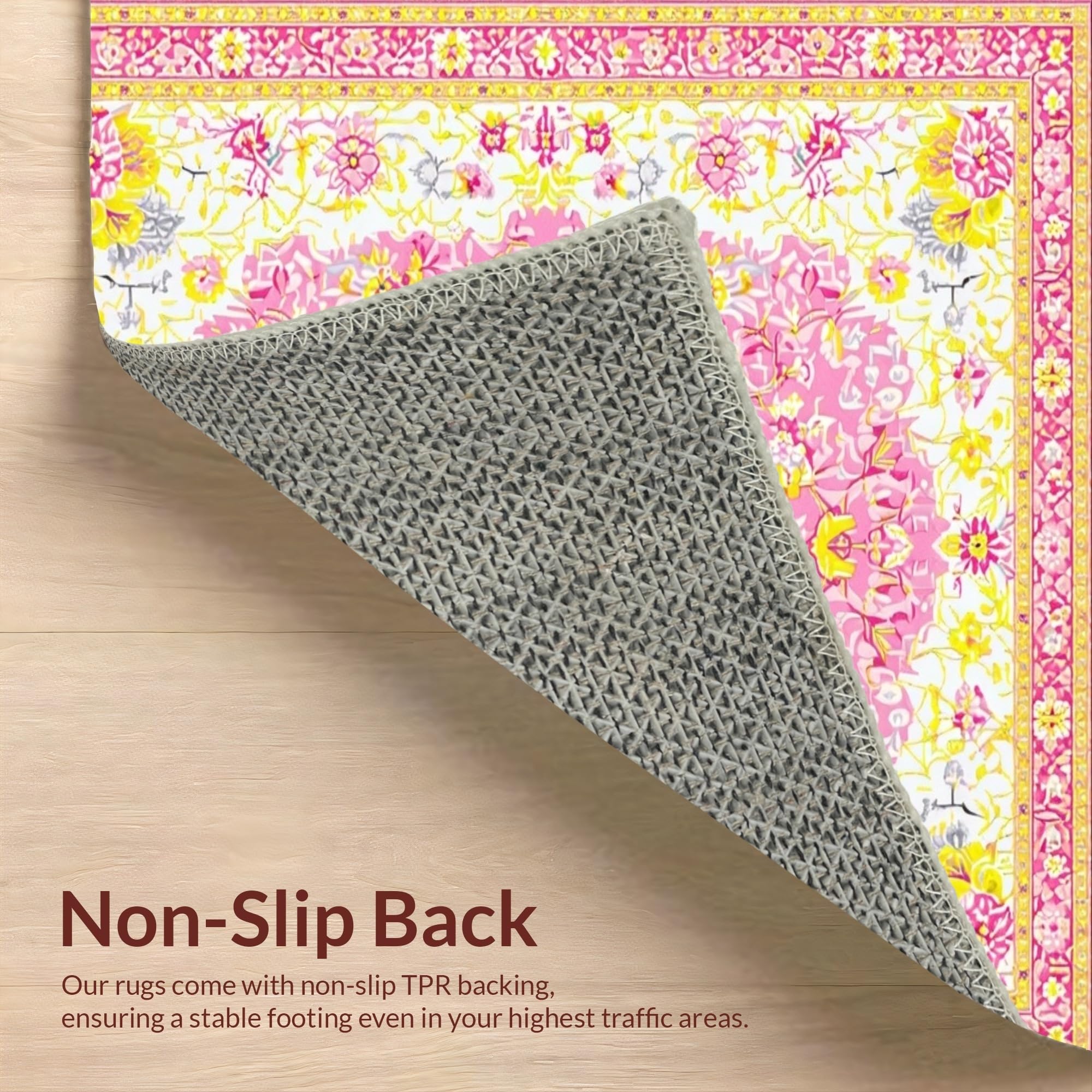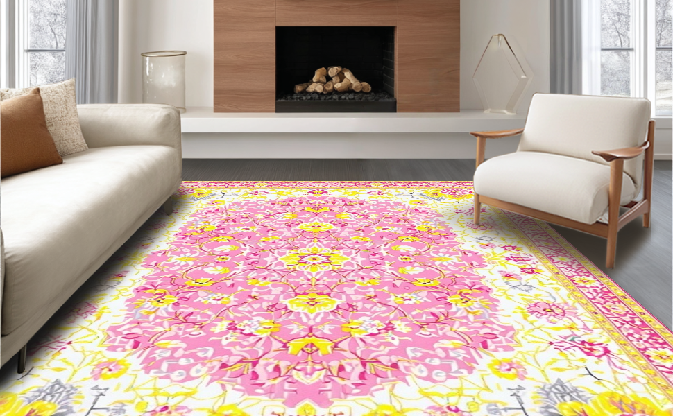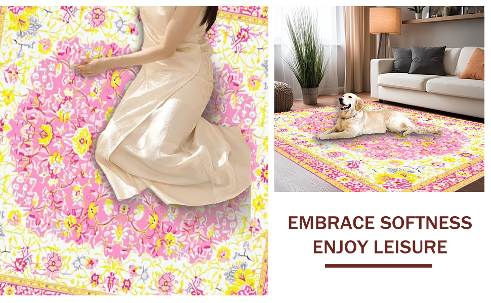 Ultra Soft Area Rug, Non Slip, Stain Resistant, Washable Area Rugs for Living Room, Bedroom, Contemporary Soft Color Blooms(Pink) Overview: