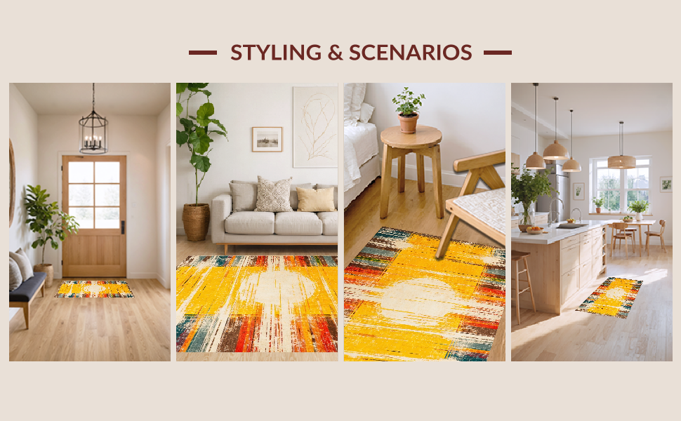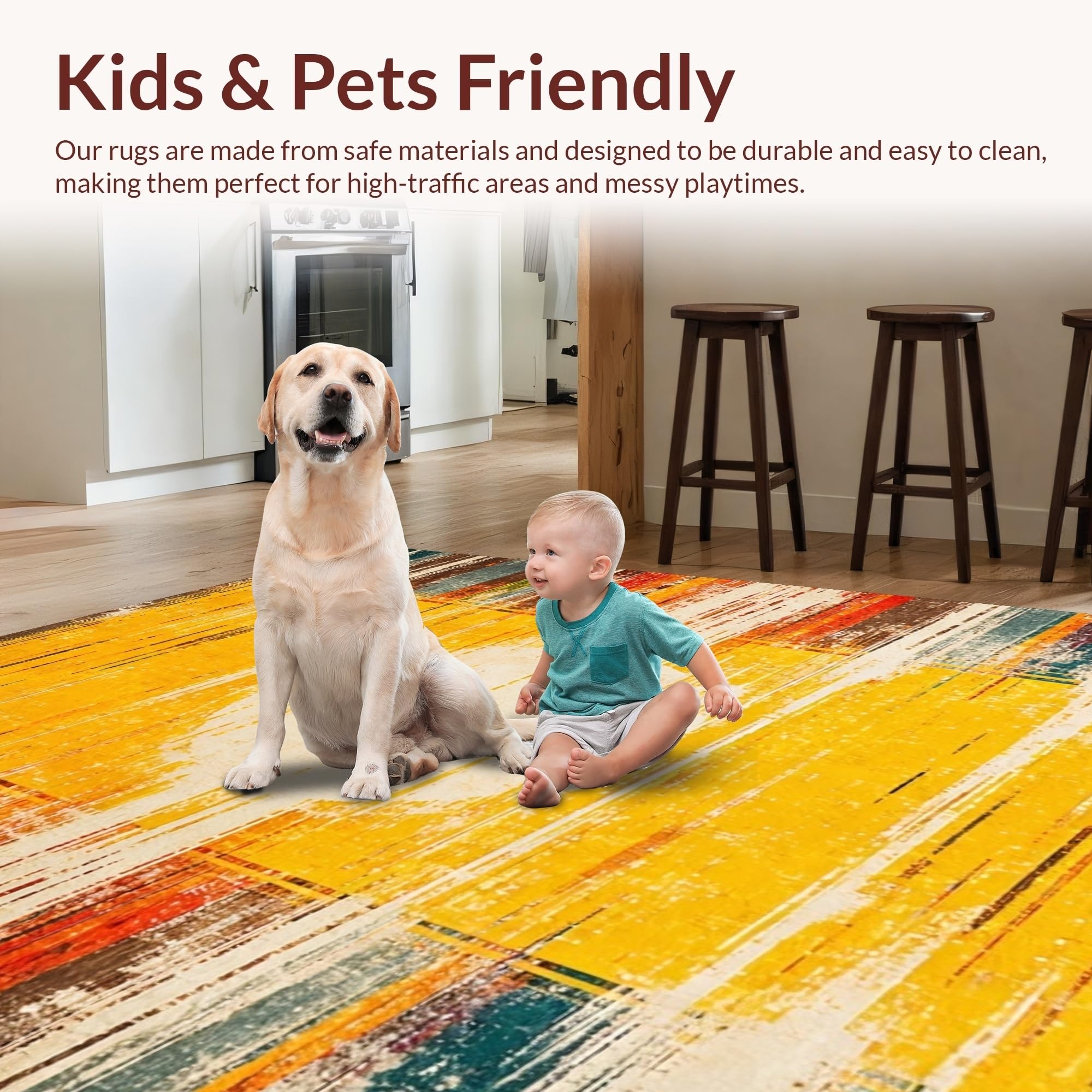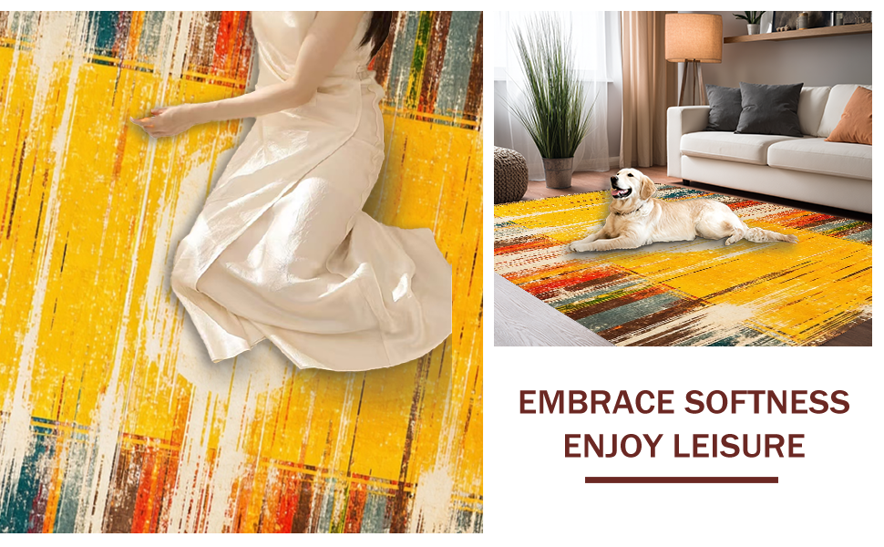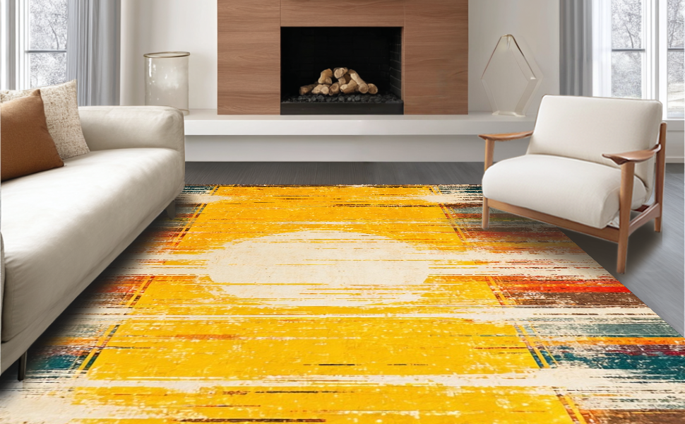 Ultra Soft Area Rug, Non Slip, Stain Resistant, Washable Area Rugs for Living Room, Bedroom, Contemporary Soft Color Fusion(Yellow) Overview: