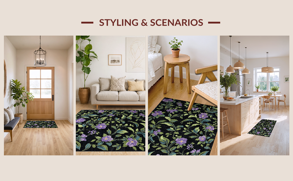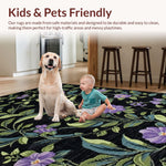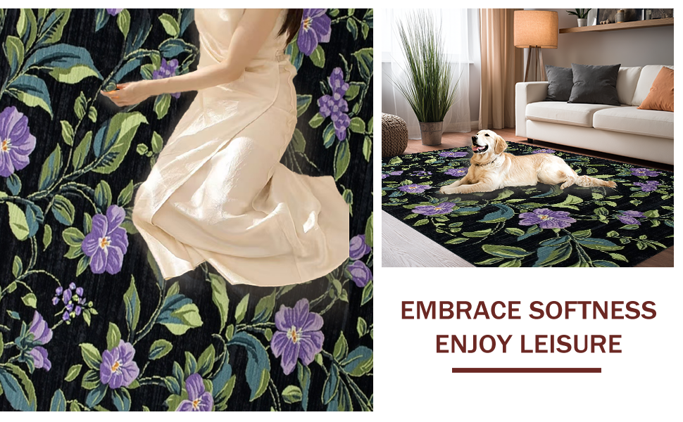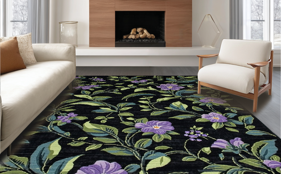 Ultra Soft Area Rug, Non Slip, Stain Resistant, Washable Area Rugs for Living Room, Bedroom, Contemporary Soft Floral Fusion(Black) Overview: