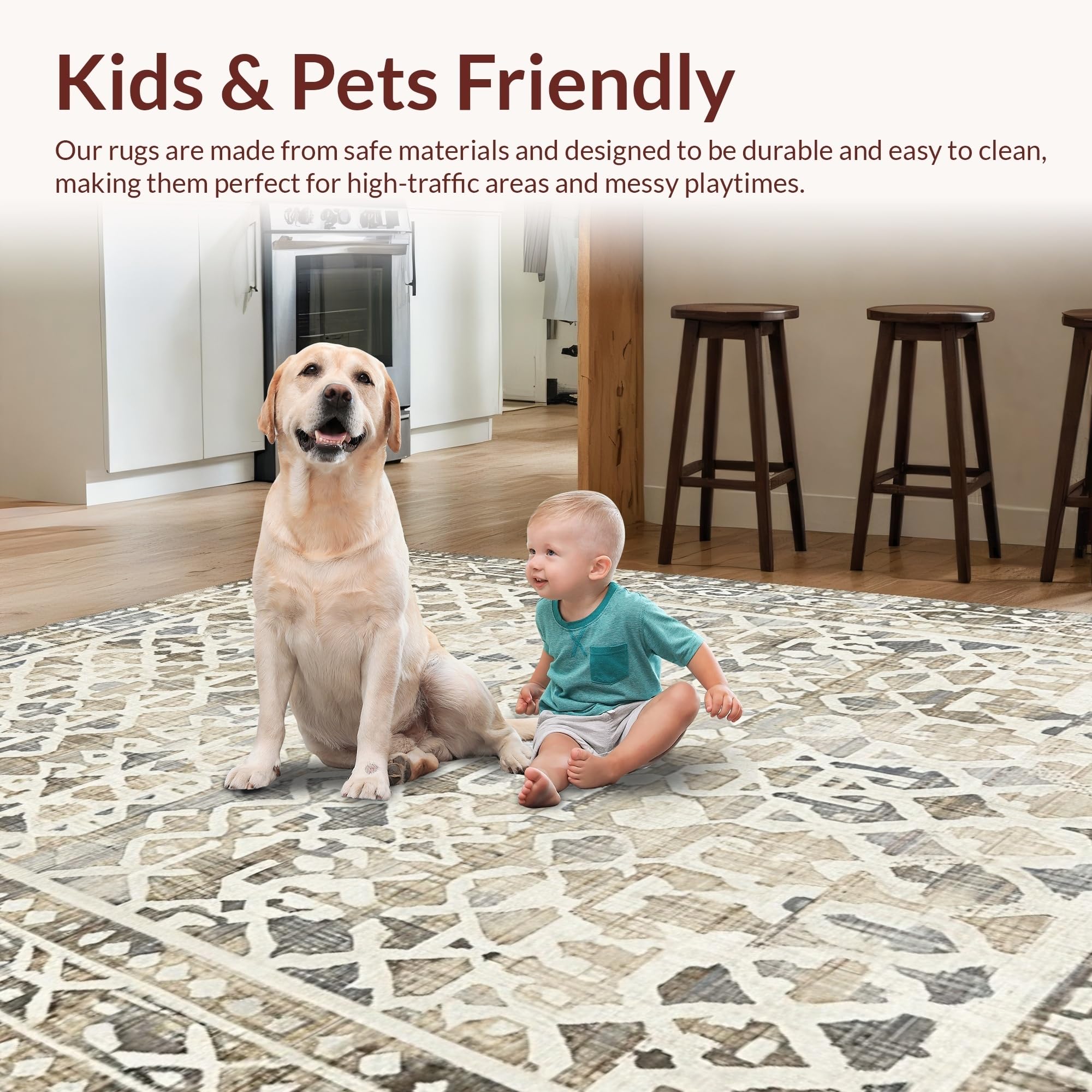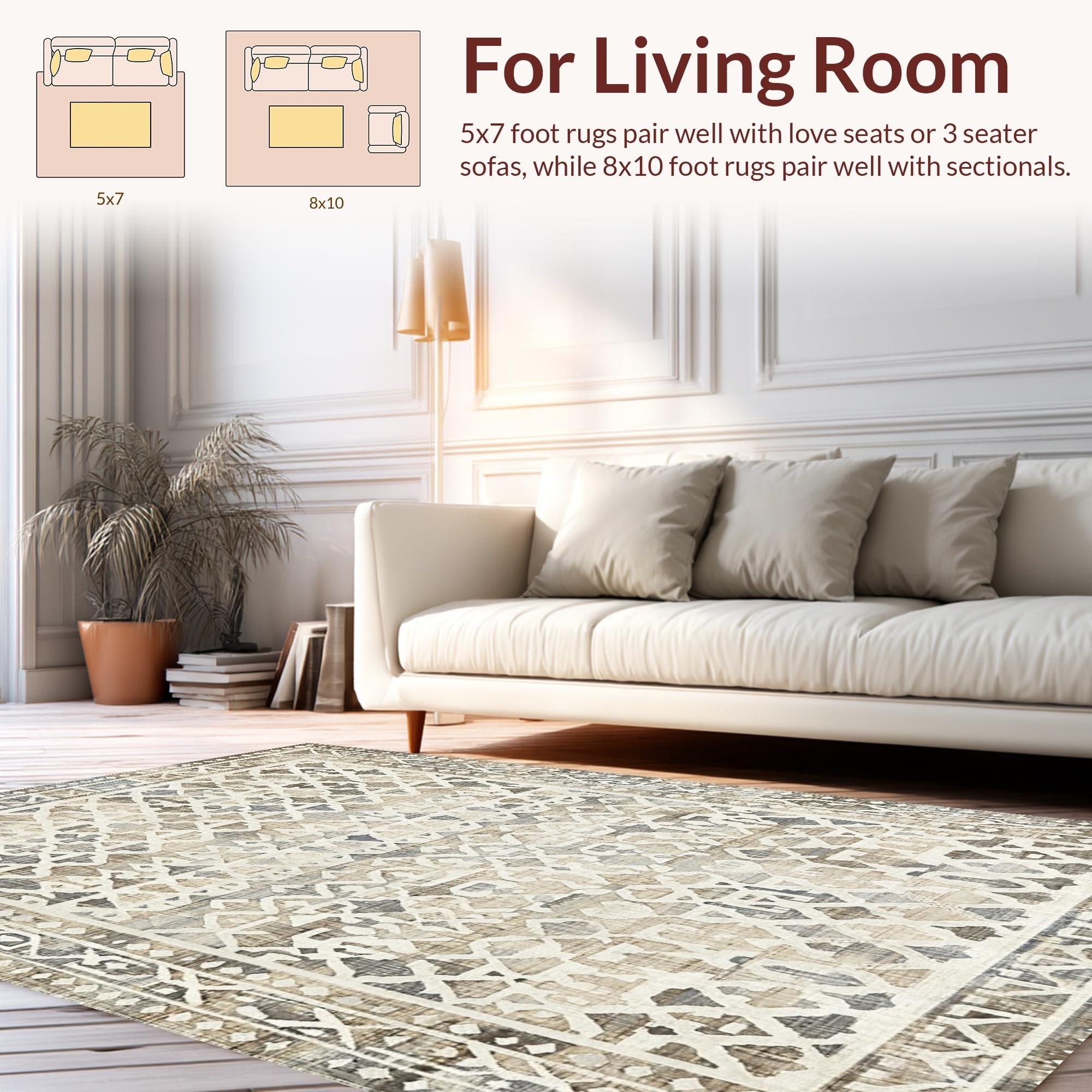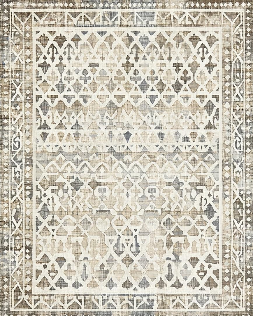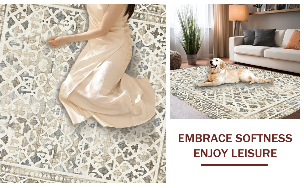 Ultra Soft Area Rug, Non Slip, Stain Resistant, Washable Area Rugs for Living Room, Bedroom, Contemporary Soft Geometric Arrangement(Beige) Overview: