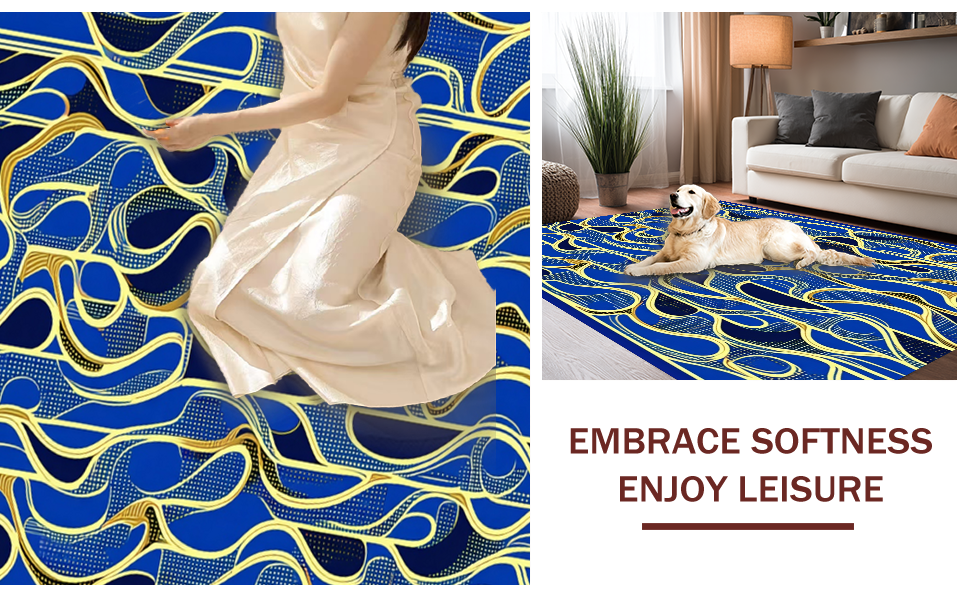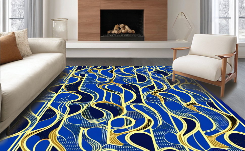 Ultra Soft Area Rug, Non Slip, Stain Resistant, Washable Area Rugs for Living Room, Bedroom, Contemporary Soft Gradient Swirls(Blue) Overview: