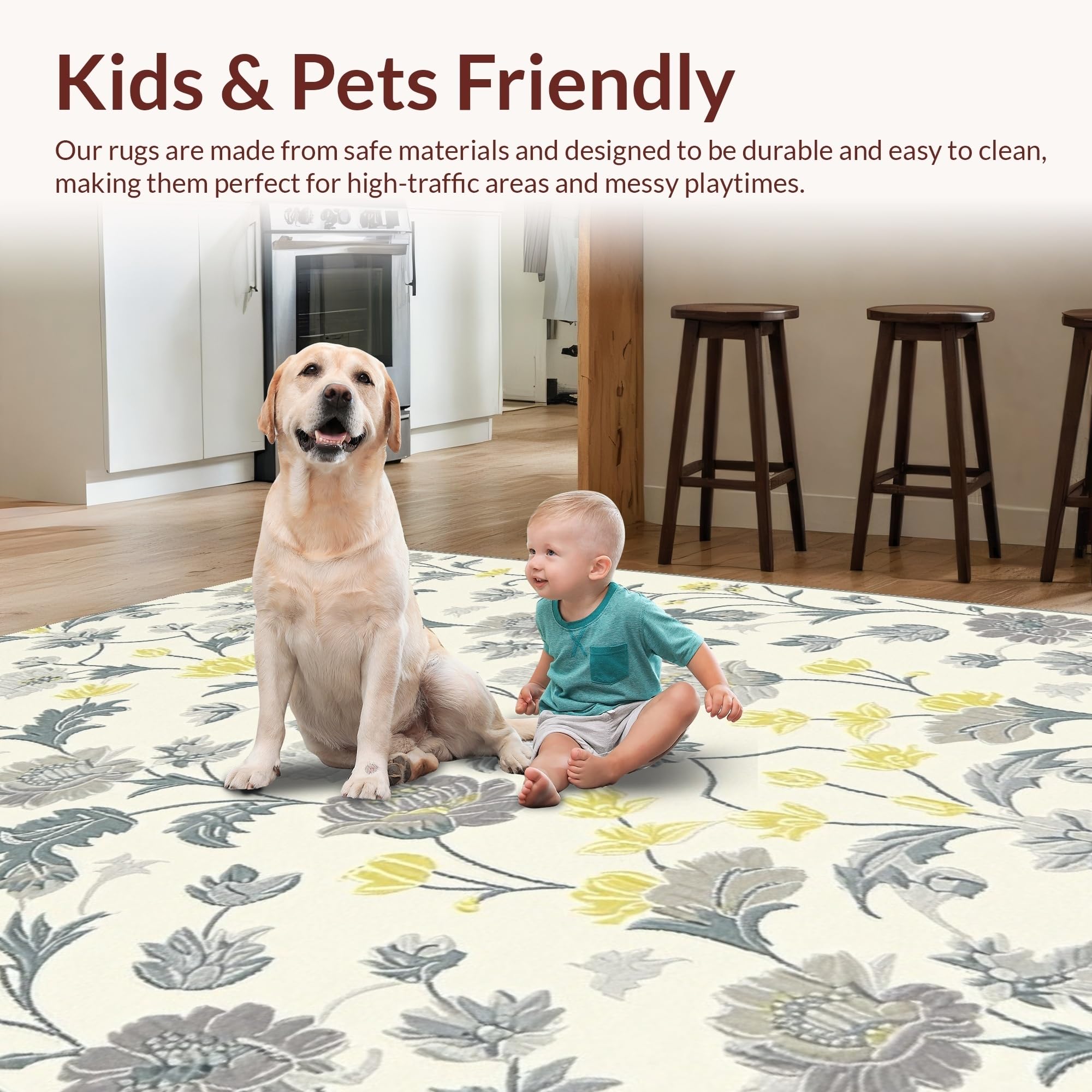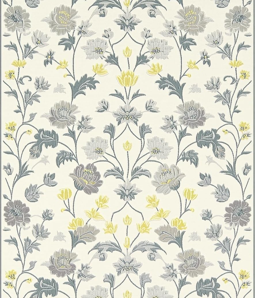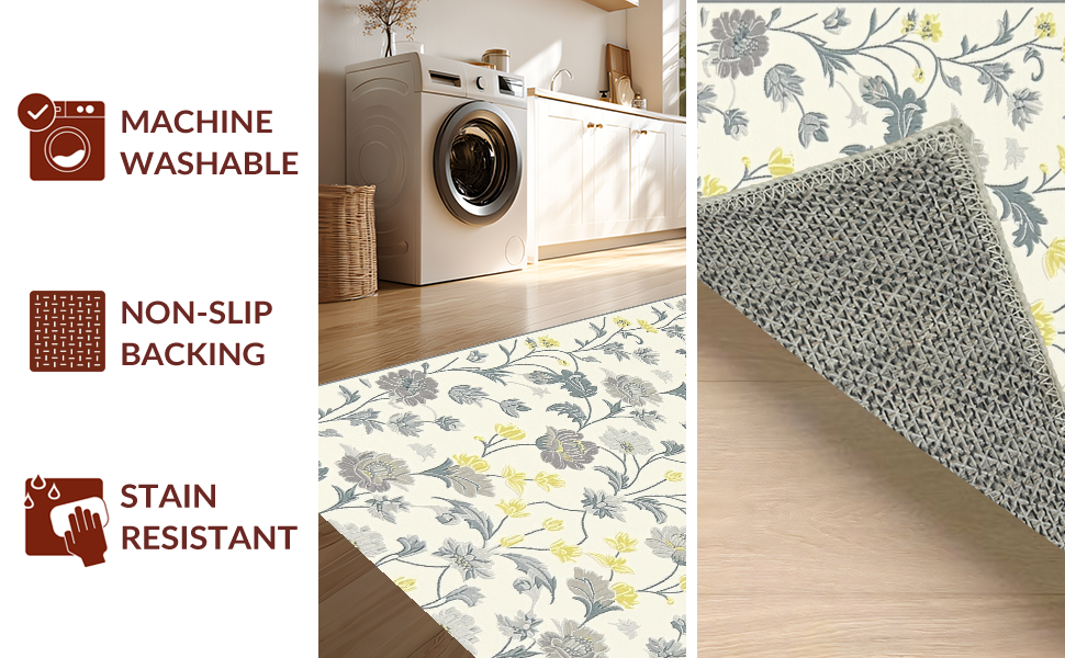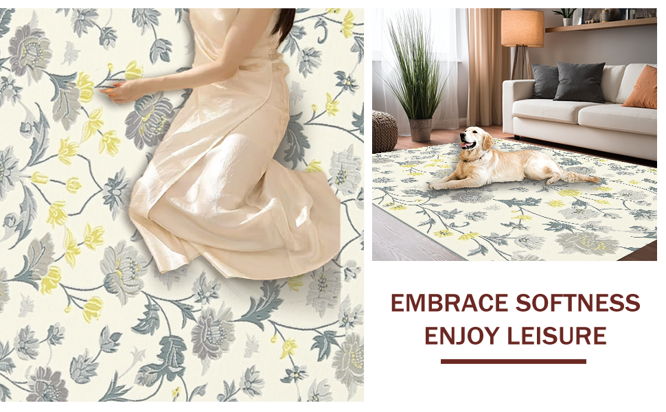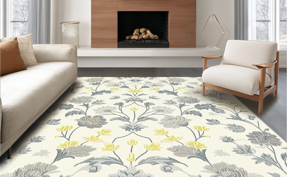 Ultra Soft Area Rug, Non Slip, Stain Resistant, Washable Area Rugs for Living Room, Bedroom, Contemporary Soft Gray Florals(Ivory) Overview: