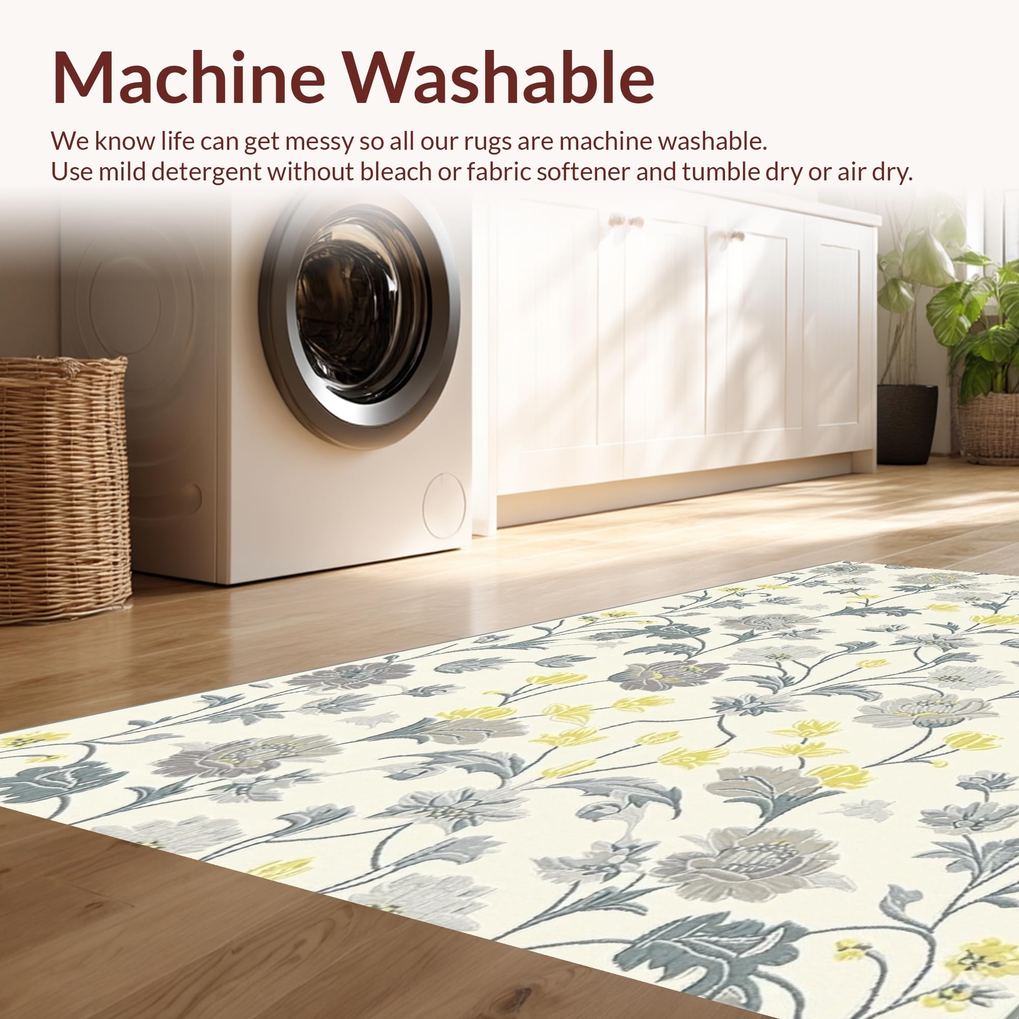 - Machine Washable: Our rugs can be easily thrown in the wash machine.