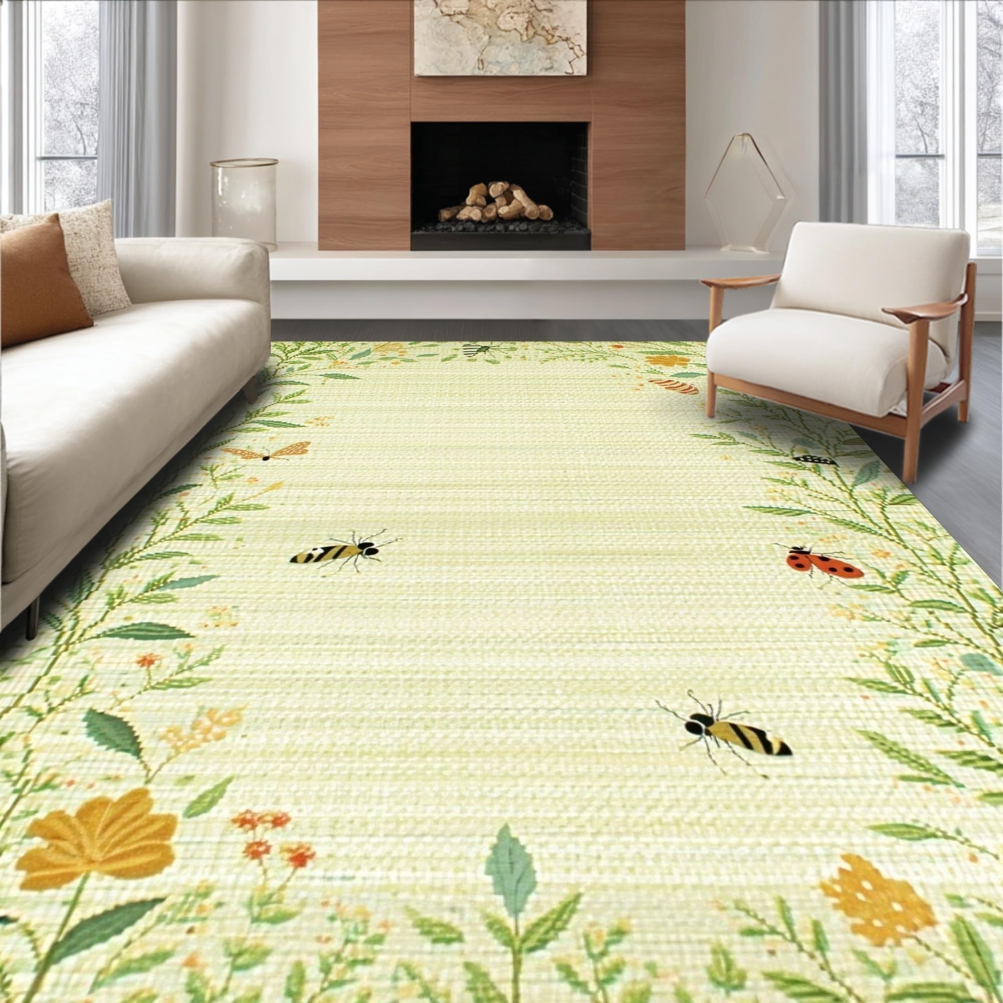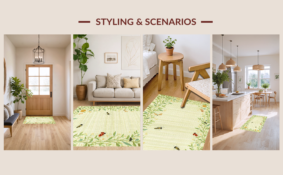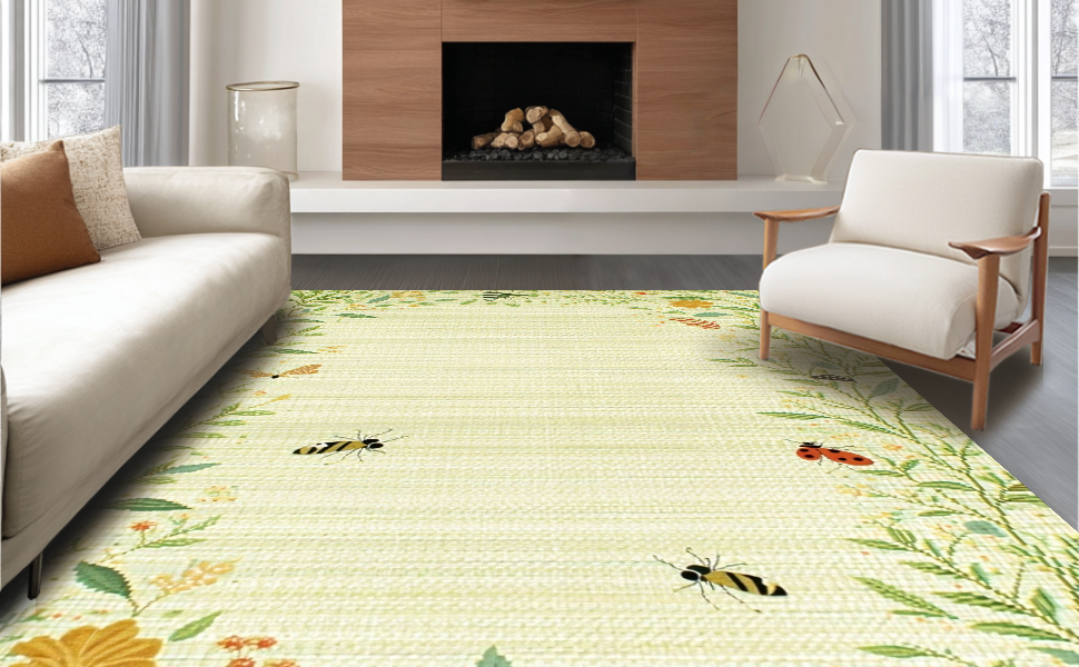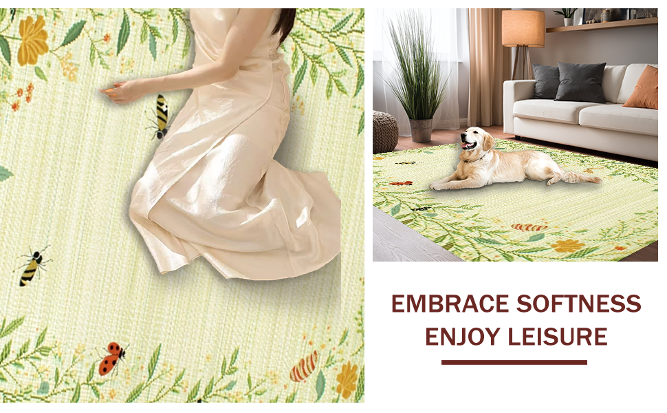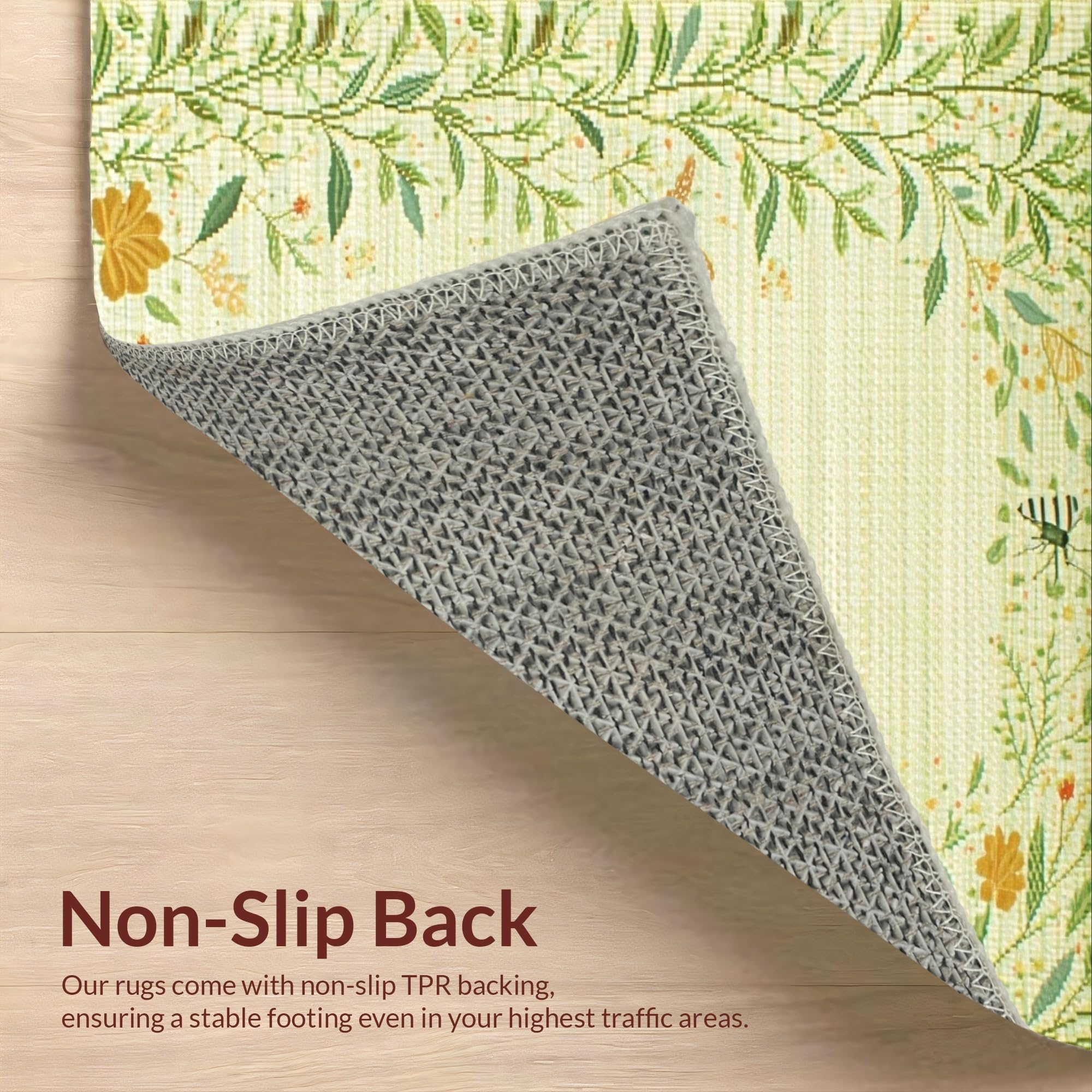 Ultra Soft Area Rug, Non Slip, Stain Resistant, Washable Area Rugs for Living Room, Bedroom, Contemporary Soft Green Accents(Beige) Overview:
