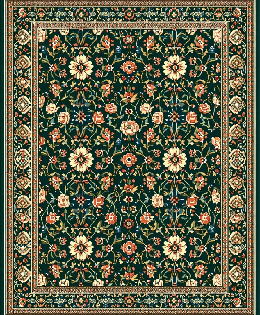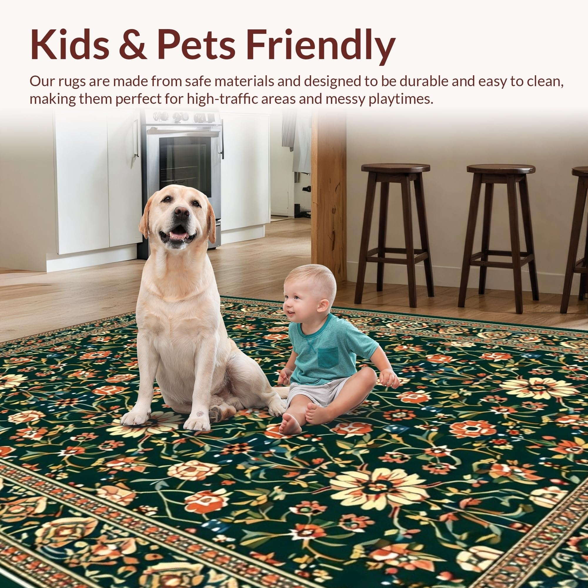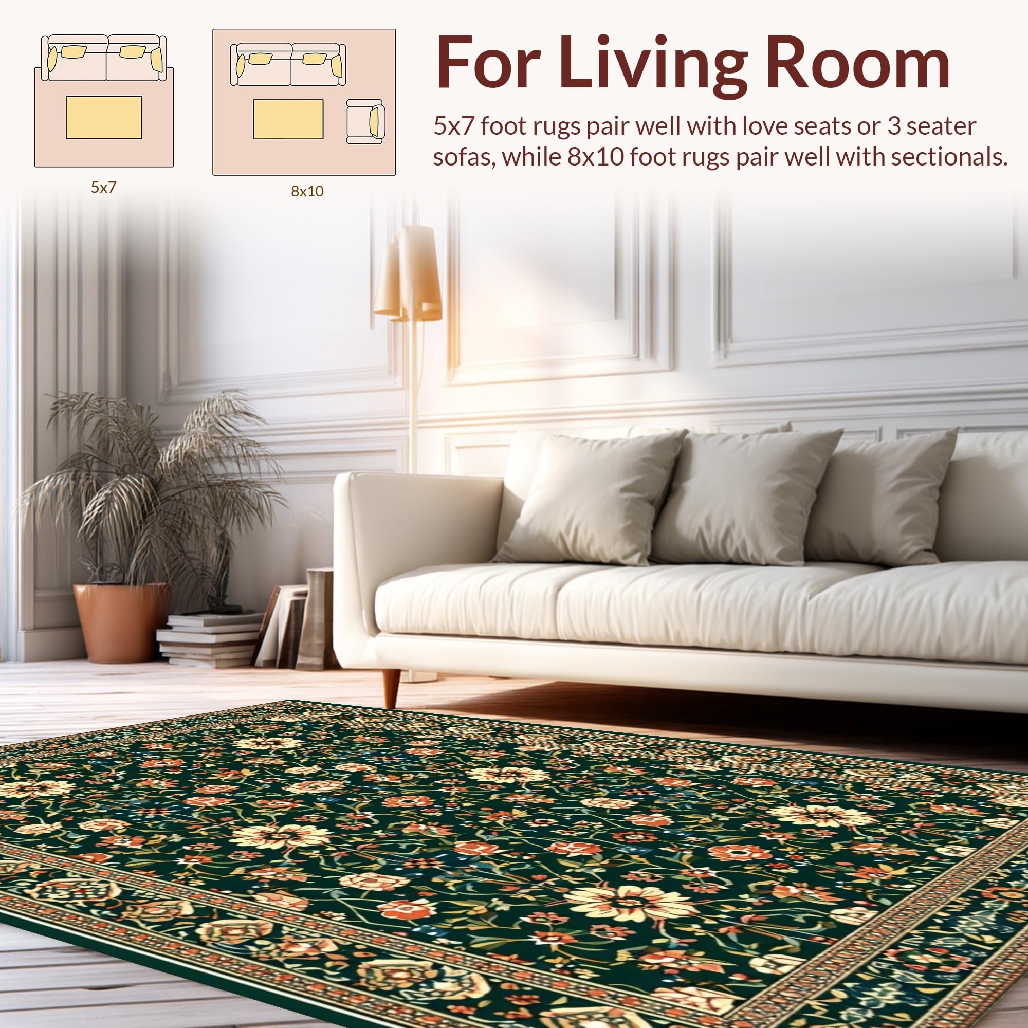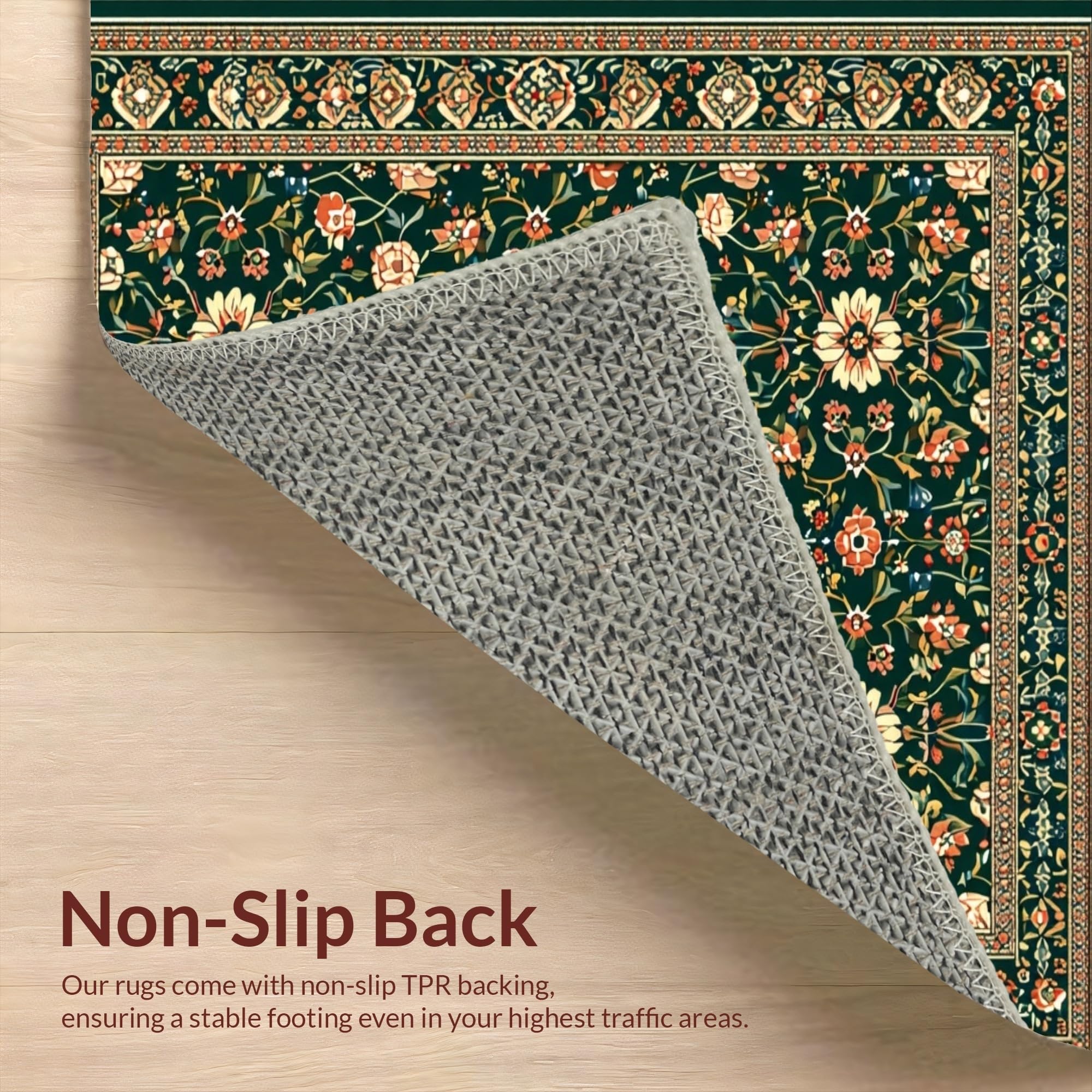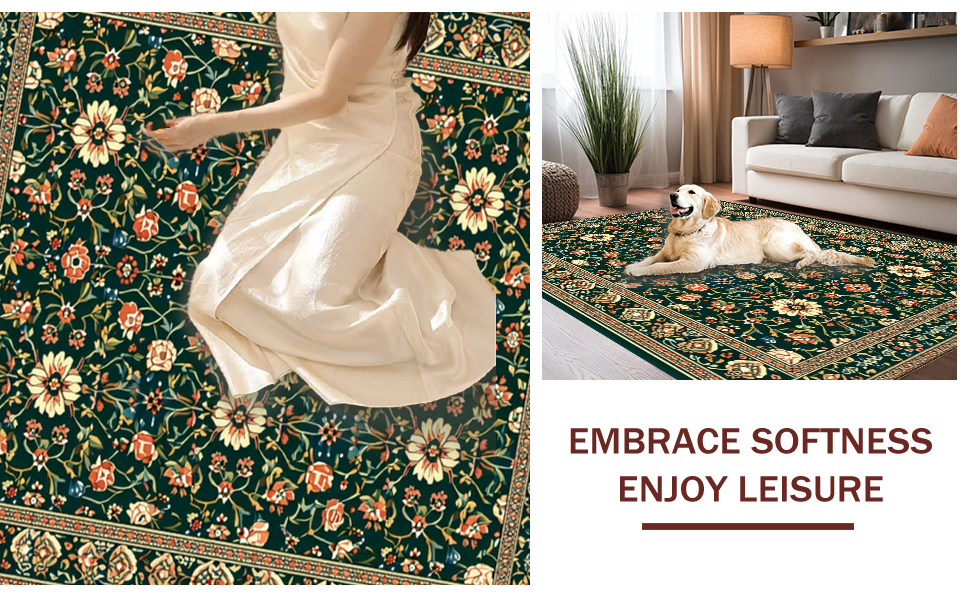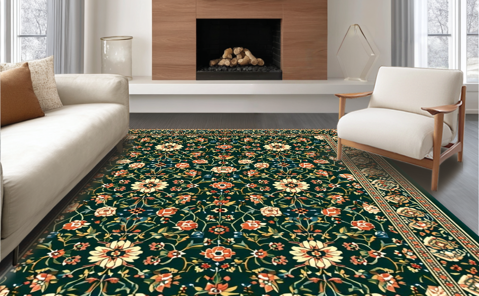 Ultra Soft Area Rug, Non Slip, Stain Resistant, Washable Area Rugs for Living Room, Bedroom, Contemporary Soft Green Floral Theme(Black) Overview: