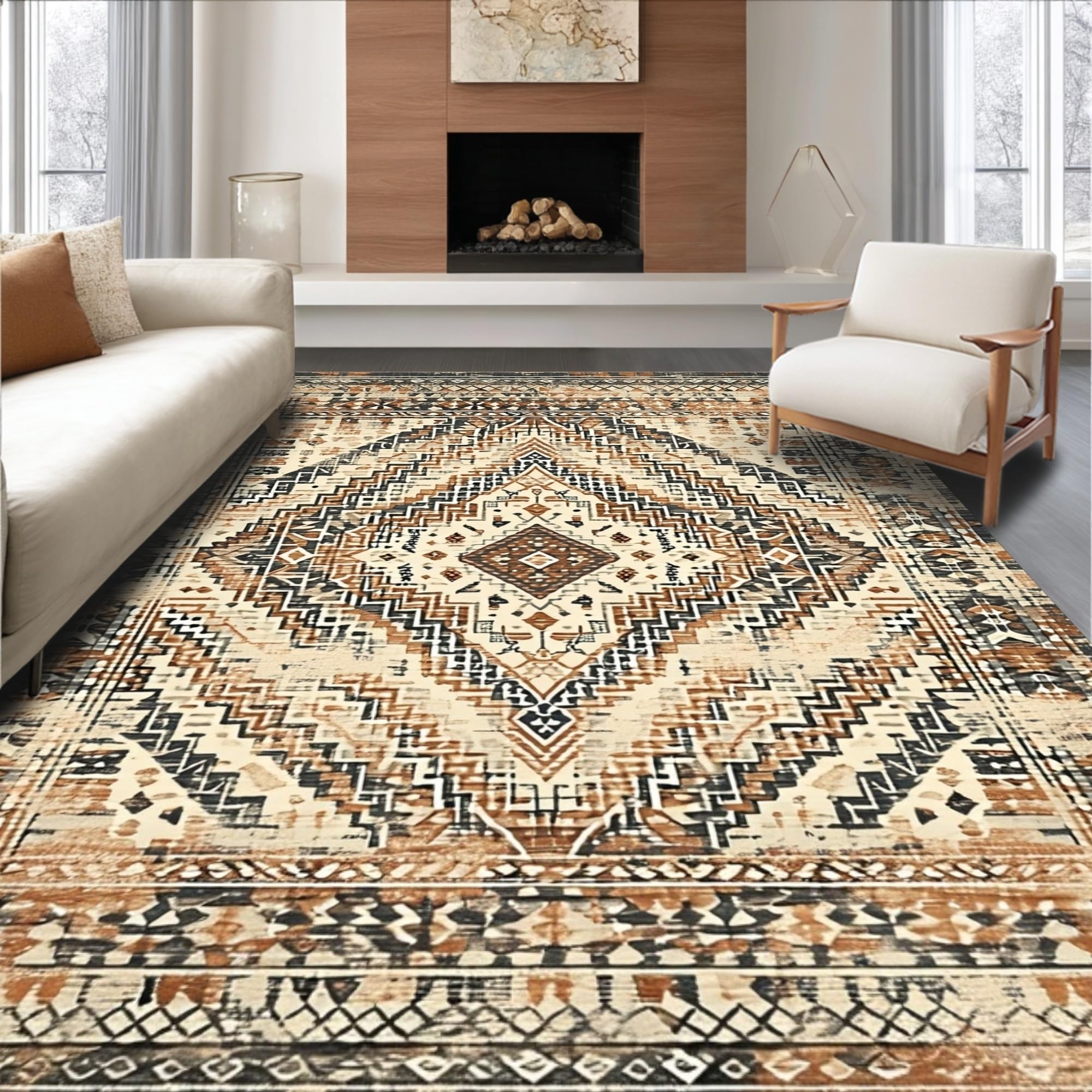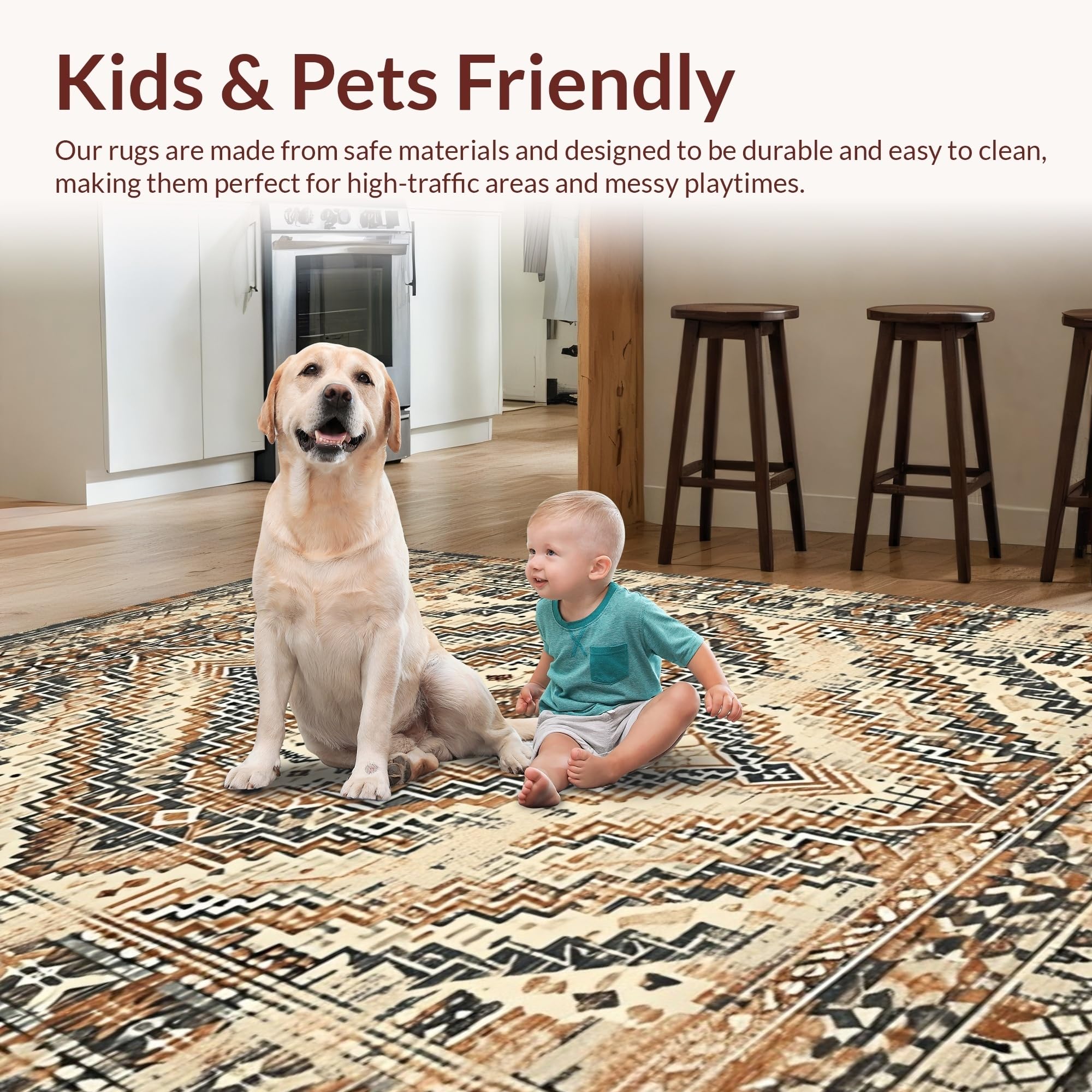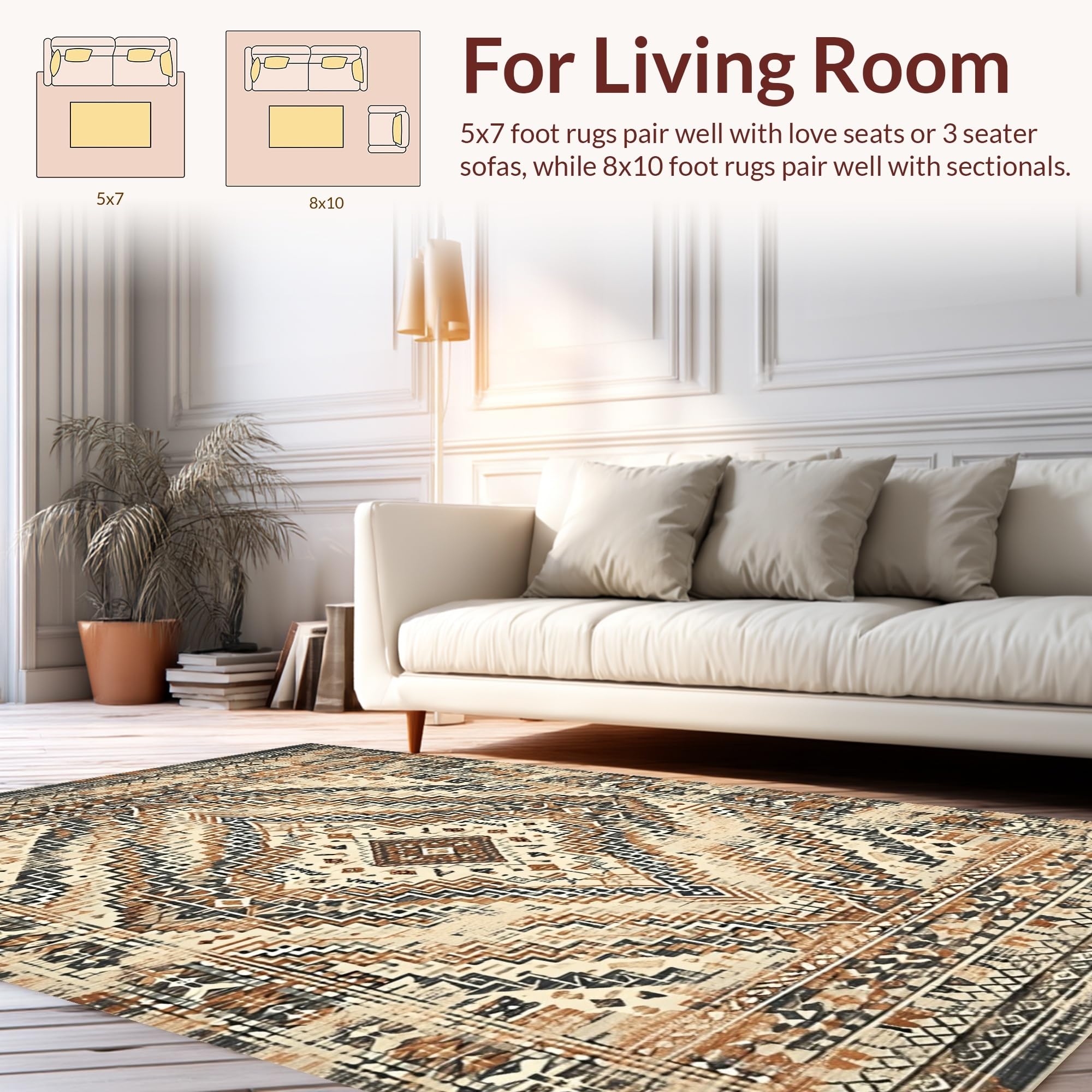 Ultra Soft Area Rug, Non Slip, Stain Resistant, Washable Area Rugs for Living Room, Bedroom, Contemporary Soft Linear Design(Beige) Overview:
