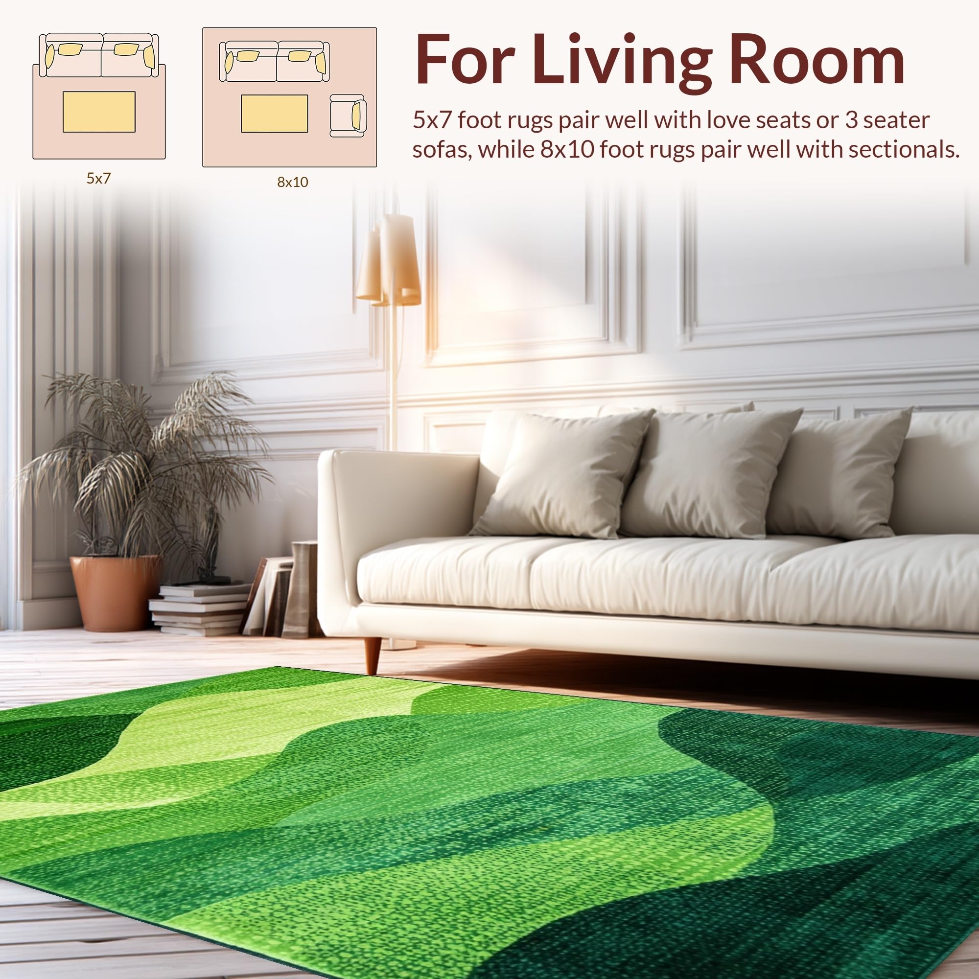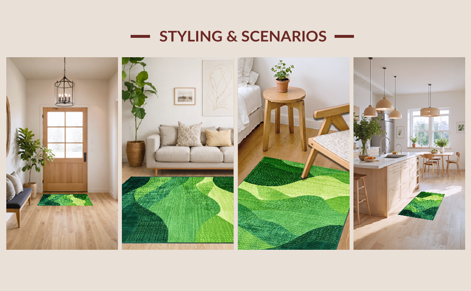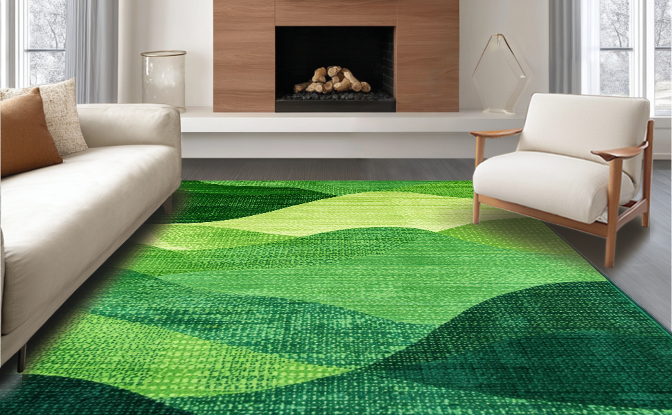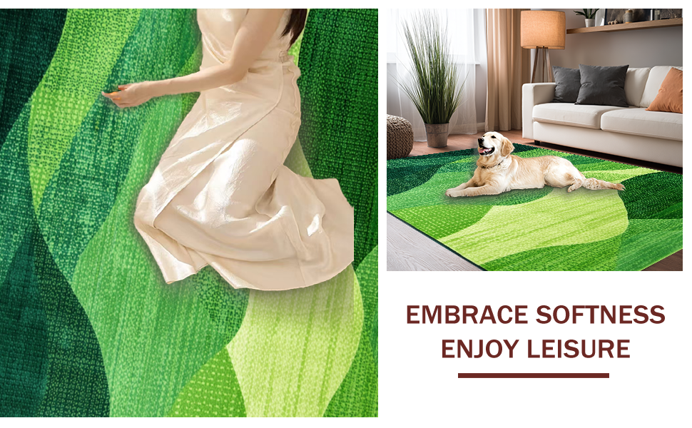 Ultra Soft Area Rug, Non Slip, Stain Resistant, Washable Area Rugs for Living Room, Bedroom, Contemporary Soft Moss Vibe(Green) Overview: