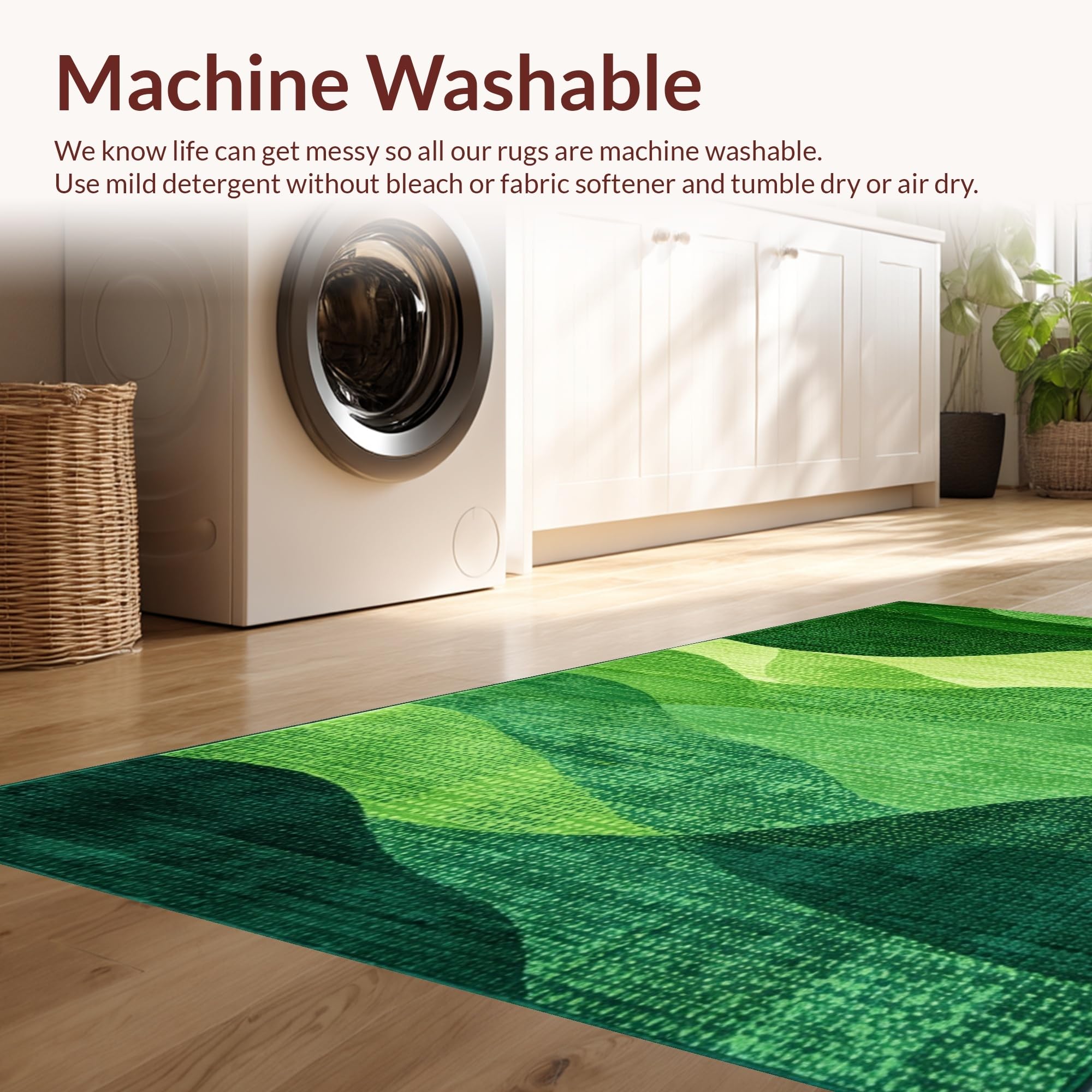 - Machine Washable: Our rugs can be easily thrown in the wash machine.