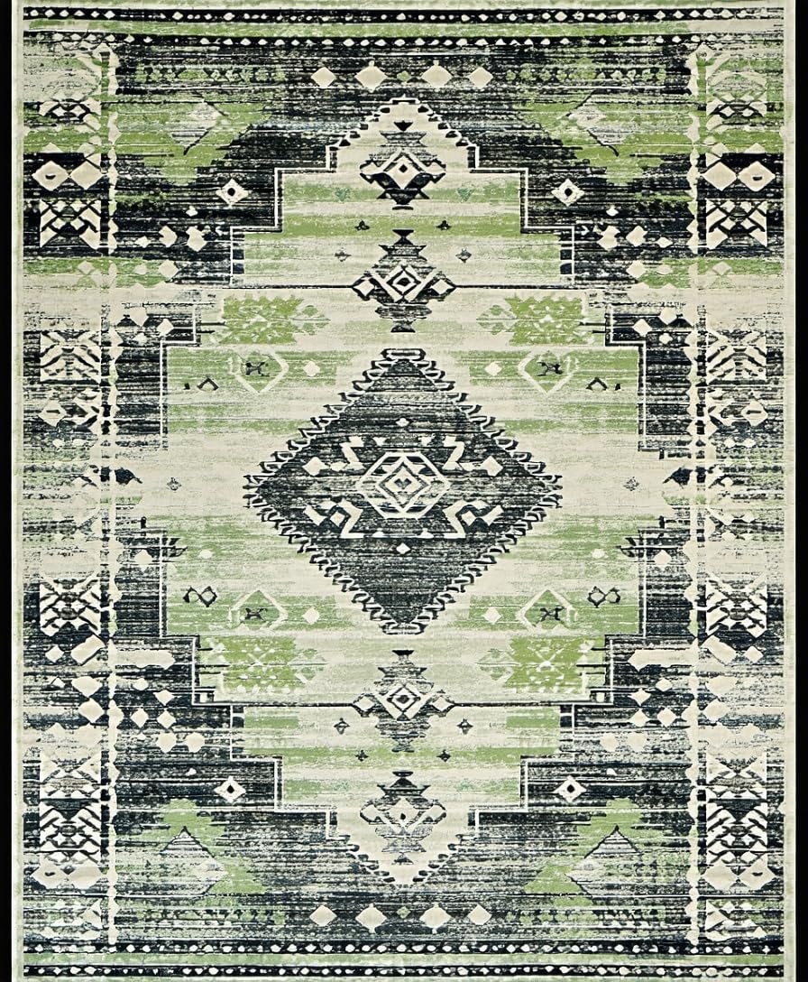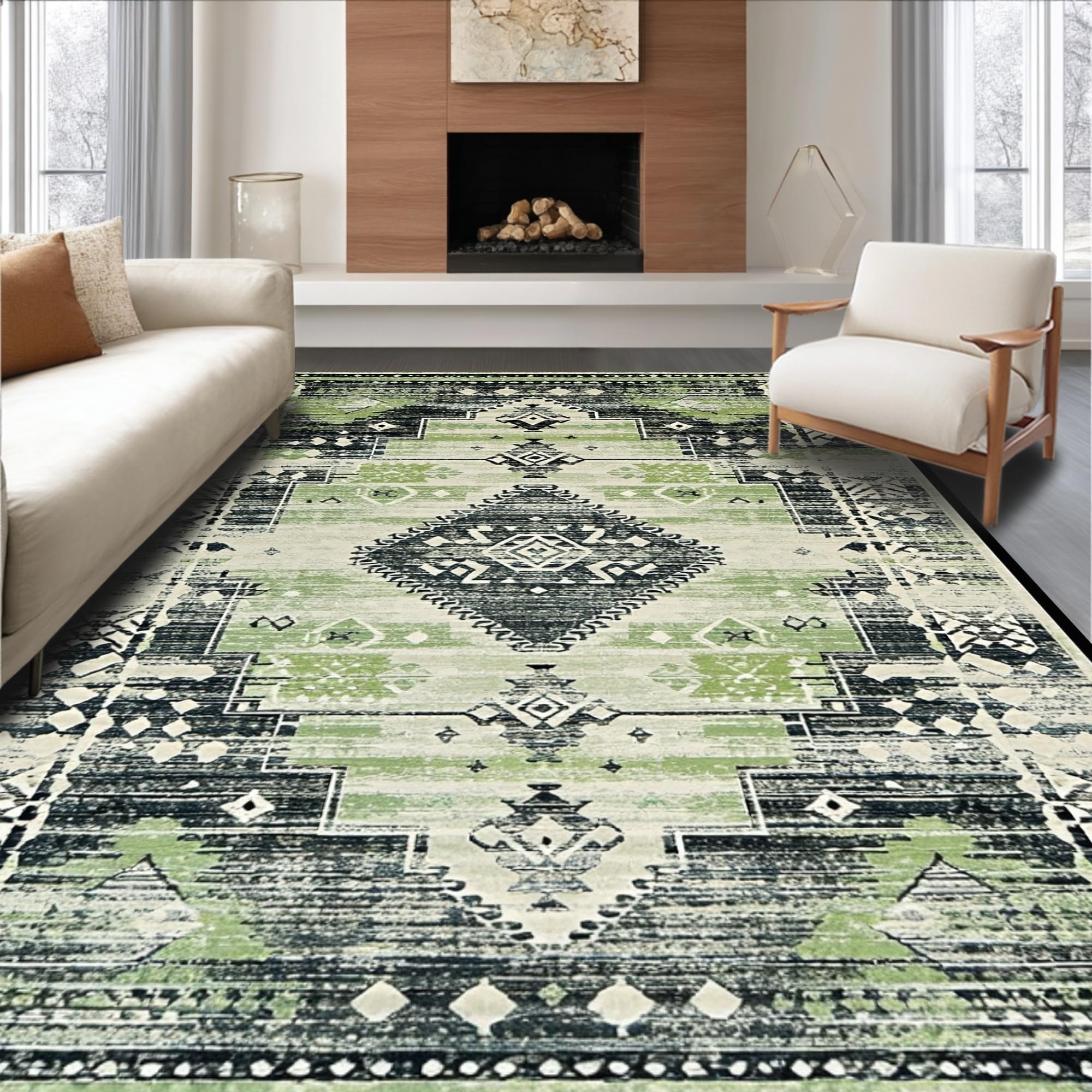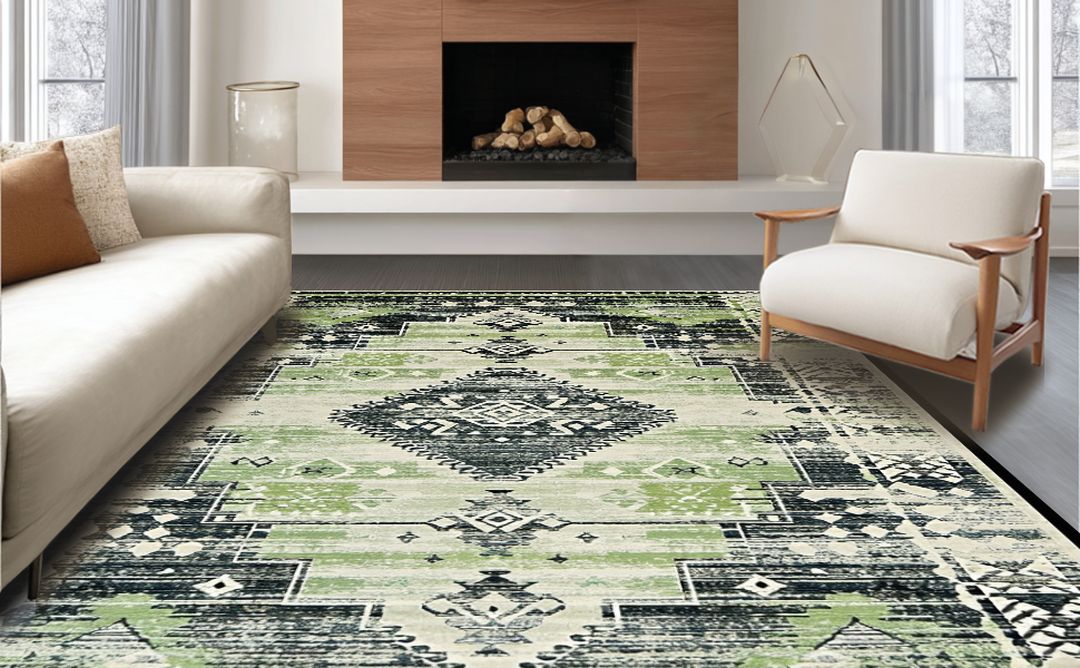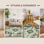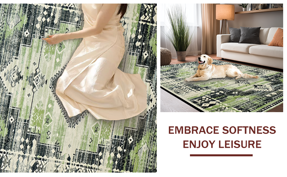 Ultra Soft Area Rug, Non Slip, Stain Resistant, Washable Area Rugs for Living Room, Bedroom, Contemporary Soft Ogee Motif(Green) Overview: