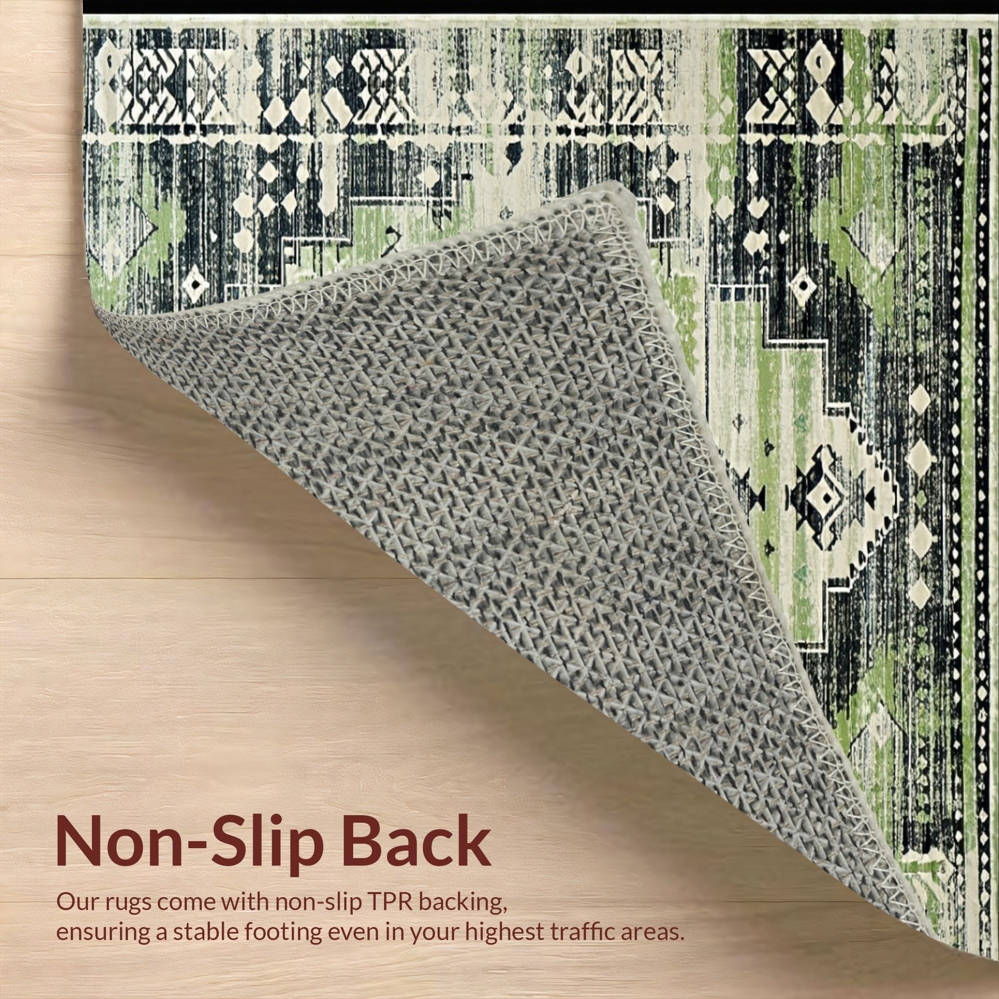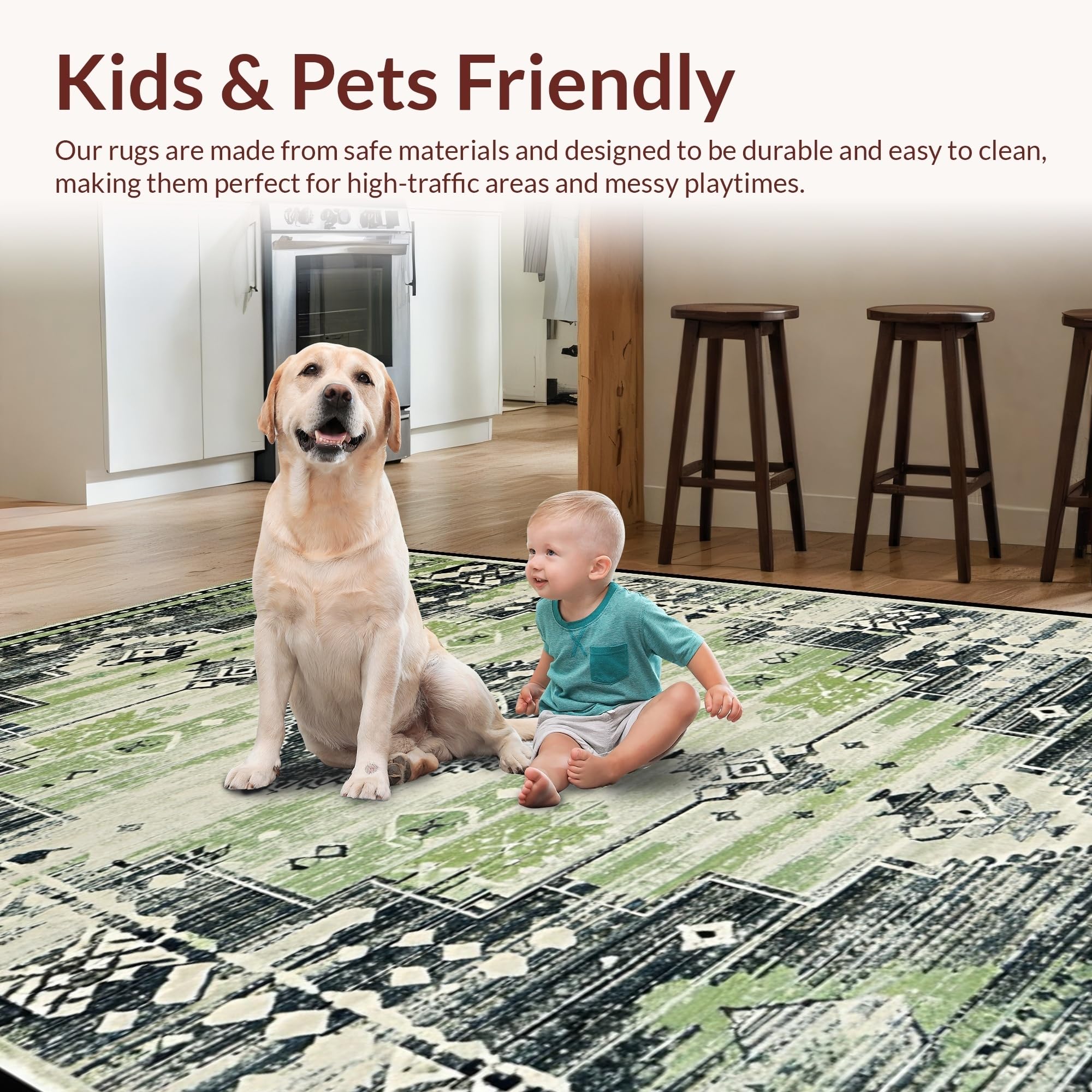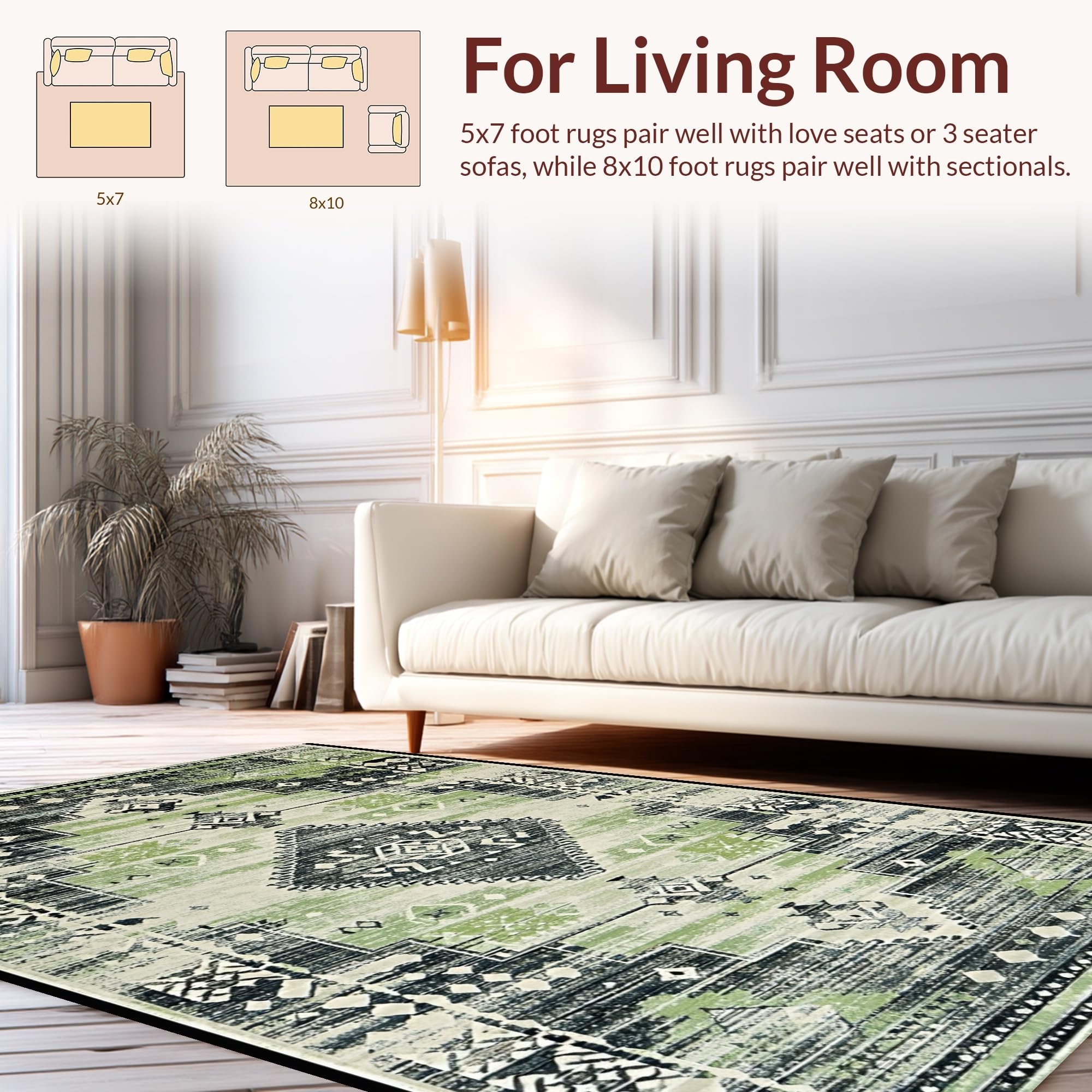 Ultra Soft Area Rug, Non Slip, Stain Resistant, Washable Area Rugs for Living Room, Bedroom, Contemporary Soft Ogee Motif(Green) Overview: