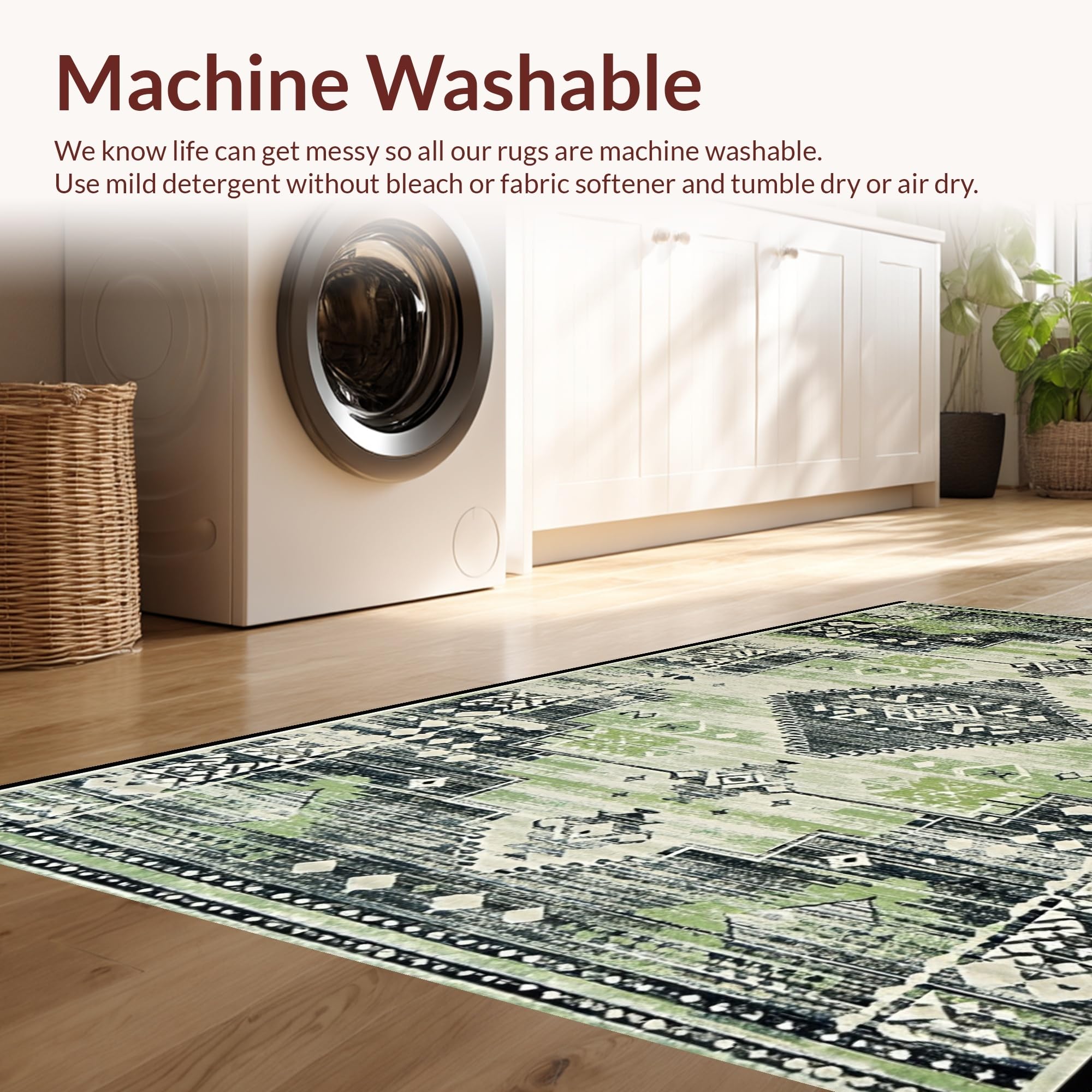 - Machine Washable: Our rugs can be easily thrown in the wash machine.