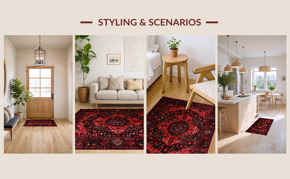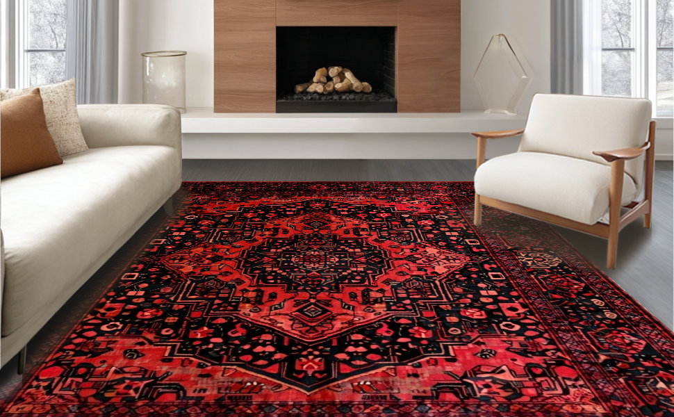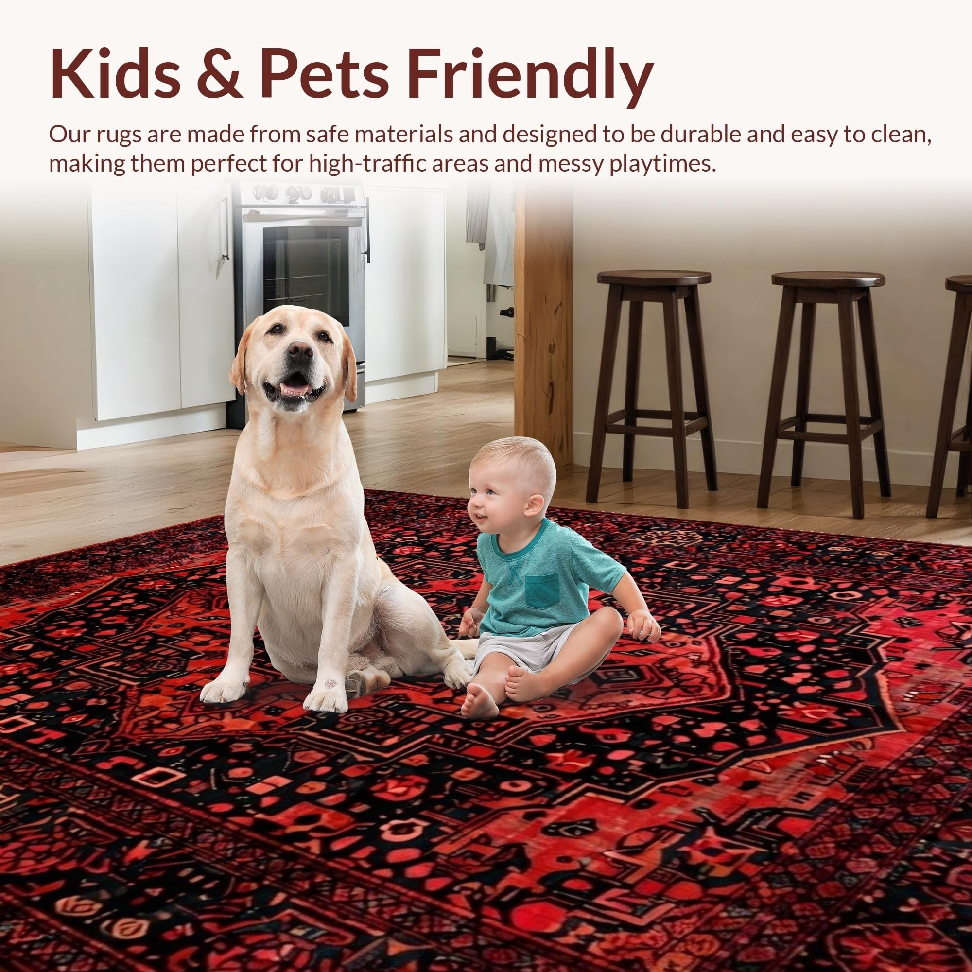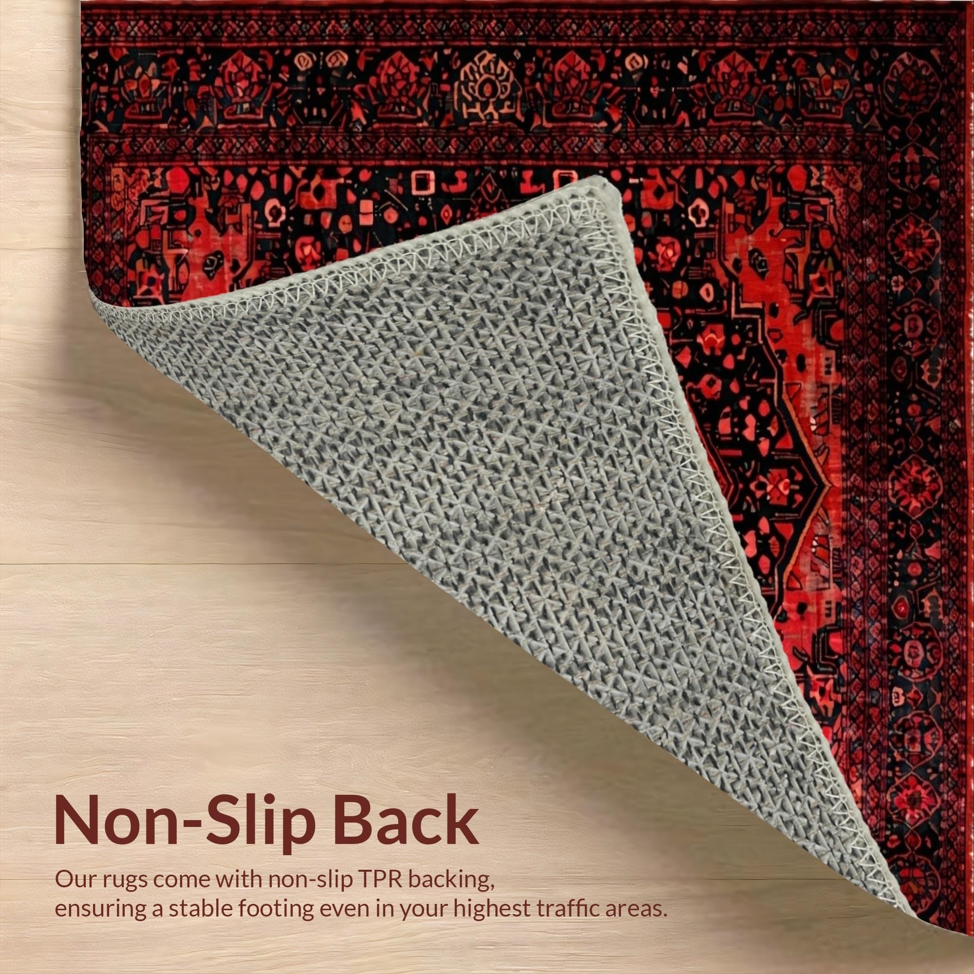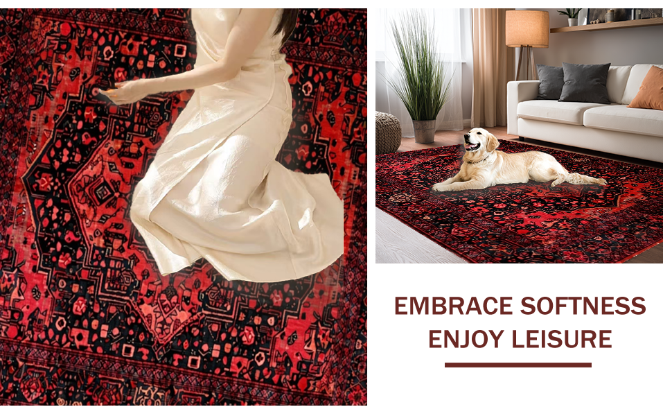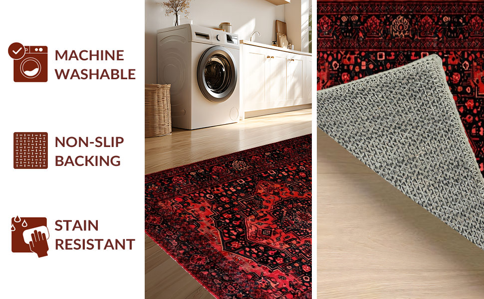 Ultra Soft Area Rug, Non Slip, Stain Resistant, Washable Area Rugs for Living Room, Bedroom, Contemporary Soft Ogee Print(Red) Overview: