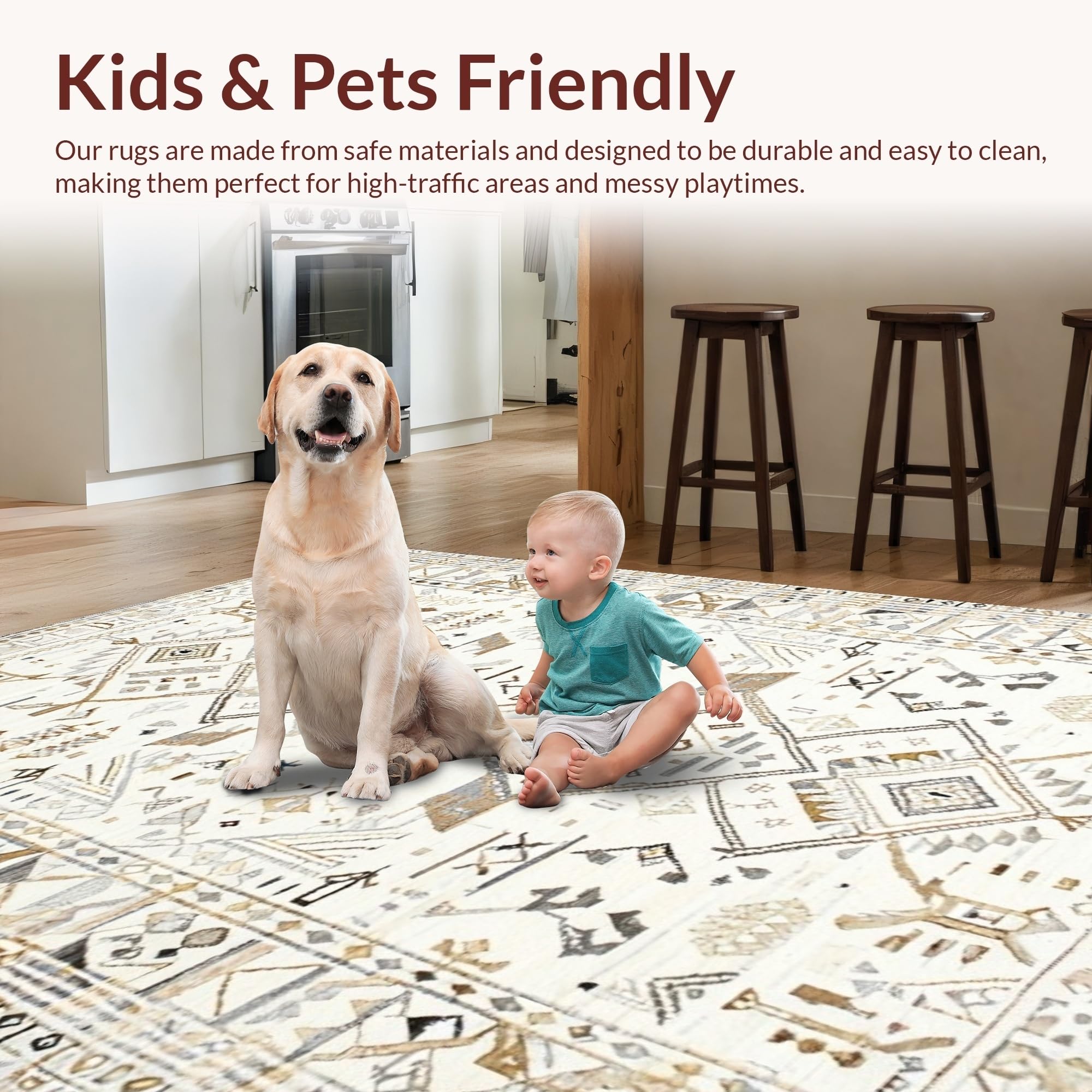 Ultra Soft Area Rug, Non Slip, Stain Resistant, Washable Area Rugs for Living Room, Bedroom, Contemporary Soft Pastel Patterns(Beige) Overview: