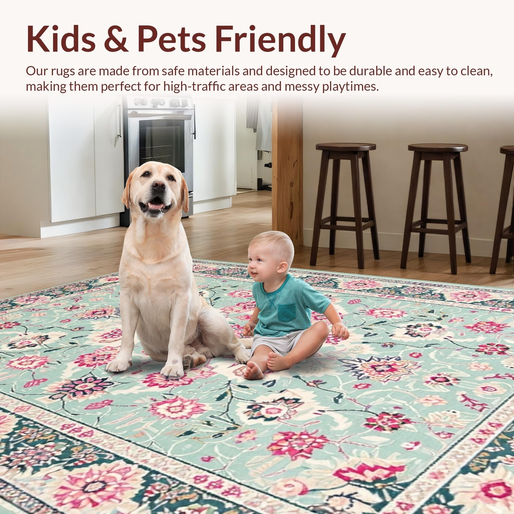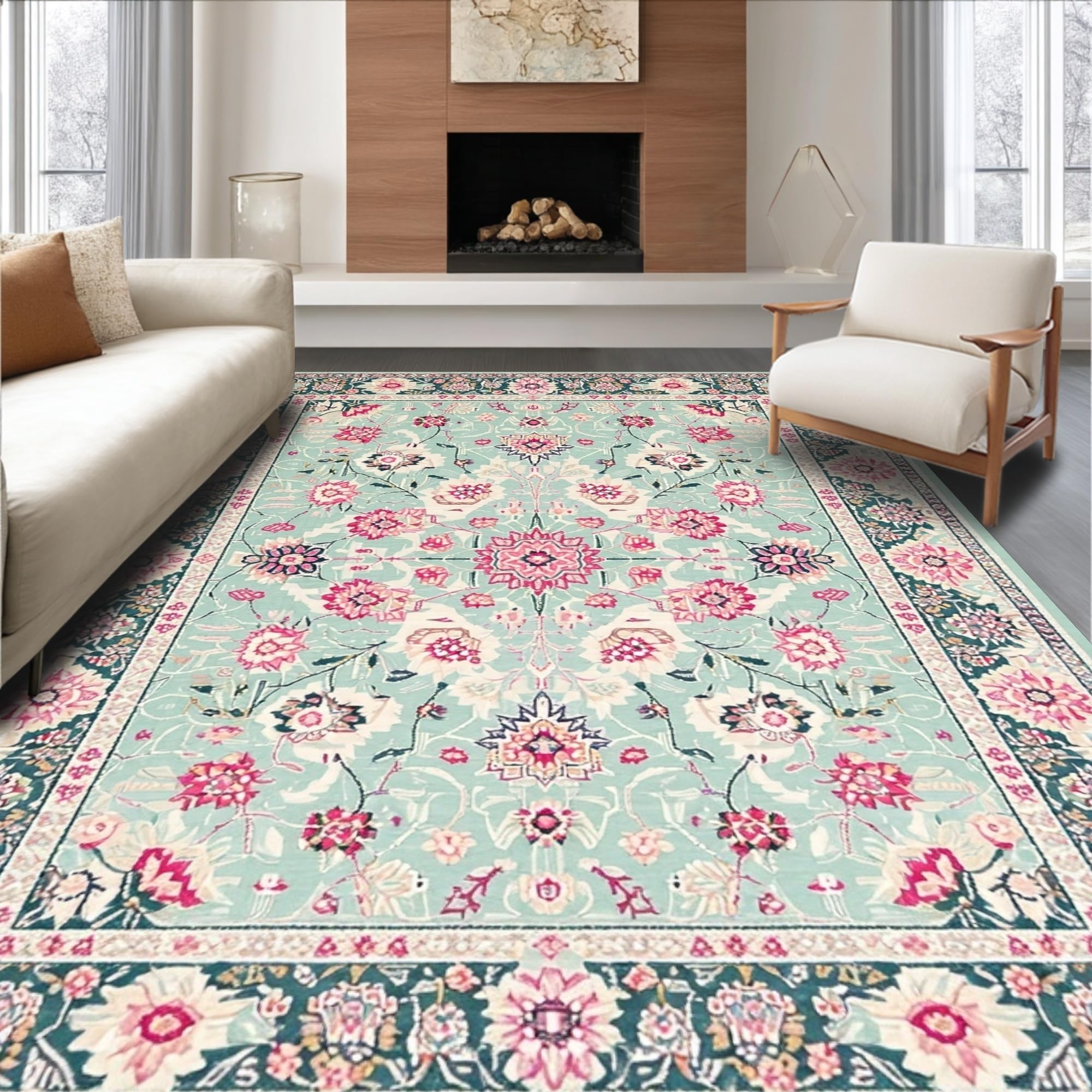 Ultra Soft Area Rug, Non Slip, Stain Resistant, Washable Area Rugs for Living Room, Bedroom, Contemporary Soft Pastel Trellis(Beige) Overview: