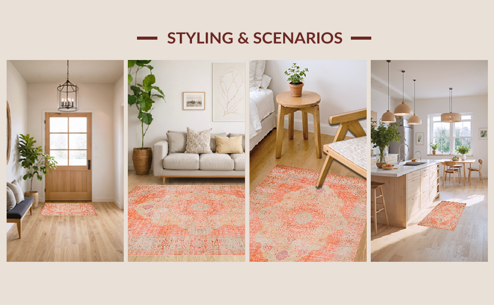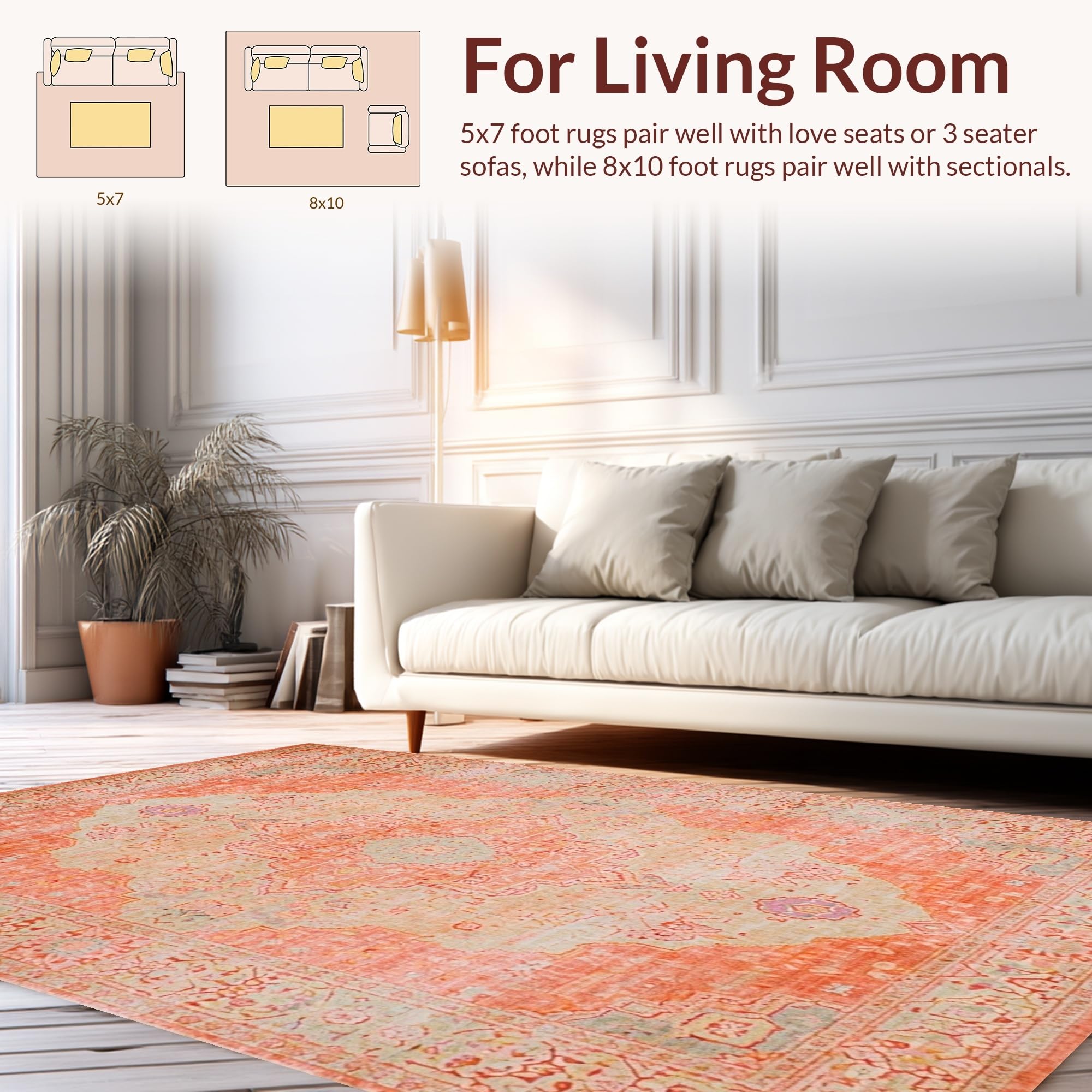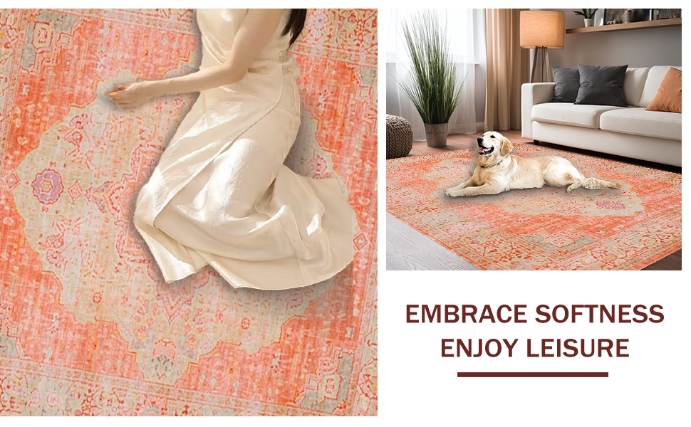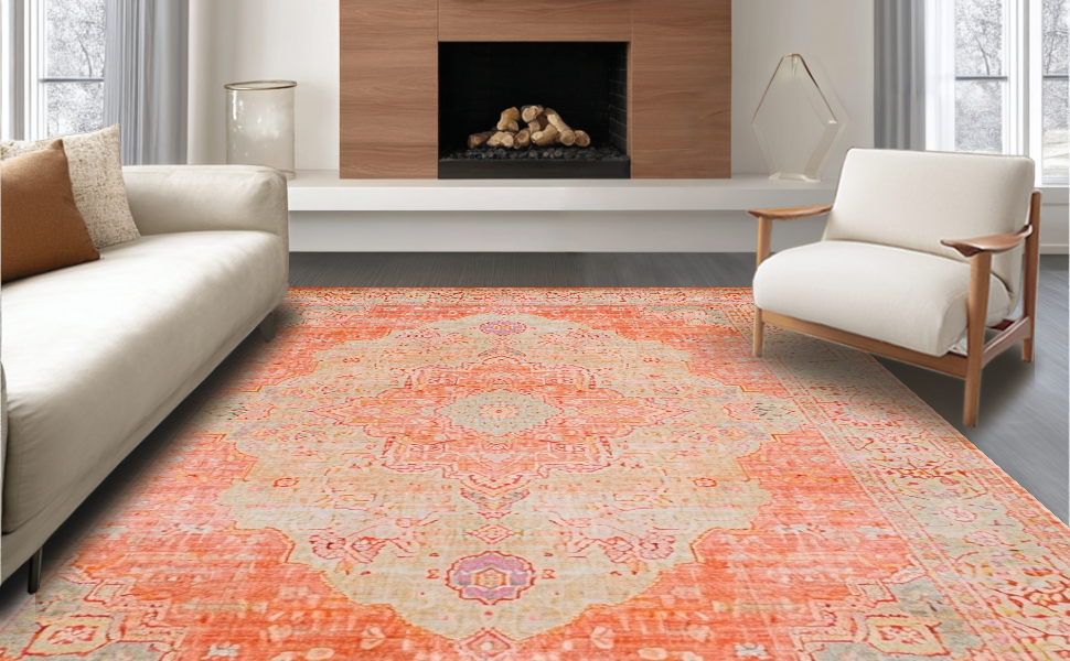 Ultra Soft Area Rug, Non Slip, Stain Resistant, Washable Area Rugs for Living Room, Bedroom, Contemporary Soft Peach Composition(Pink) Overview: