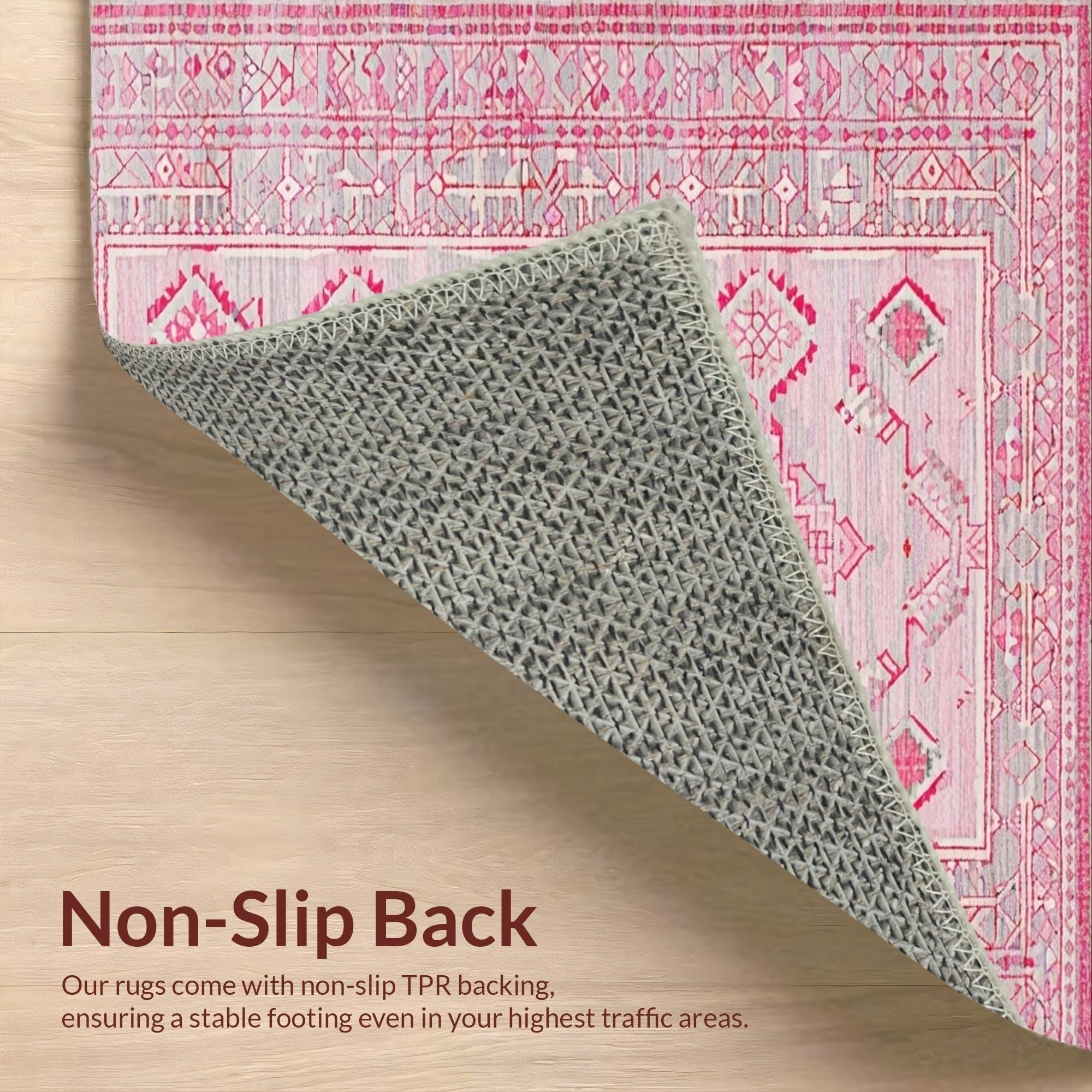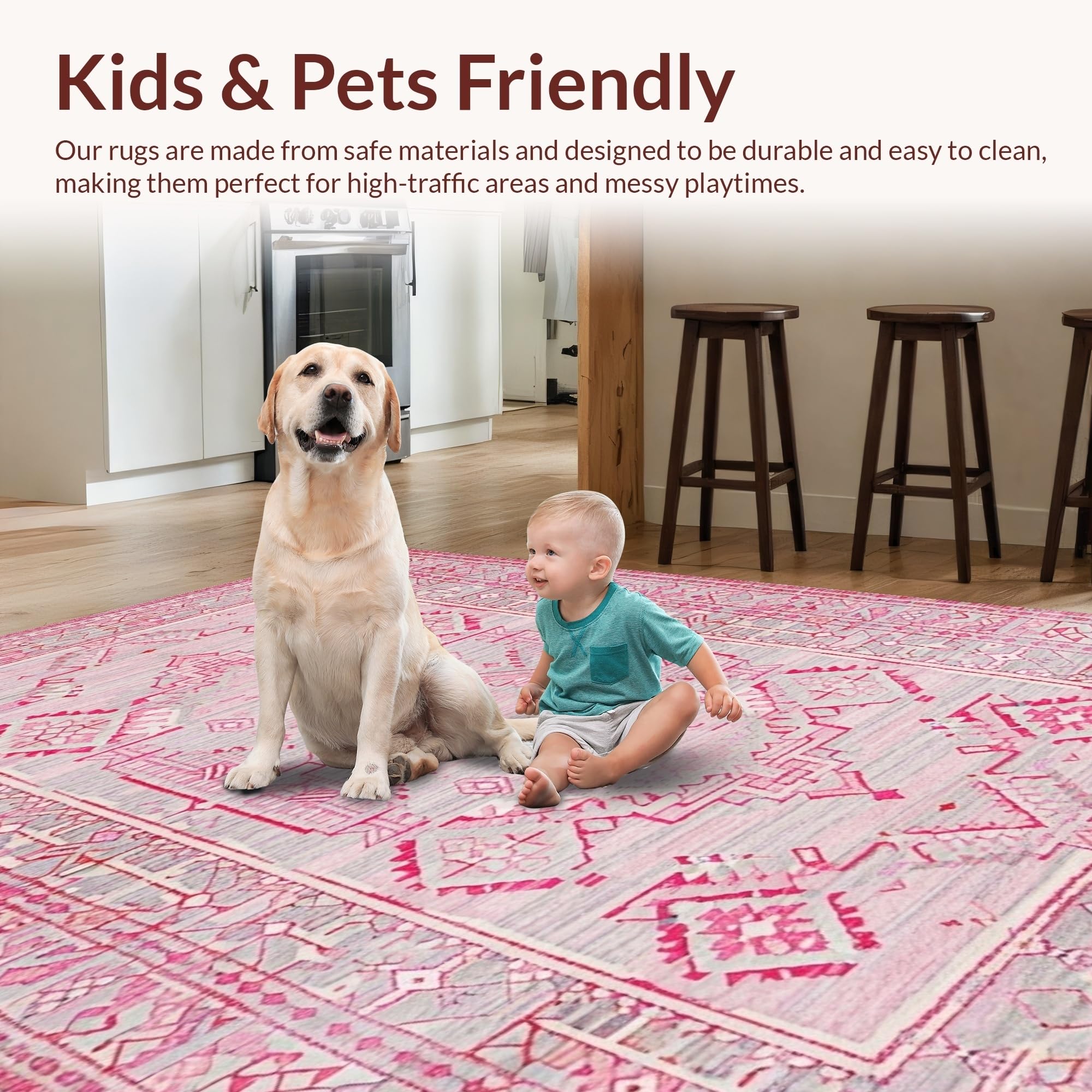 Ultra Soft Area Rug, Non Slip, Stain Resistant, Washable Area Rugs for Living Room, Bedroom, Contemporary Soft Shaggy Motif(Pink) Overview: