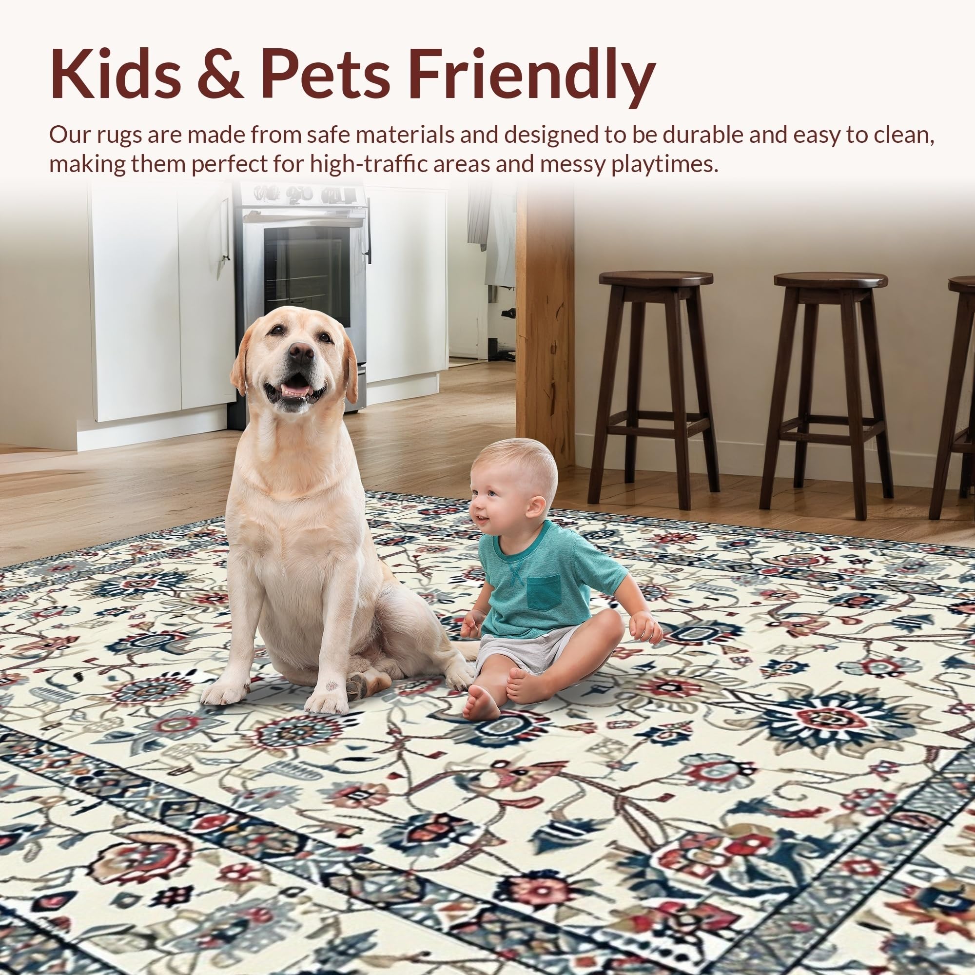 Ultra Soft Area Rug, Non Slip, Stain Resistant, Washable Area Rugs for Living Room, Bedroom, Contemporary Soft Textured Look(Beige) Overview: