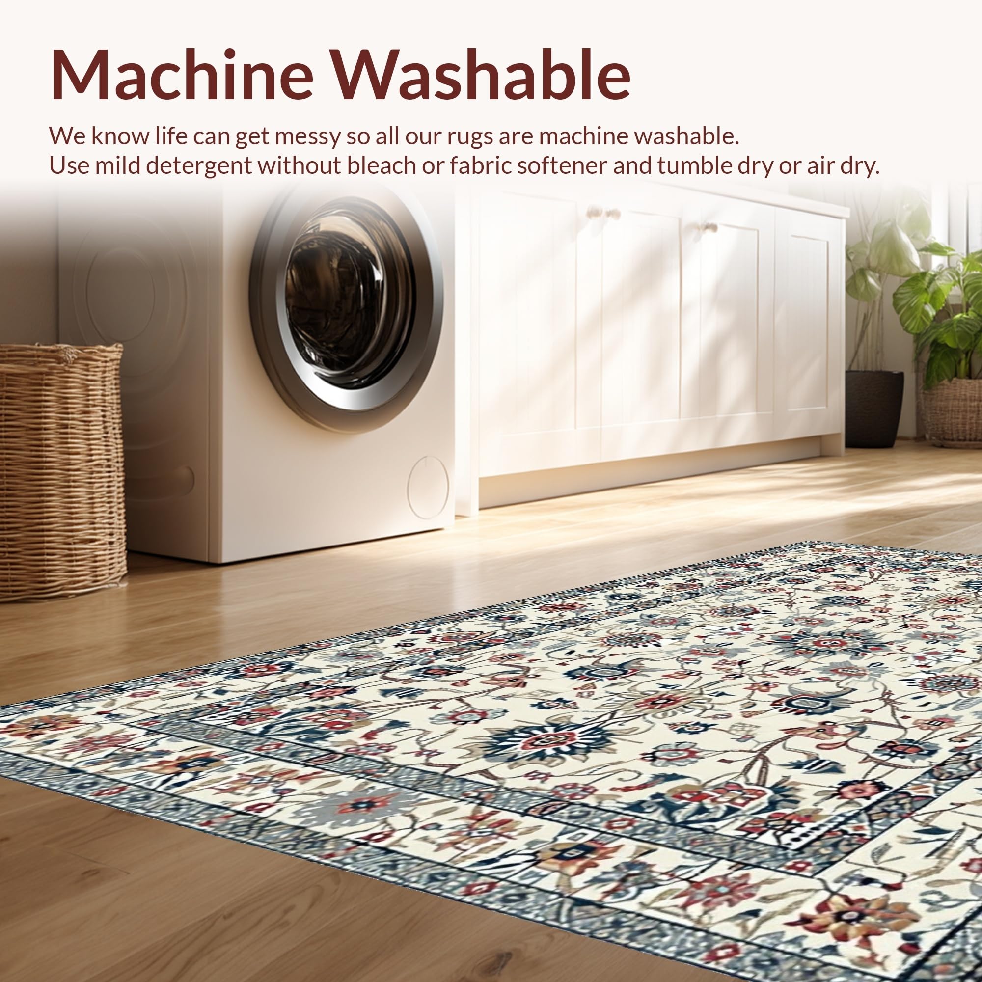 - Machine Washable: Our rugs can be easily thrown in the wash machine.