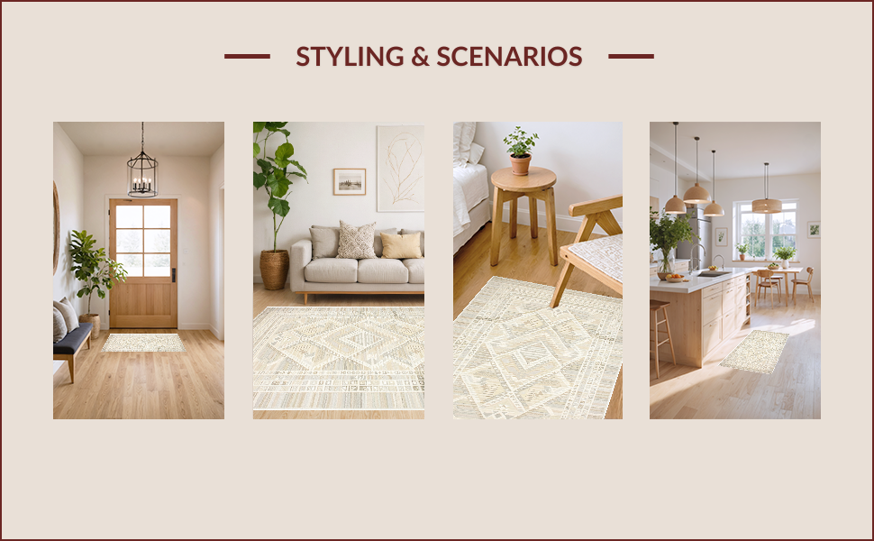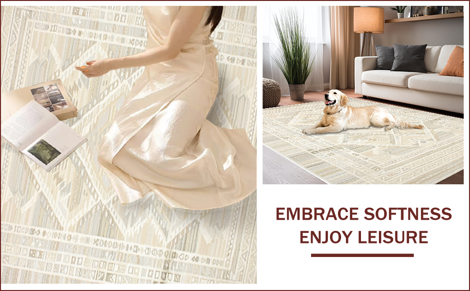 Ultra Soft Area Rug, Non Slip, Stain Resistant, Washable Area Rugs for Living Room, Bedroom, Contemporary Soft Textured Pattern(Beige) Overview: