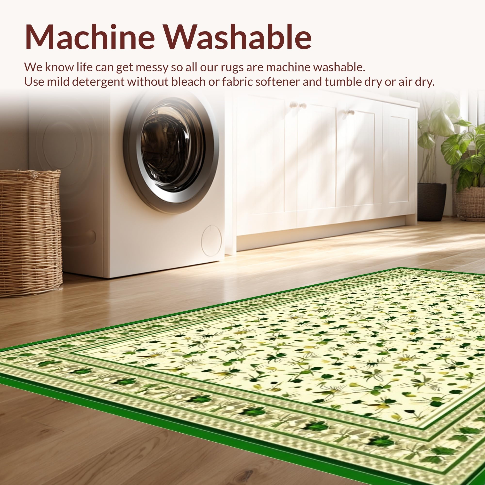 - Machine Washable: Our rugs can be easily thrown in the wash machine.