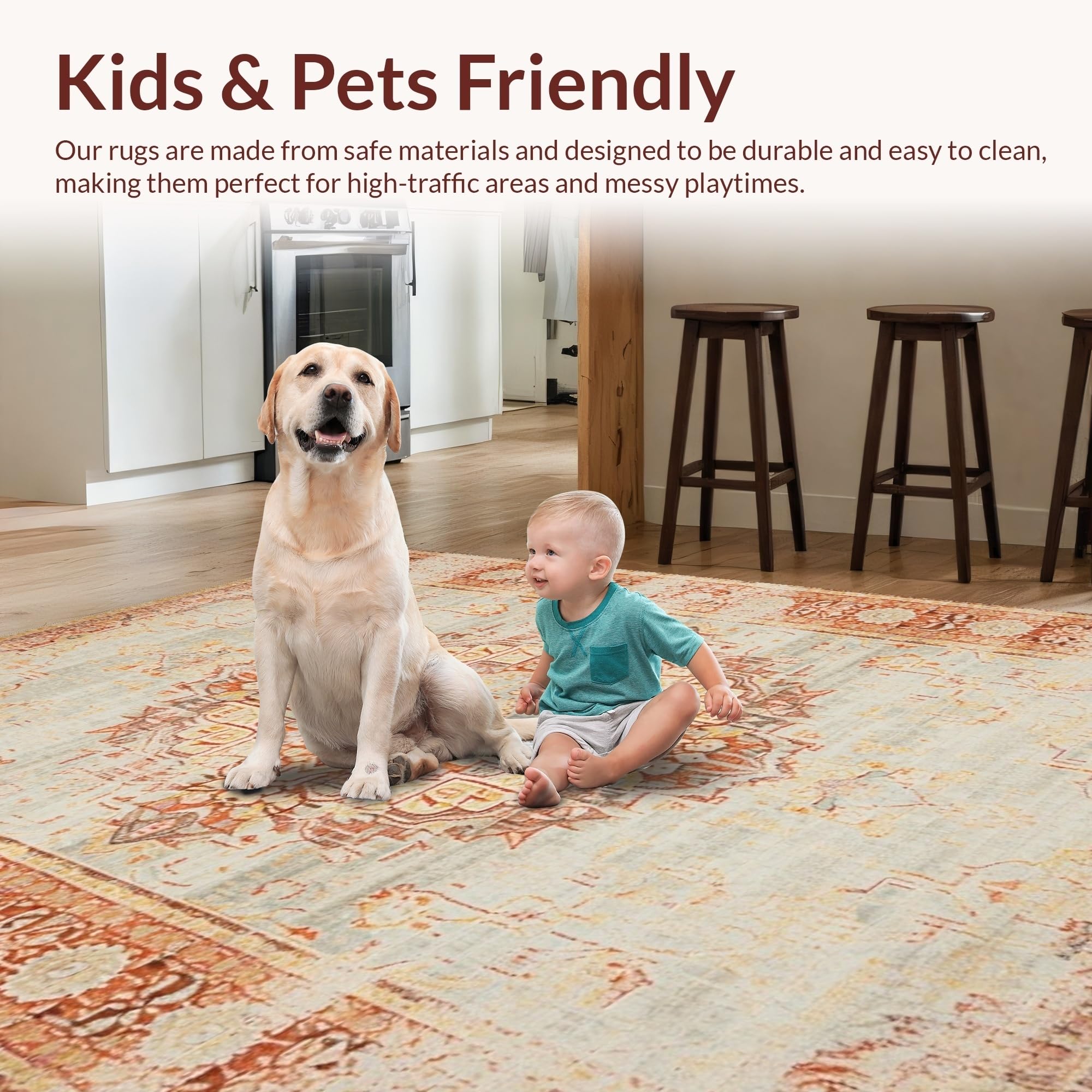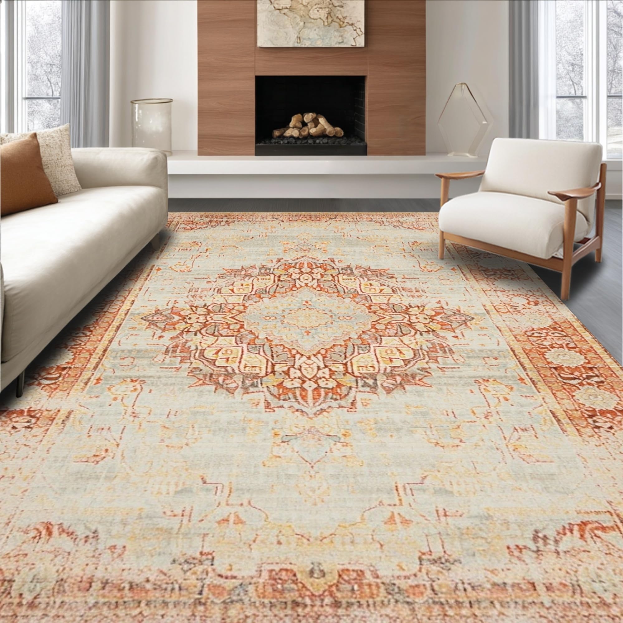 Ultra Soft Area Rug, Non Slip, Stain Resistant, Washable Area Rugs for Living Room, Bedroom, Contemporary Soft-Toned Trellis Visual(Beige) Overview: