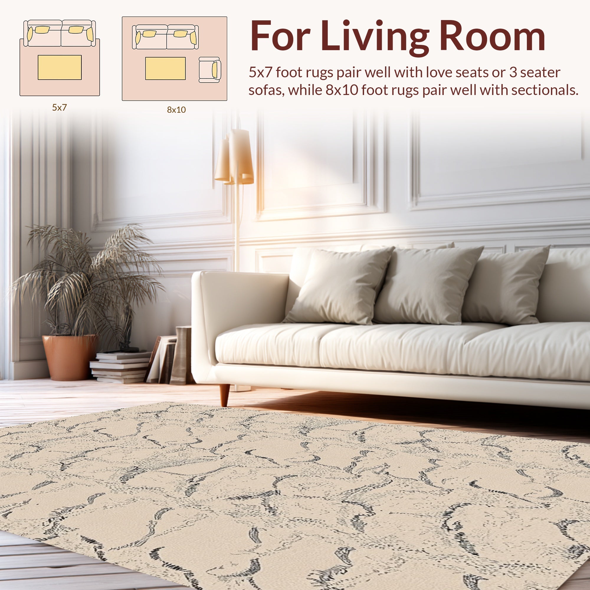 Ultra Soft Area Rug, Non Slip, Stain Resistant, Washable Area Rugs for Living Room, Bedroom, Contemporary Spotted Stylish Cowhide Inspired(Beige) Overview: