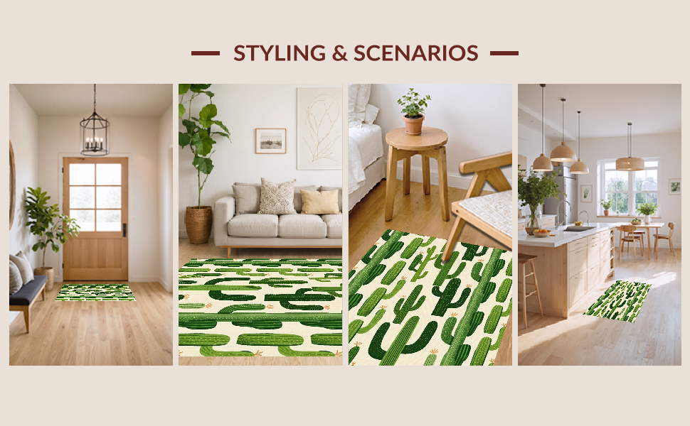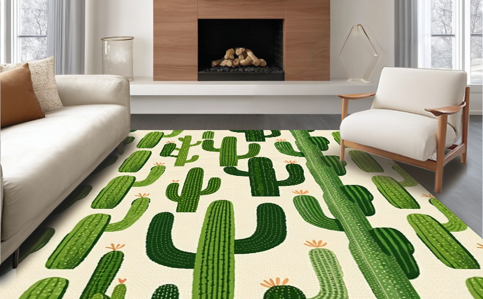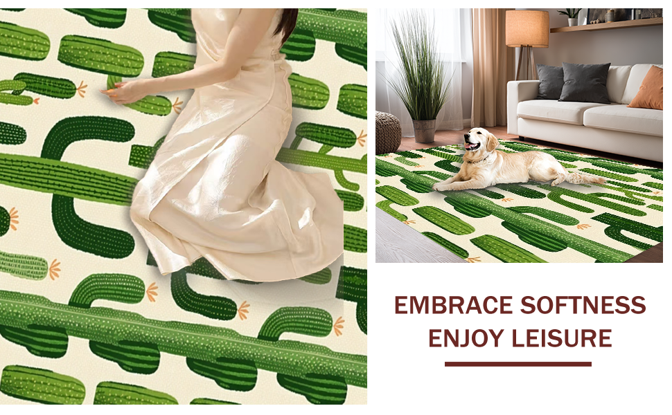 Ultra Soft Area Rug, Non Slip, Stain Resistant, Washable Area Rugs for Living Room, Bedroom, Contemporary Square Plant Aesthetic(Green) Overview: