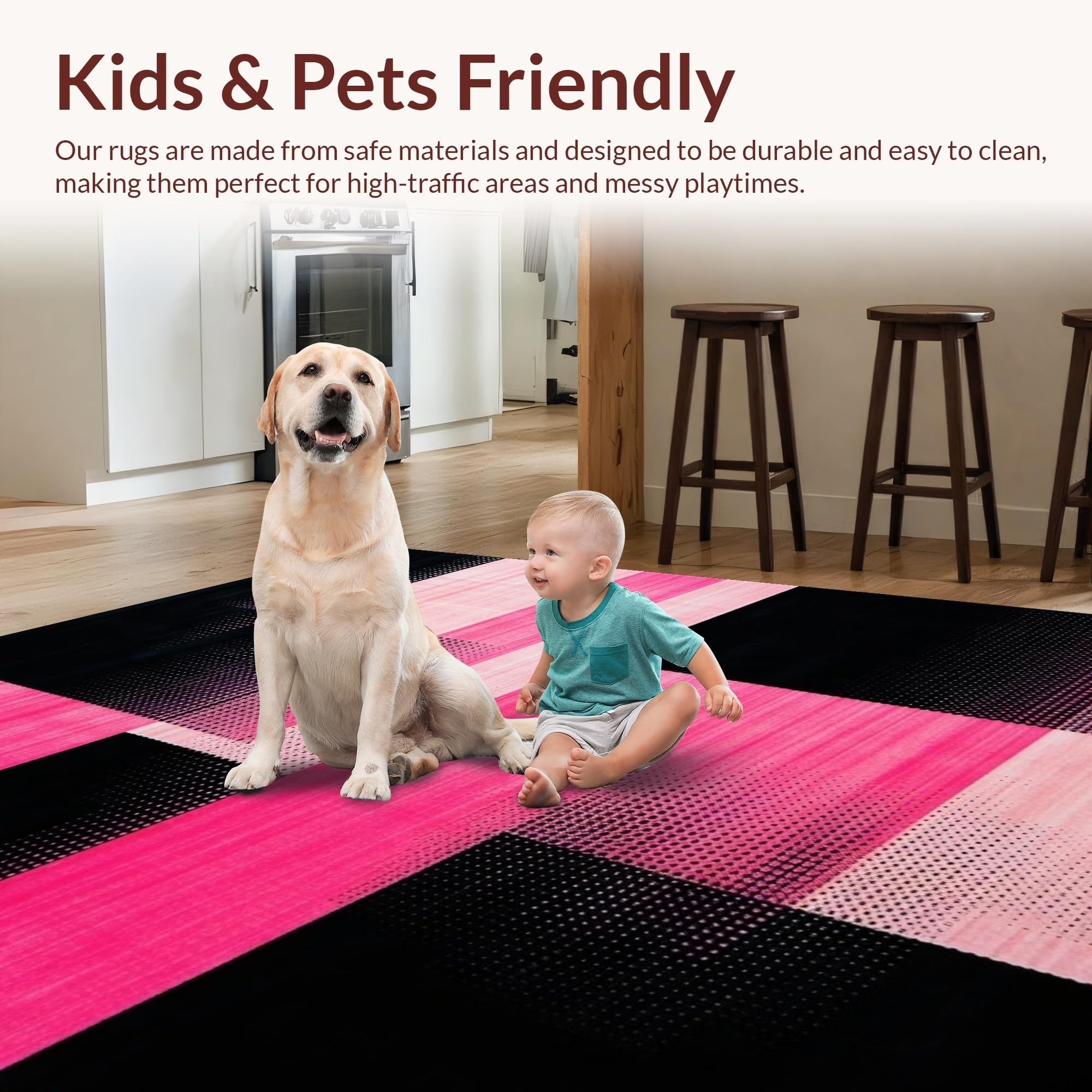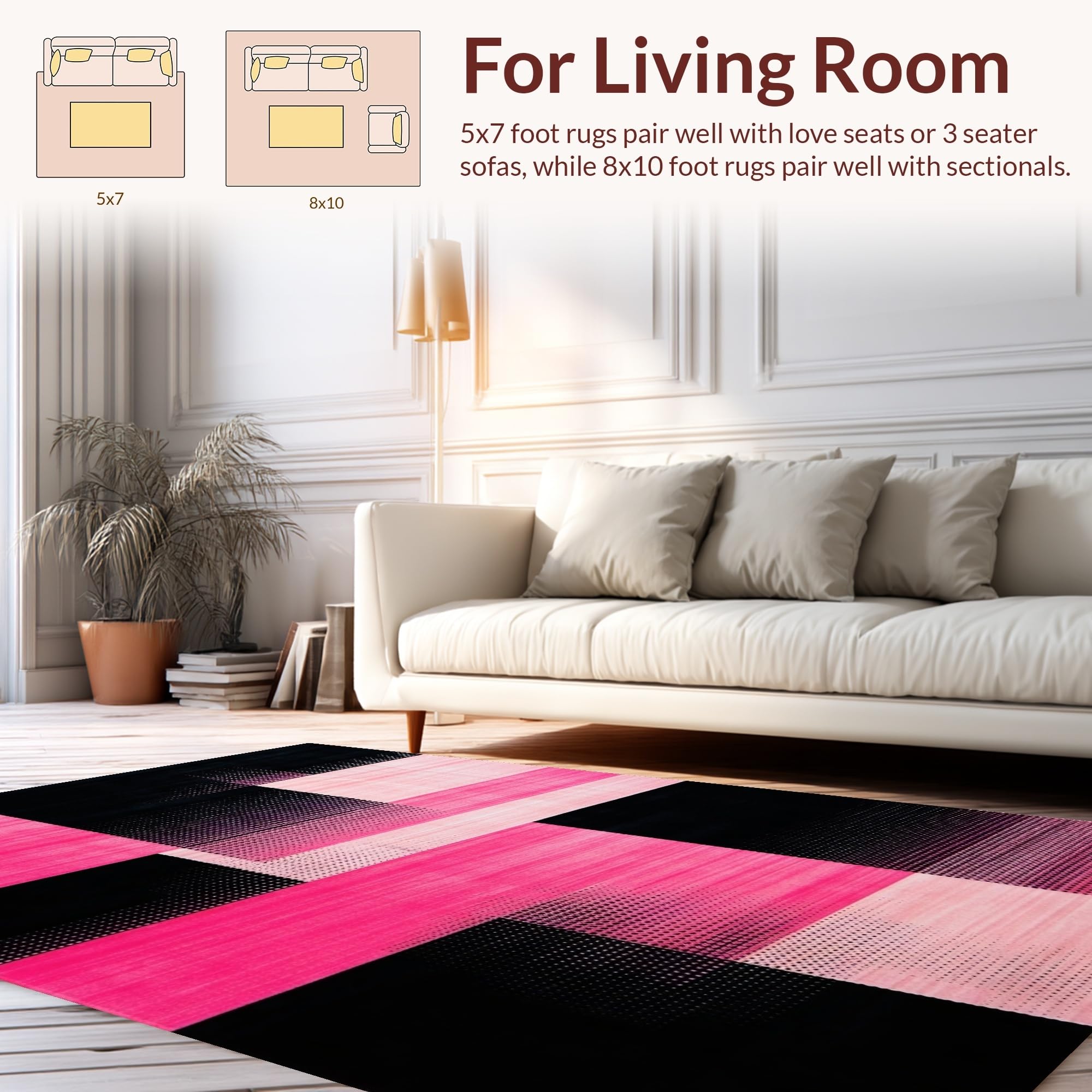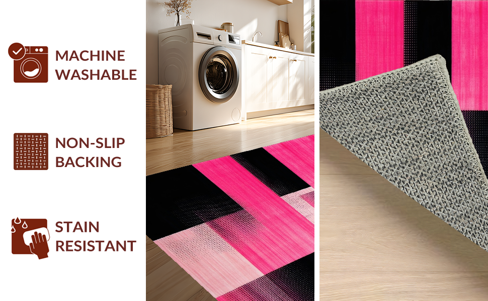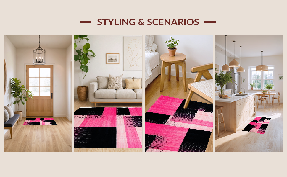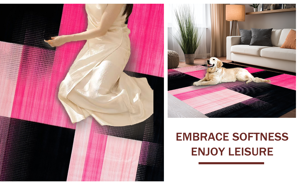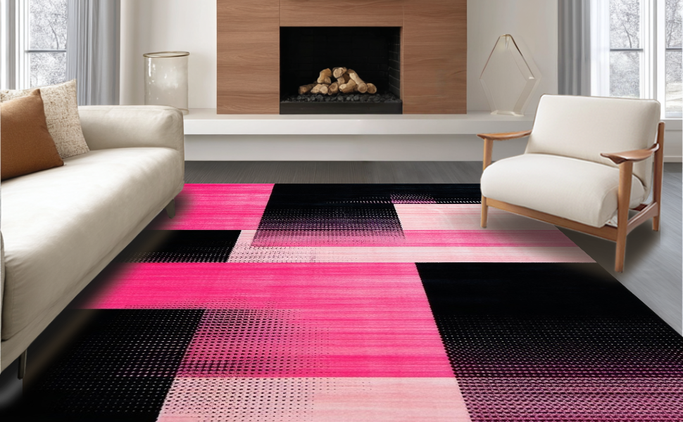Ultra Soft Area Rug, Non Slip, Stain Resistant, Washable Area Rugs for Living Room, Bedroom, Contemporary Square Transition(Pink) Overview: