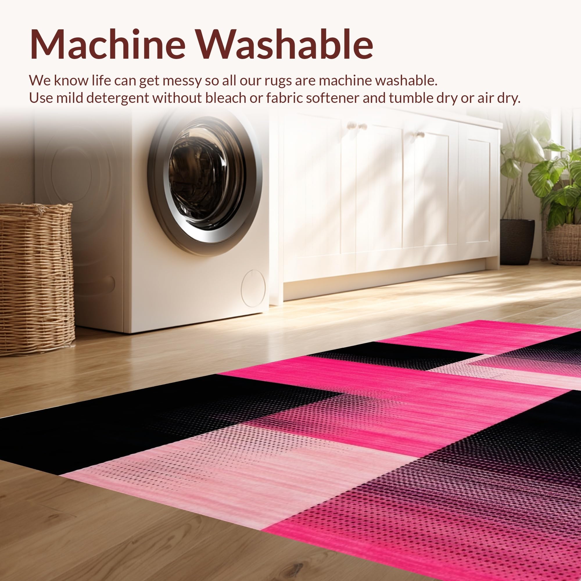 - Machine Washable: Our rugs can be easily thrown in the wash machine.
