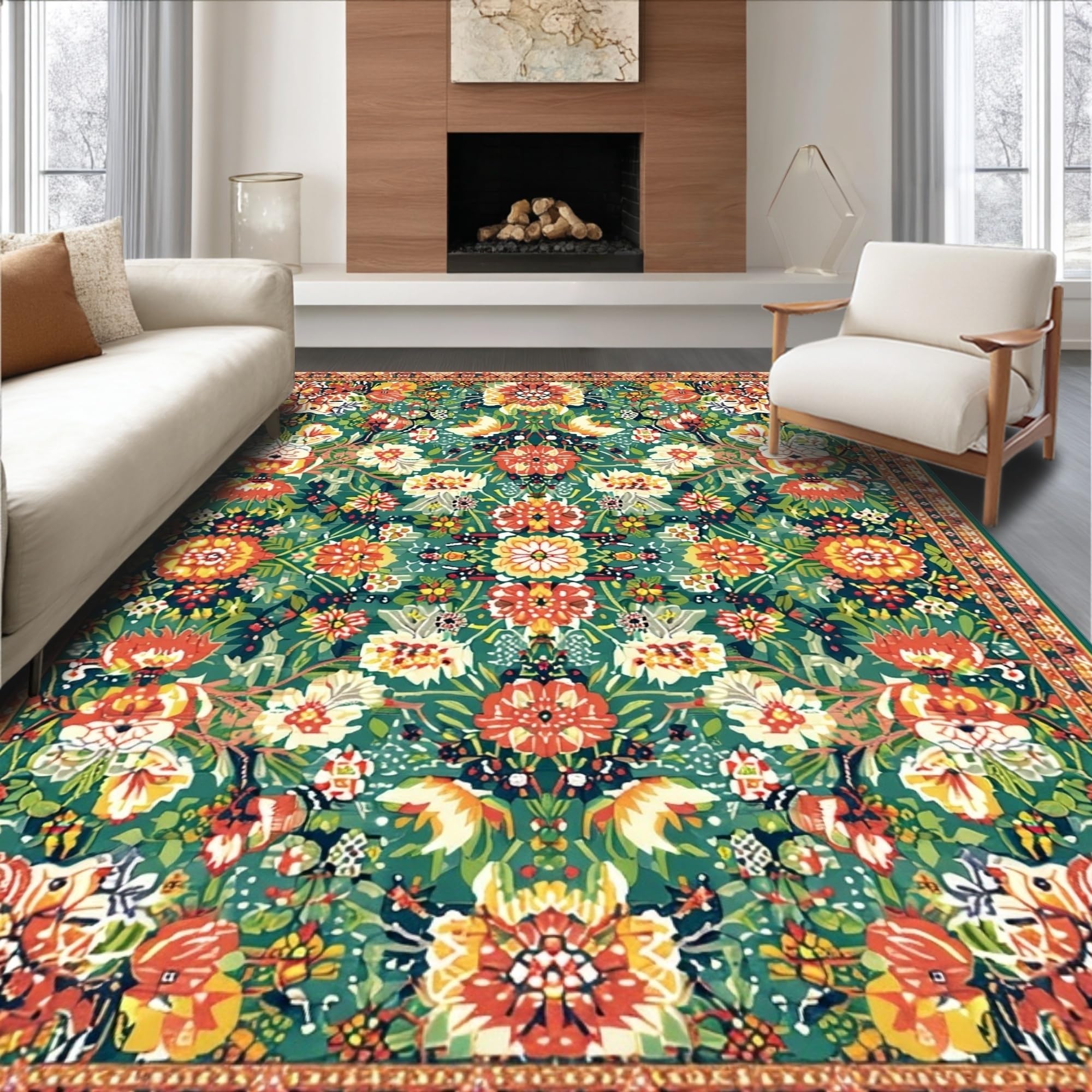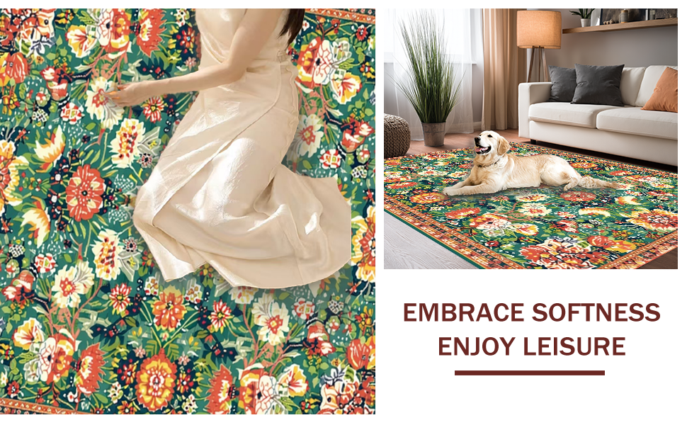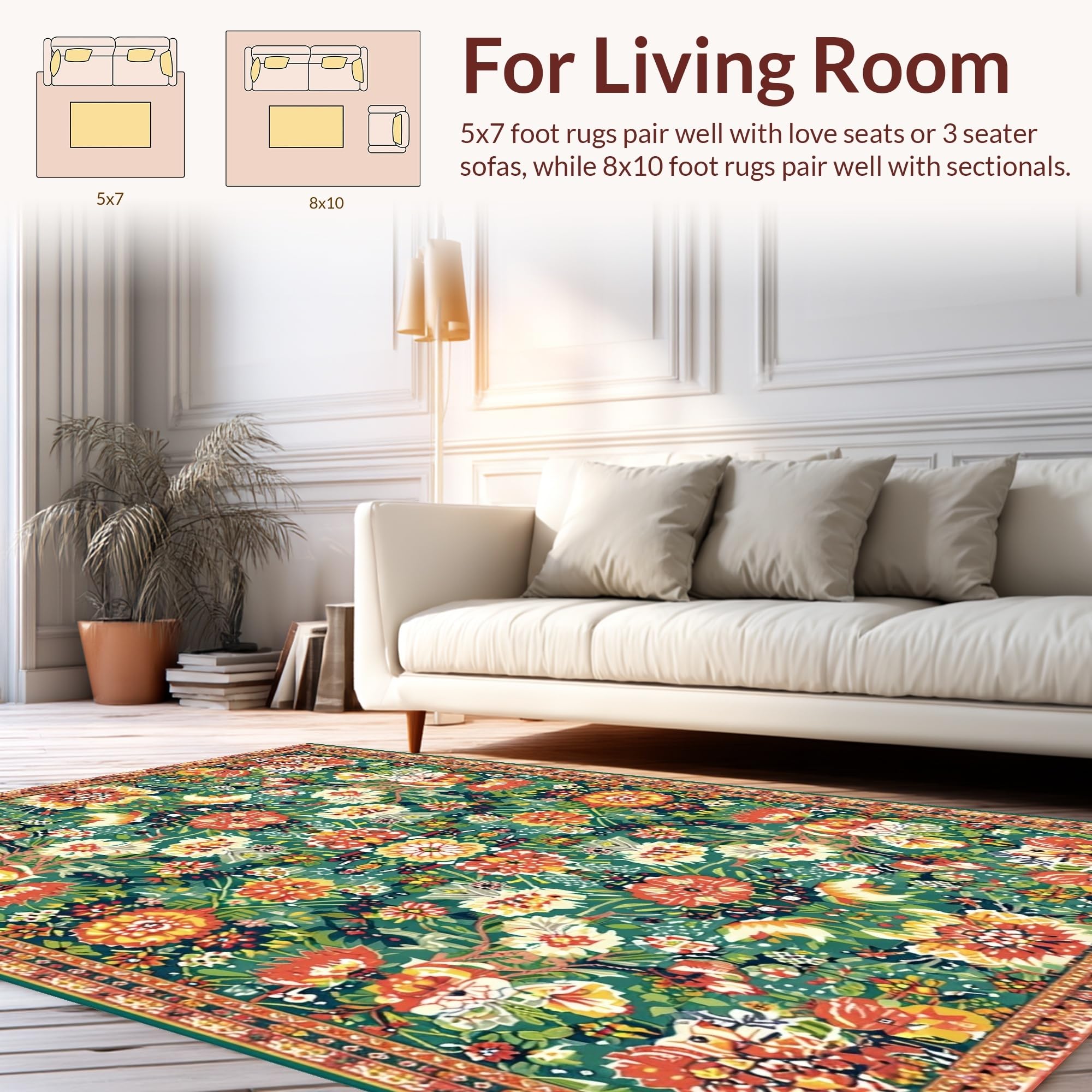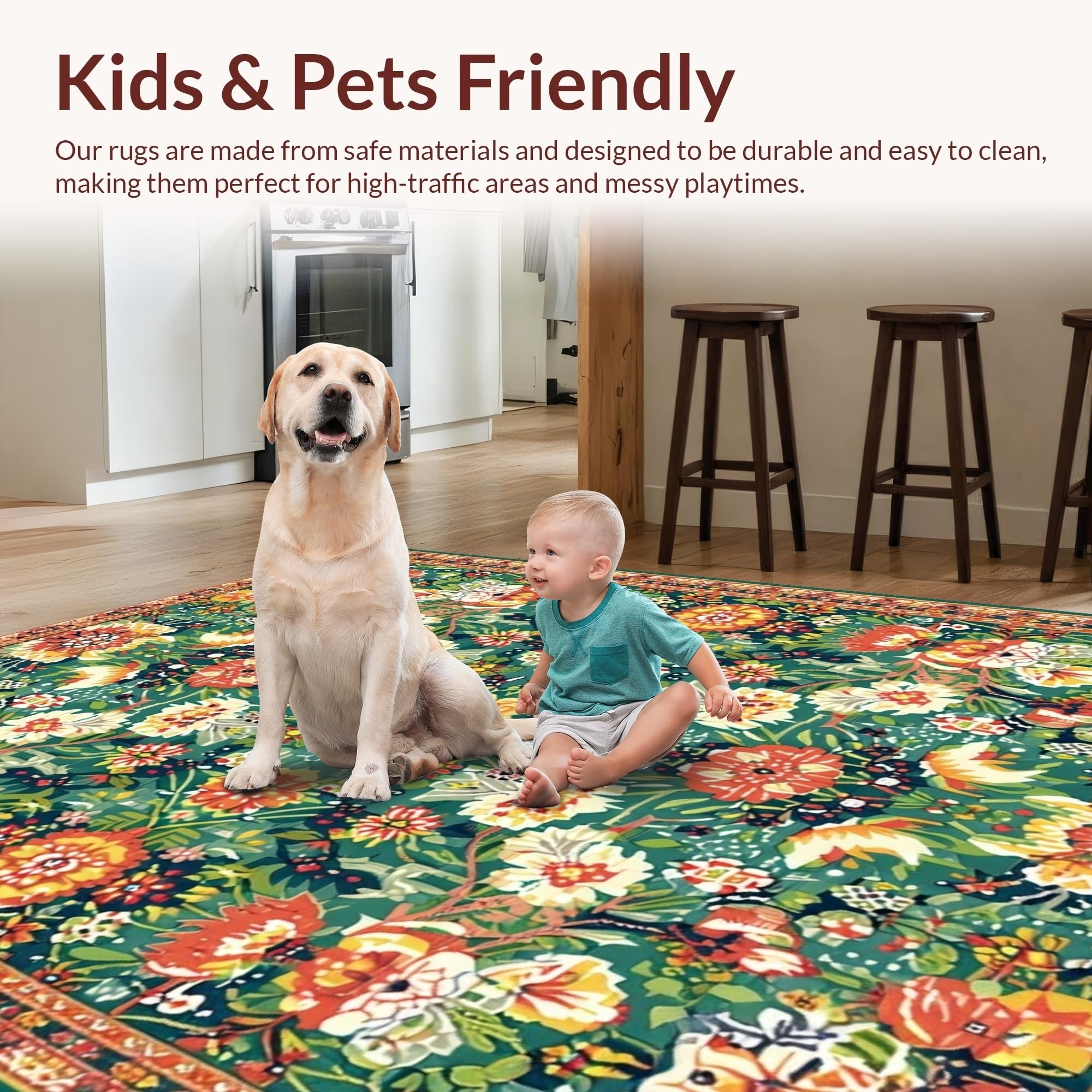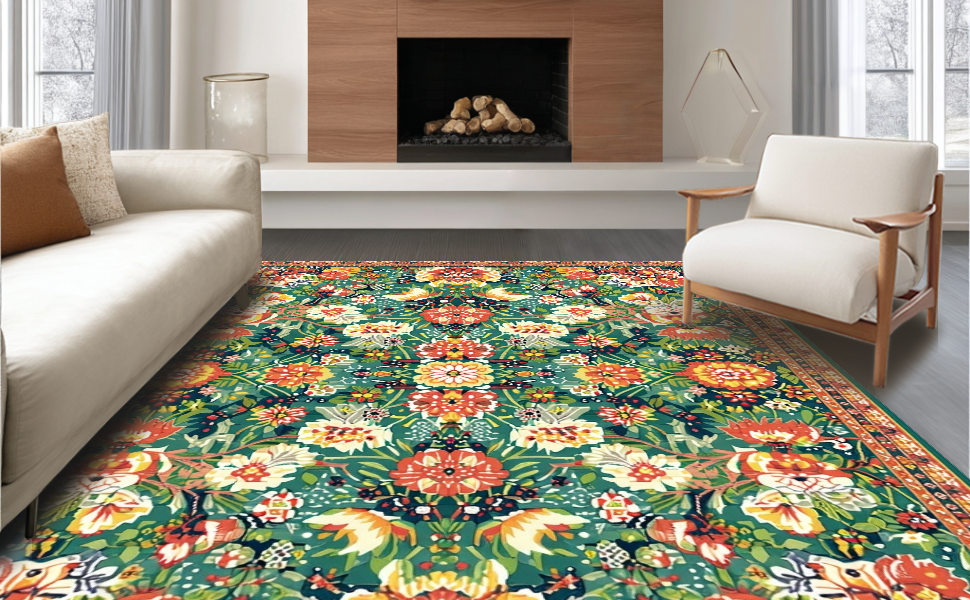 Ultra Soft Area Rug, Non Slip, Stain Resistant, Washable Area Rugs for Living Room, Bedroom, Contemporary Striking Geometric Elements(Green) Overview: