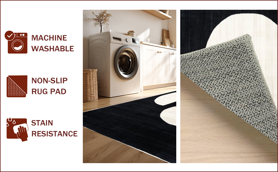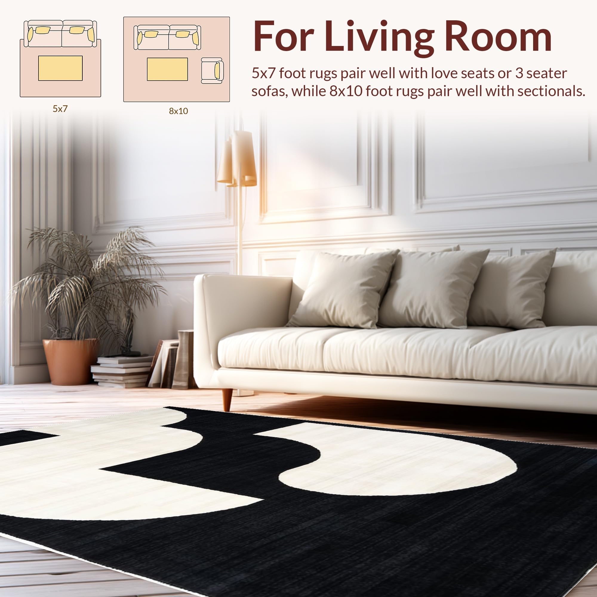 Ultra Soft Area Rug, Non Slip, Stain Resistant, Washable Area Rugs for Living Room, Bedroom, Contemporary Striking Linear Patterns(Black) Overview: